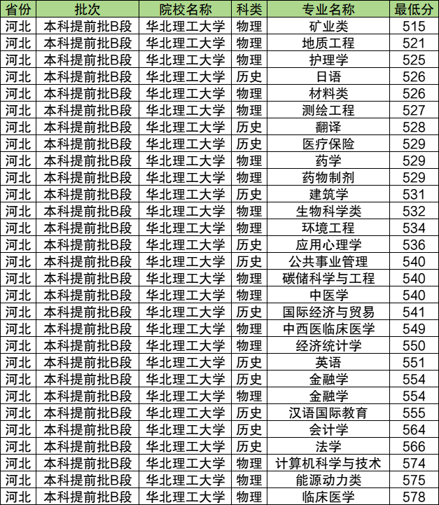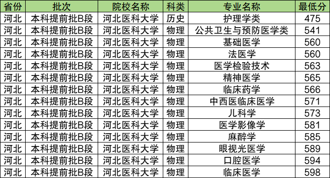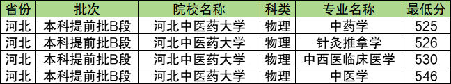 10、河北中医药大学:物理类最低525分