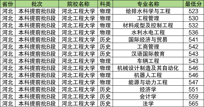 8、河北工程大学:历史类最低541分;物理类最低523分