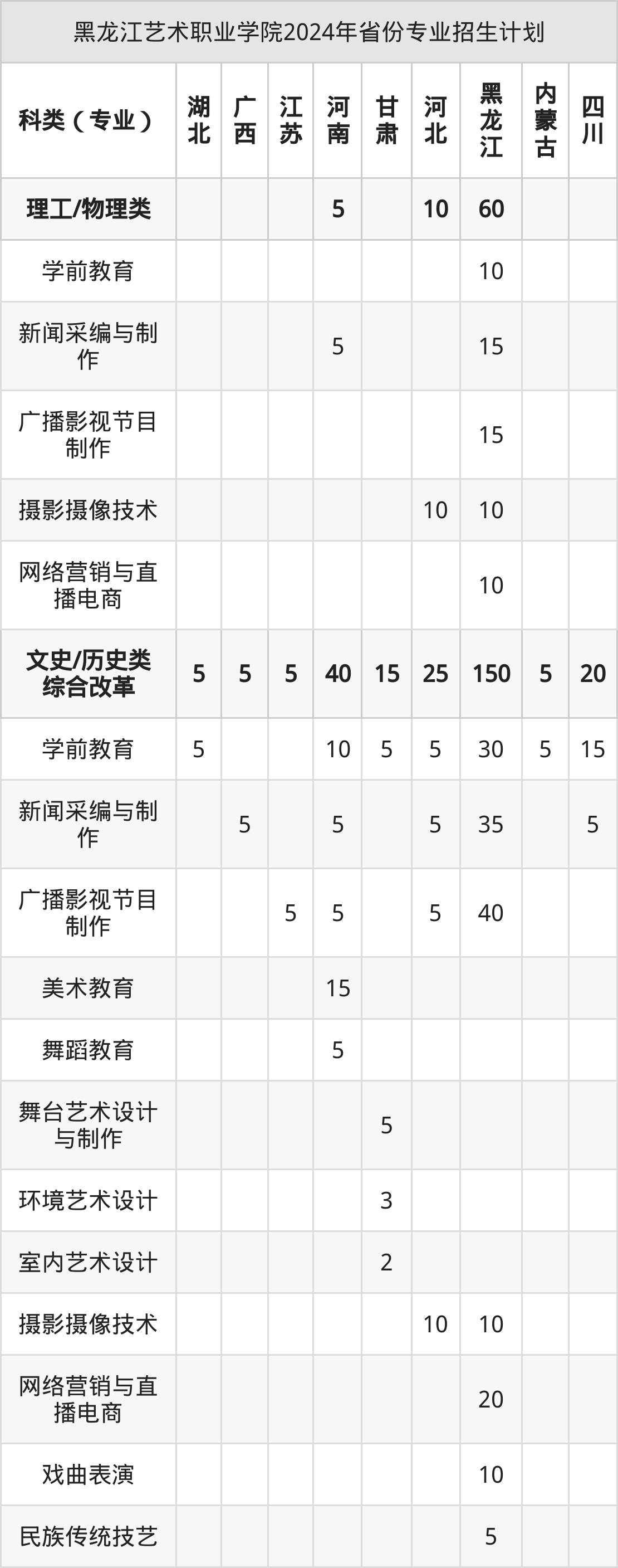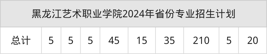 2025年黑龙江艺术职业学院专科招生计划待公布,下面附上2024年数据,暂供参考: