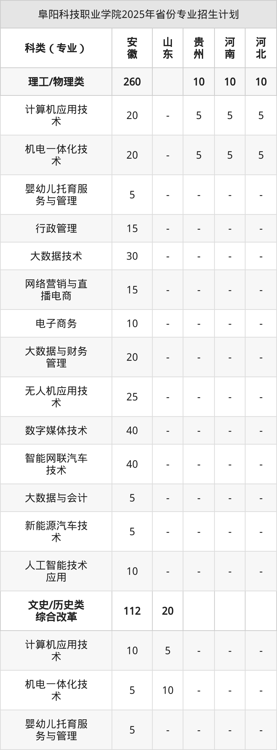 2026年阜阳科技职业学院专科招生计划待公布,下面附上2025年数据,暂供参考: