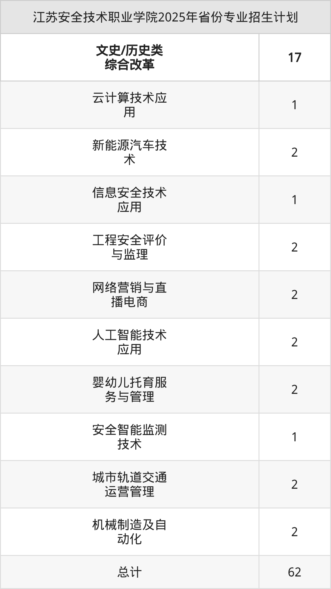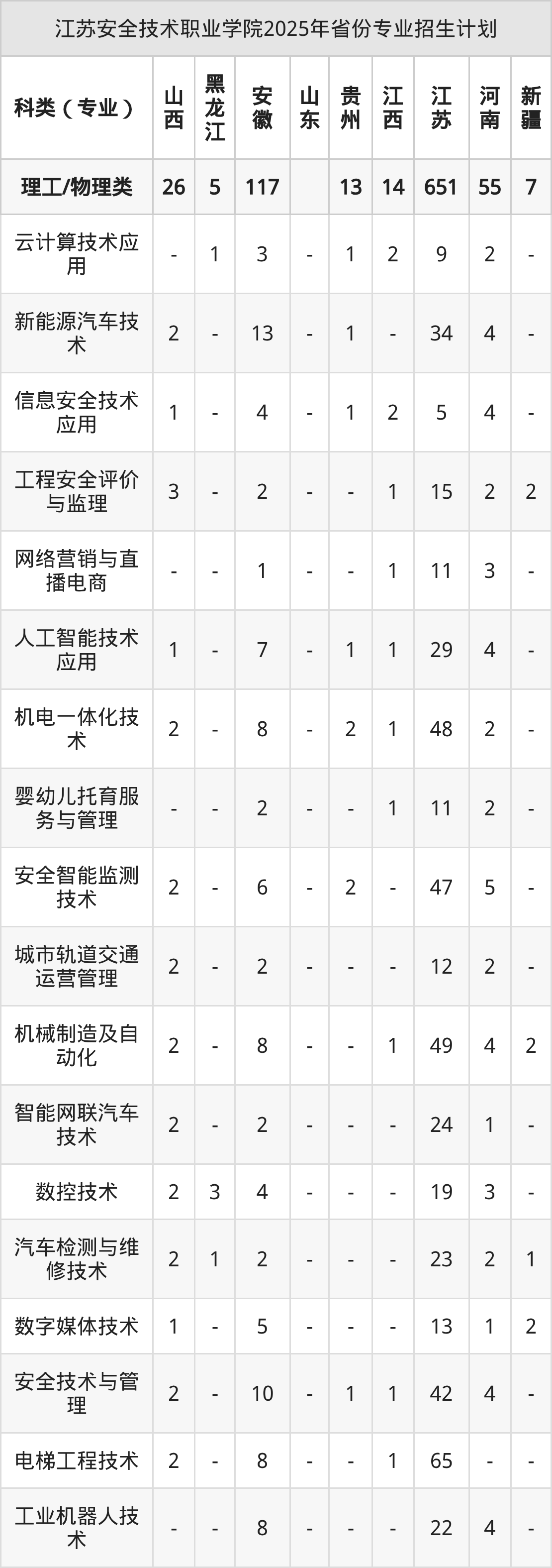 2026年江苏安全技术职业学院专科招生计划待公布,下面附上2025年数据,暂供参考: