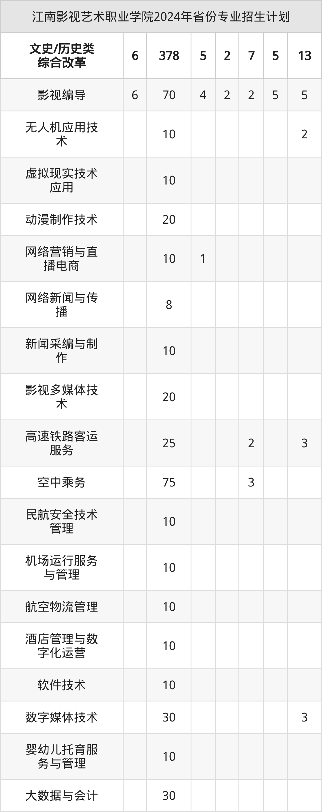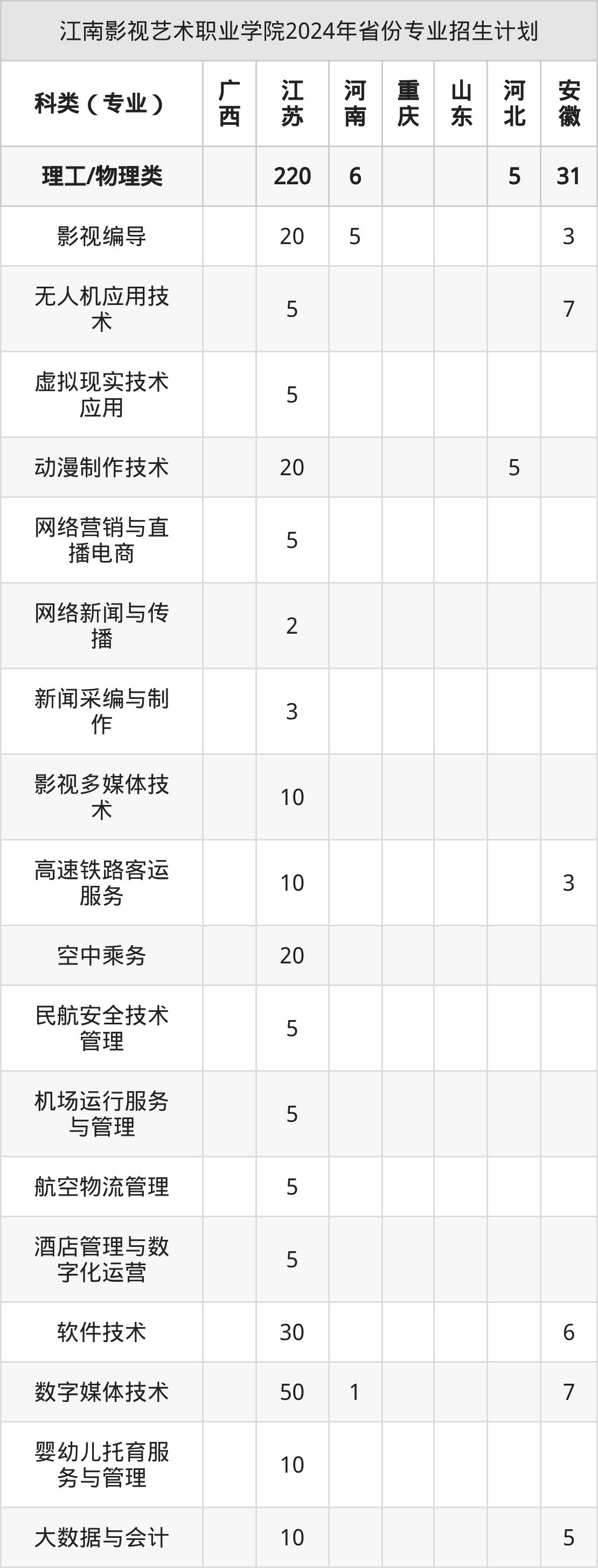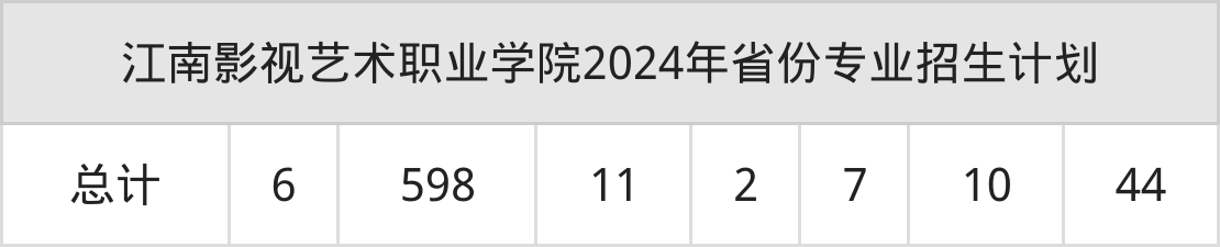 2025年江南影视艺术职业学院专科招生计划待公布,下面附上2024年数据,暂供参考: