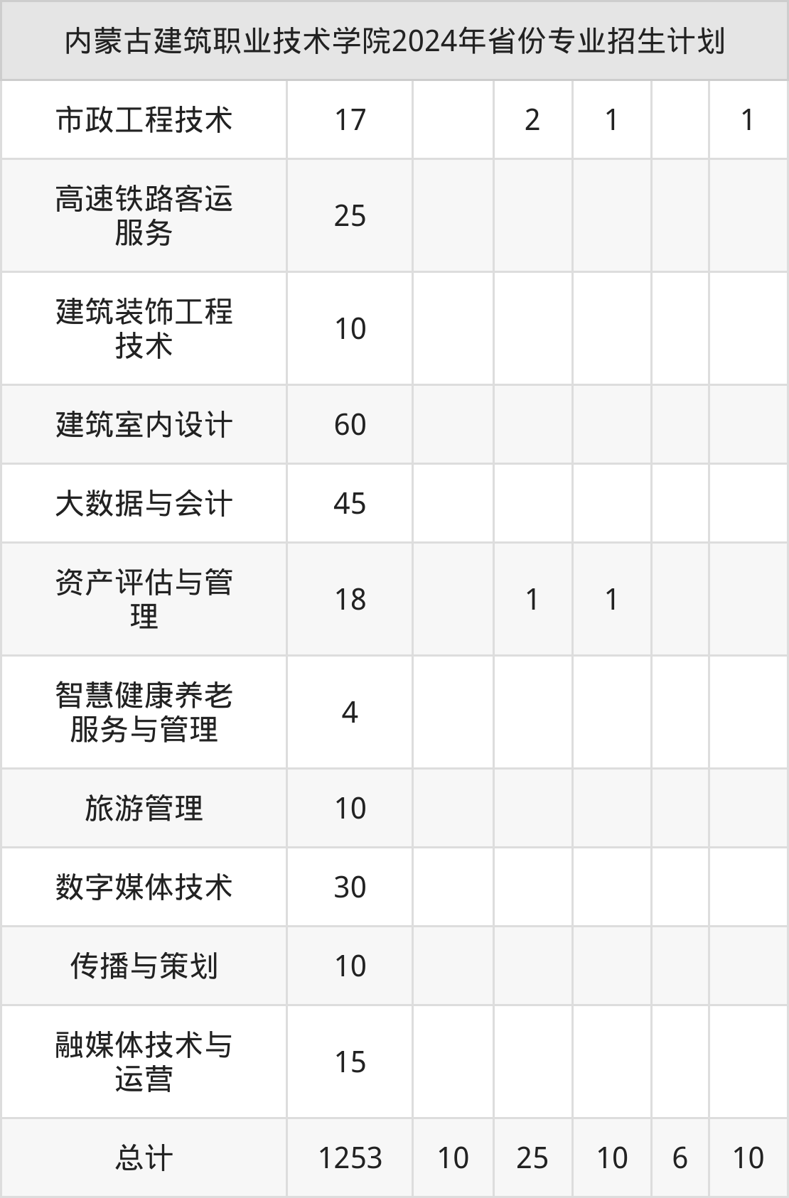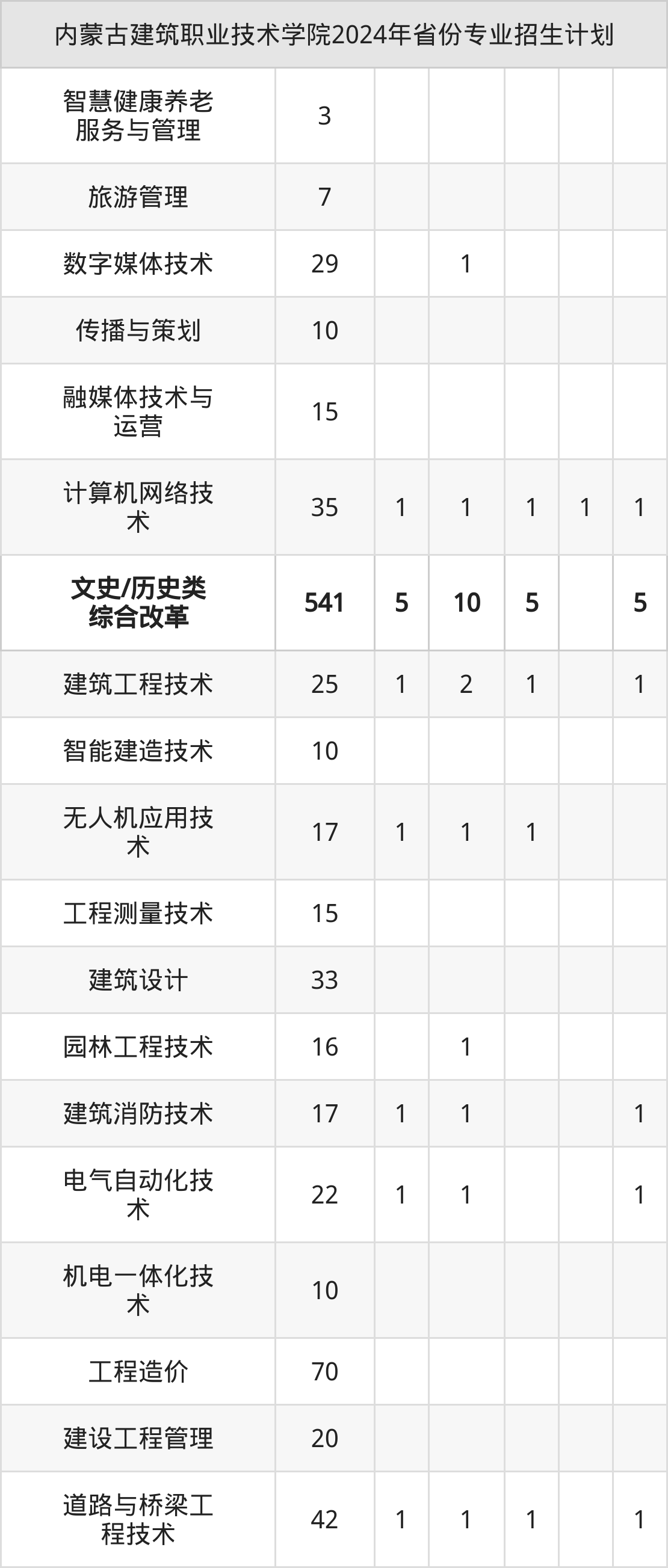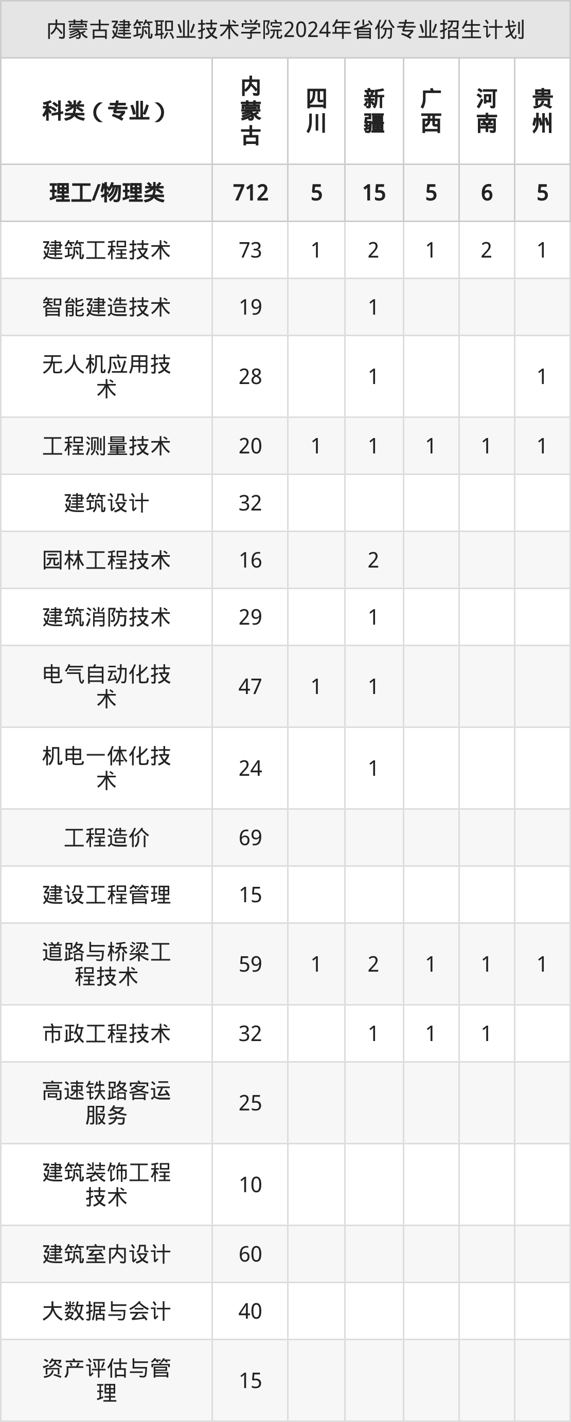 2025年内蒙古建筑职业技术学院专科招生计划待公布,下面附上2024年数据,暂供参考: