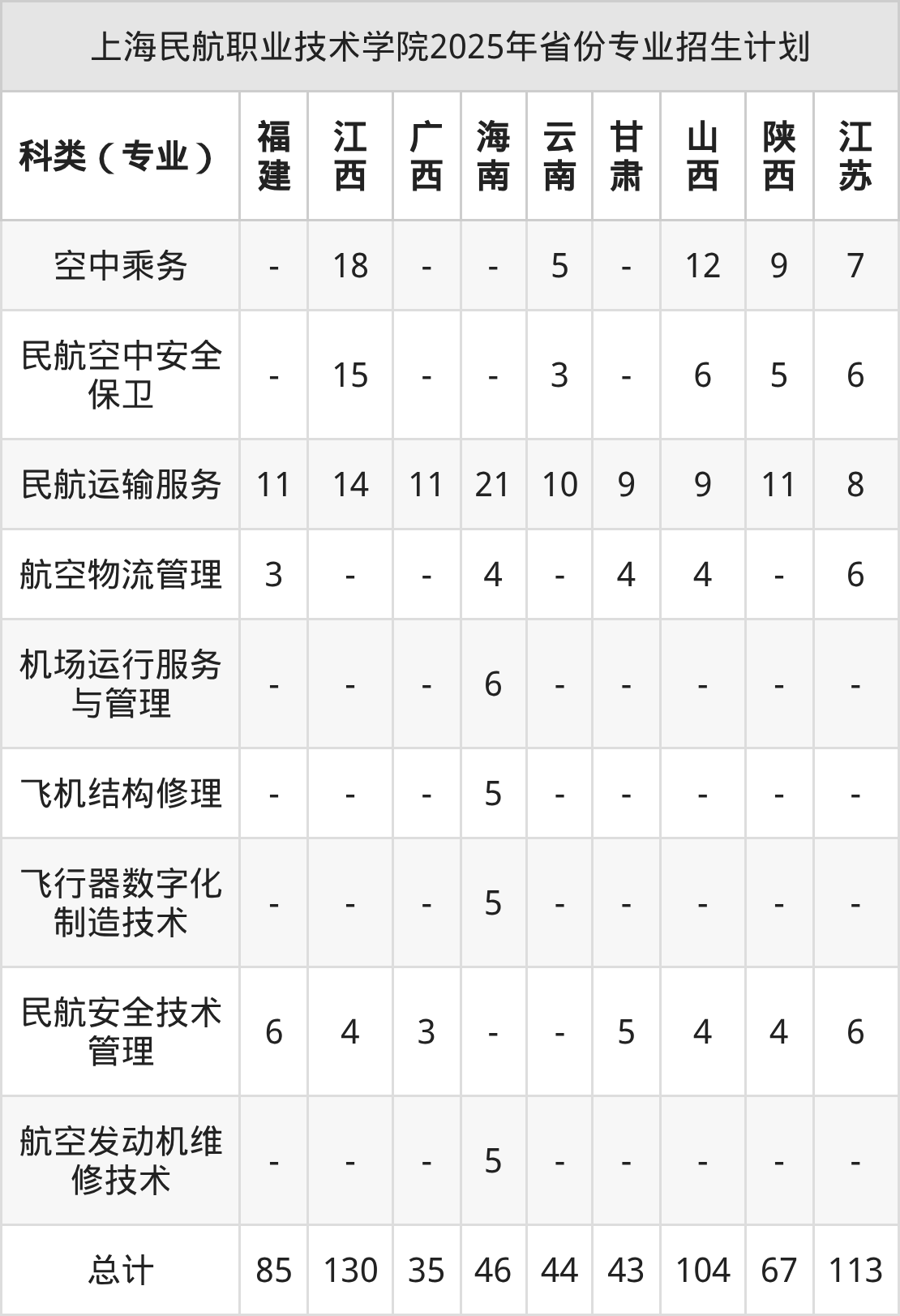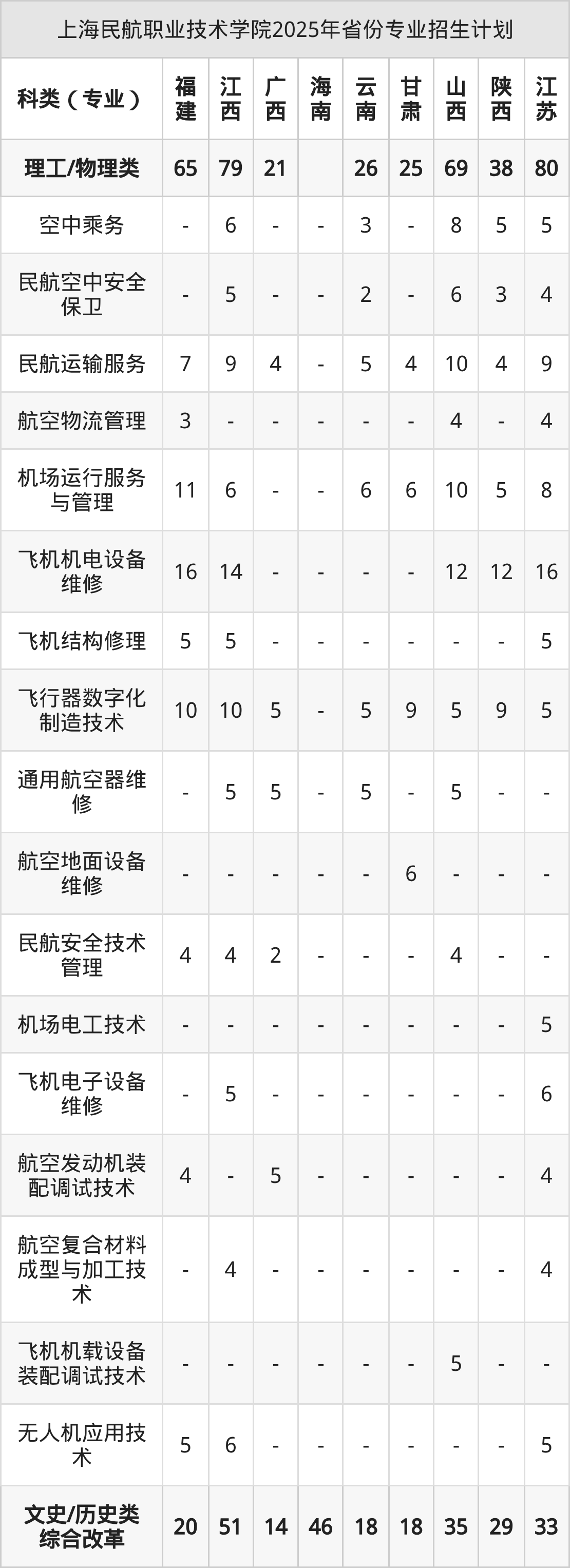 2026年上海民航职业技术学院专科招生计划待公布,下面附上2025年数据,暂供参考:
