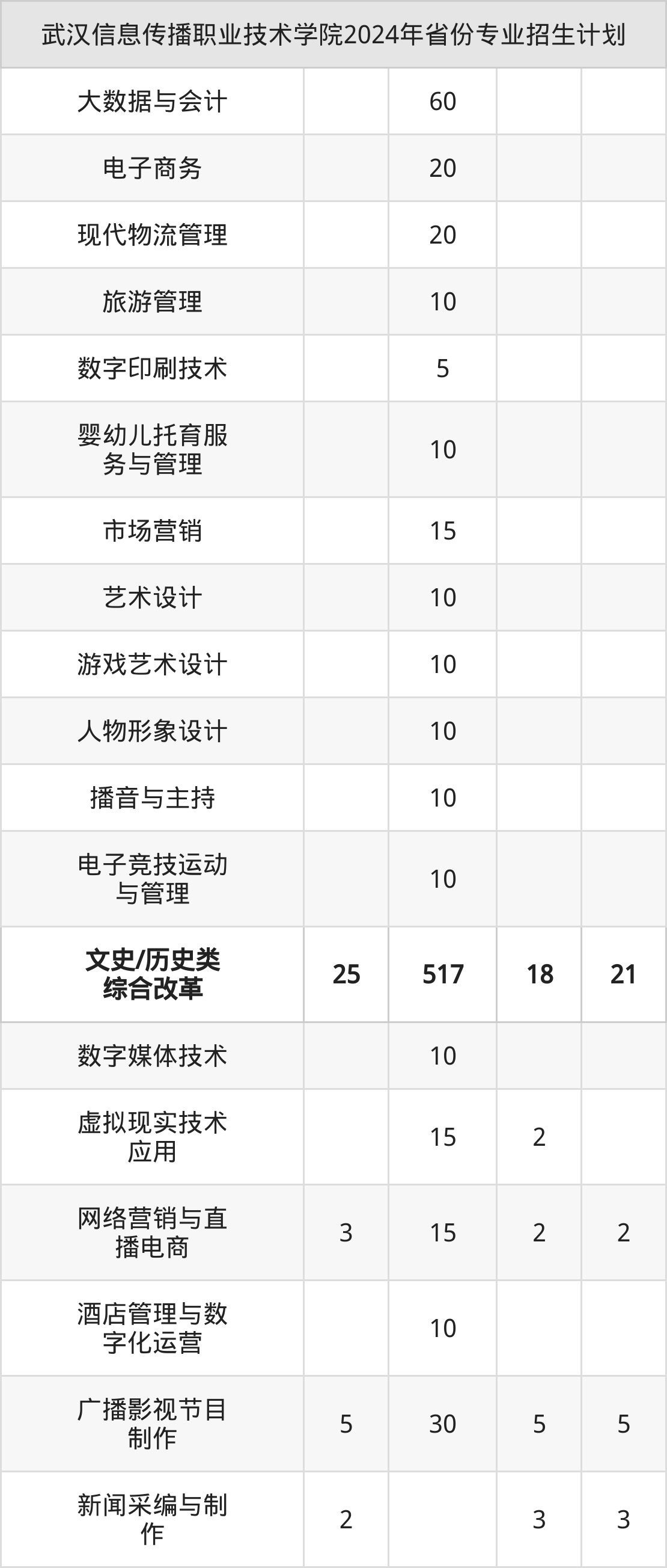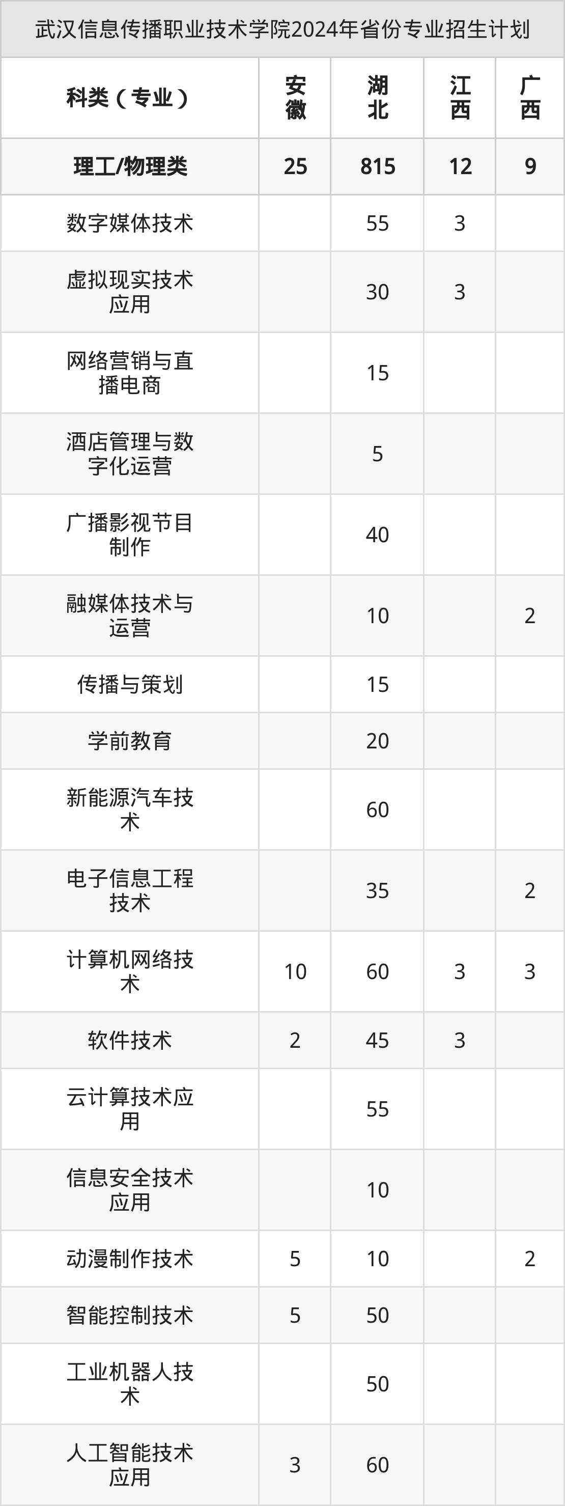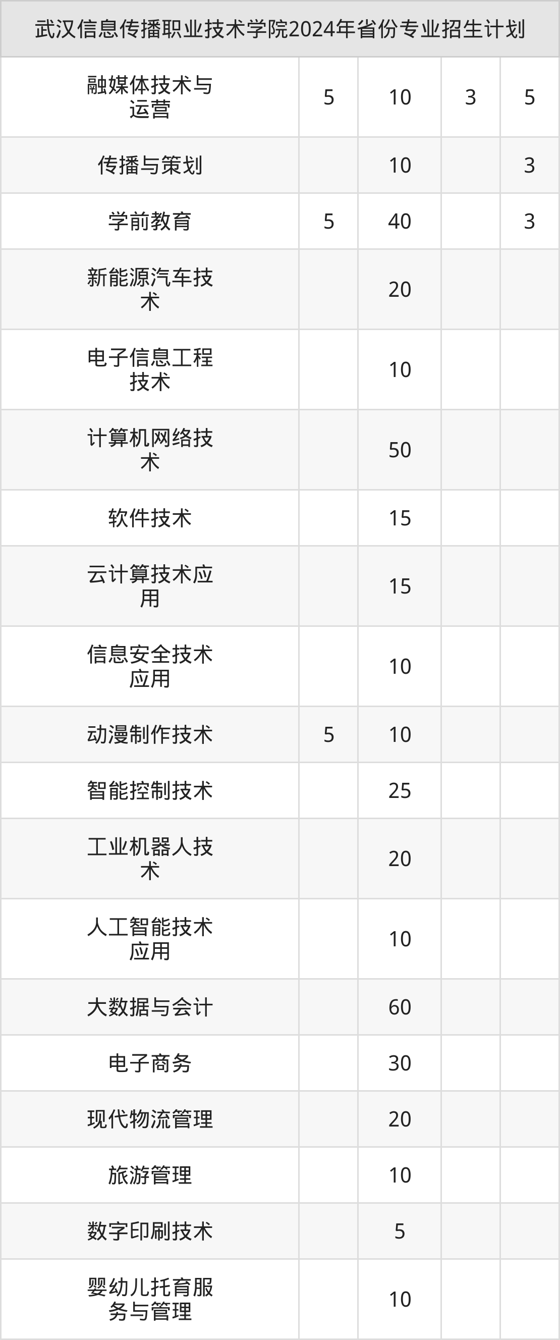 2025年武汉信息传播职业技术学院专科招生计划待公布,下面附上2024年数据,暂供参考: