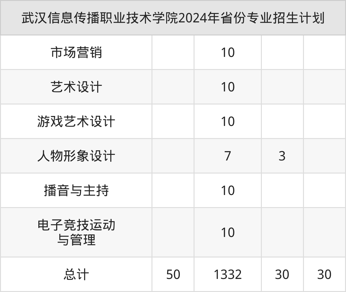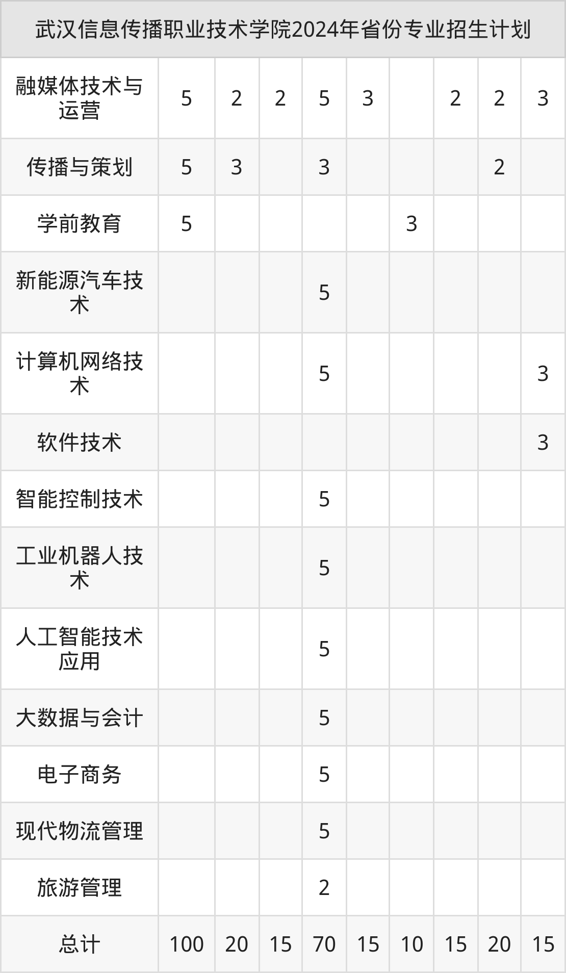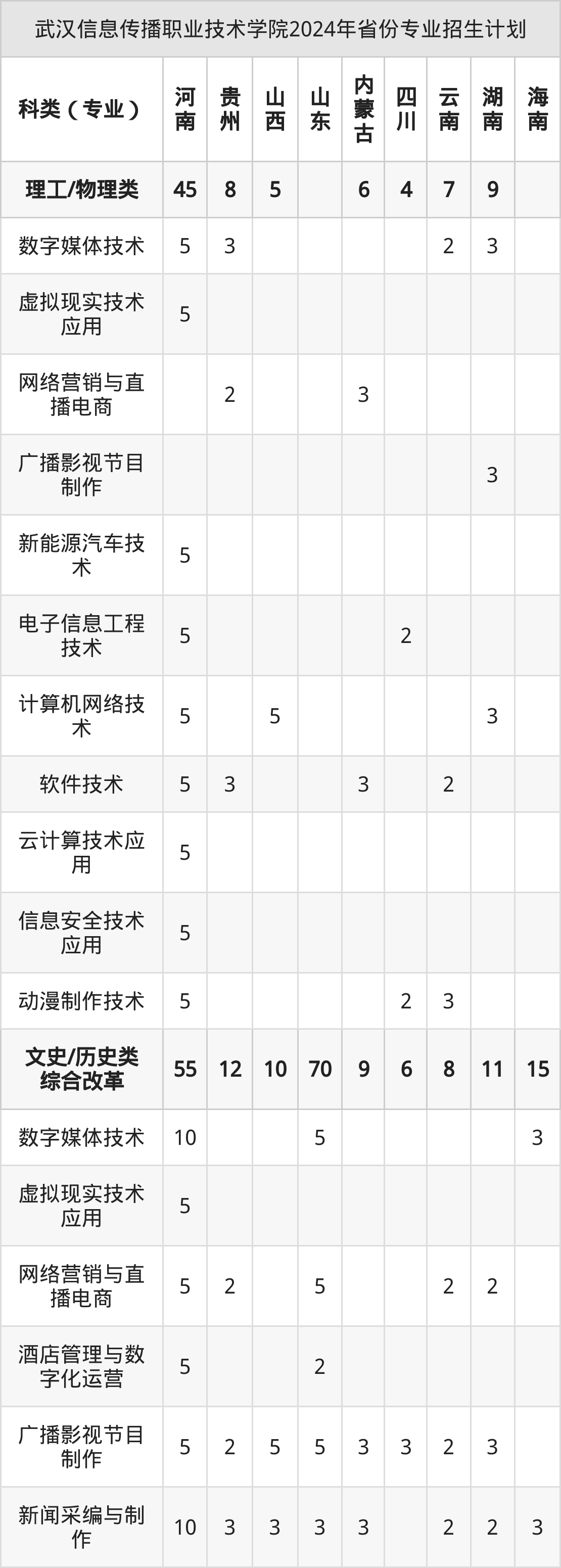 2025年武汉信息传播职业技术学院专科招生计划待公布,下面附上2024年数据,暂供参考: