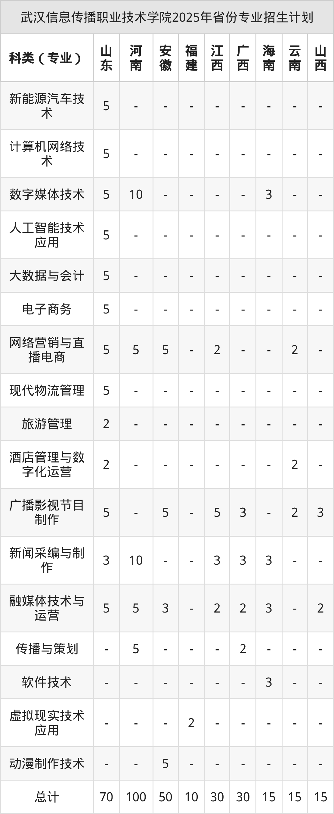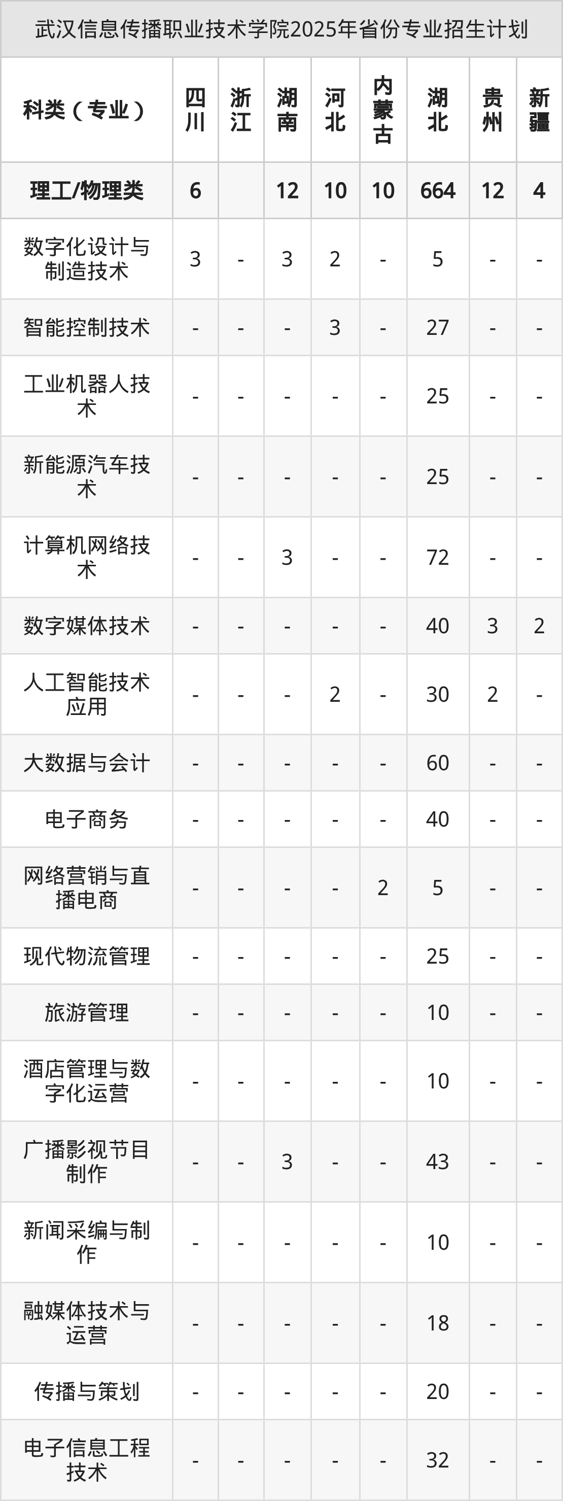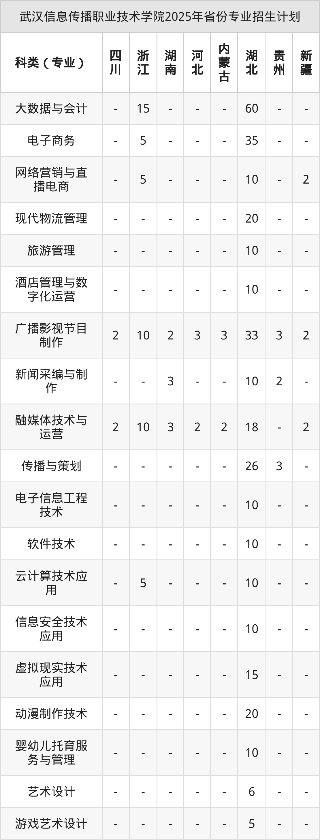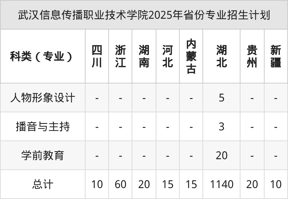 2026年武汉信息传播职业技术学院专科招生计划待公布,下面附上2025年数据,暂供参考: