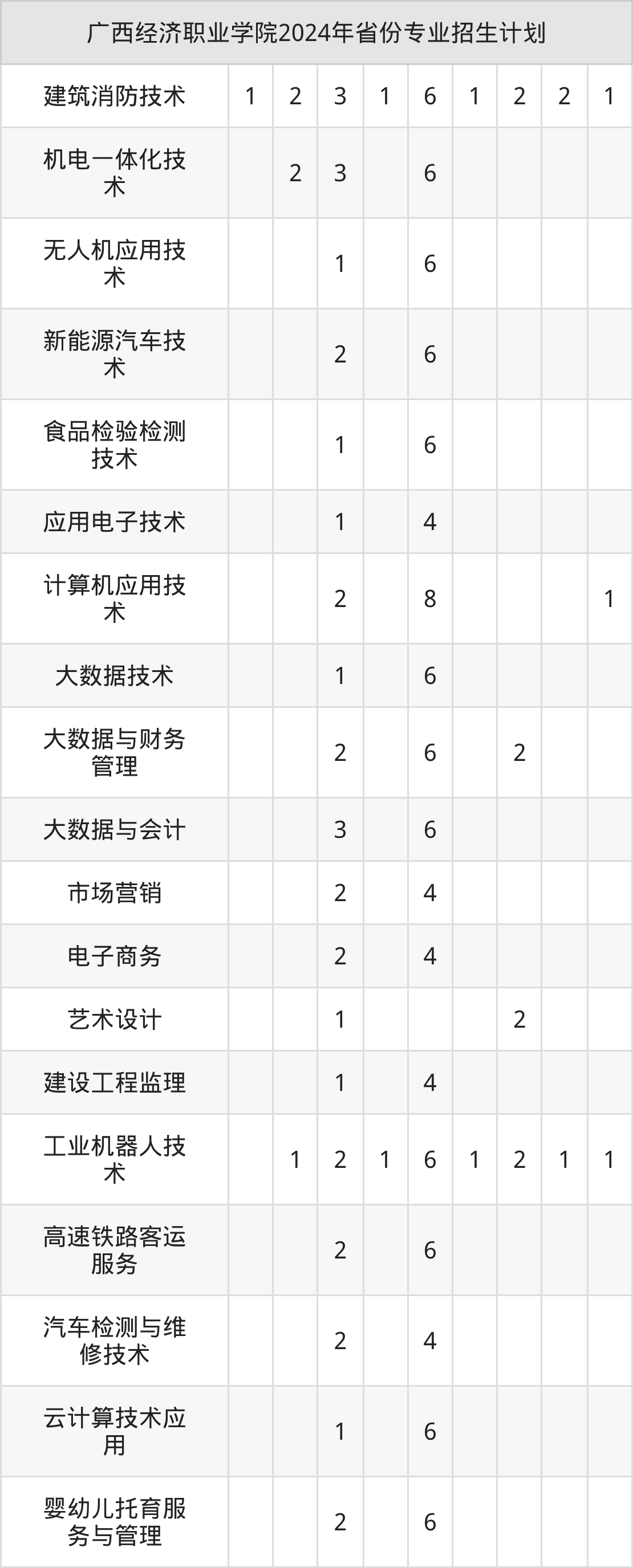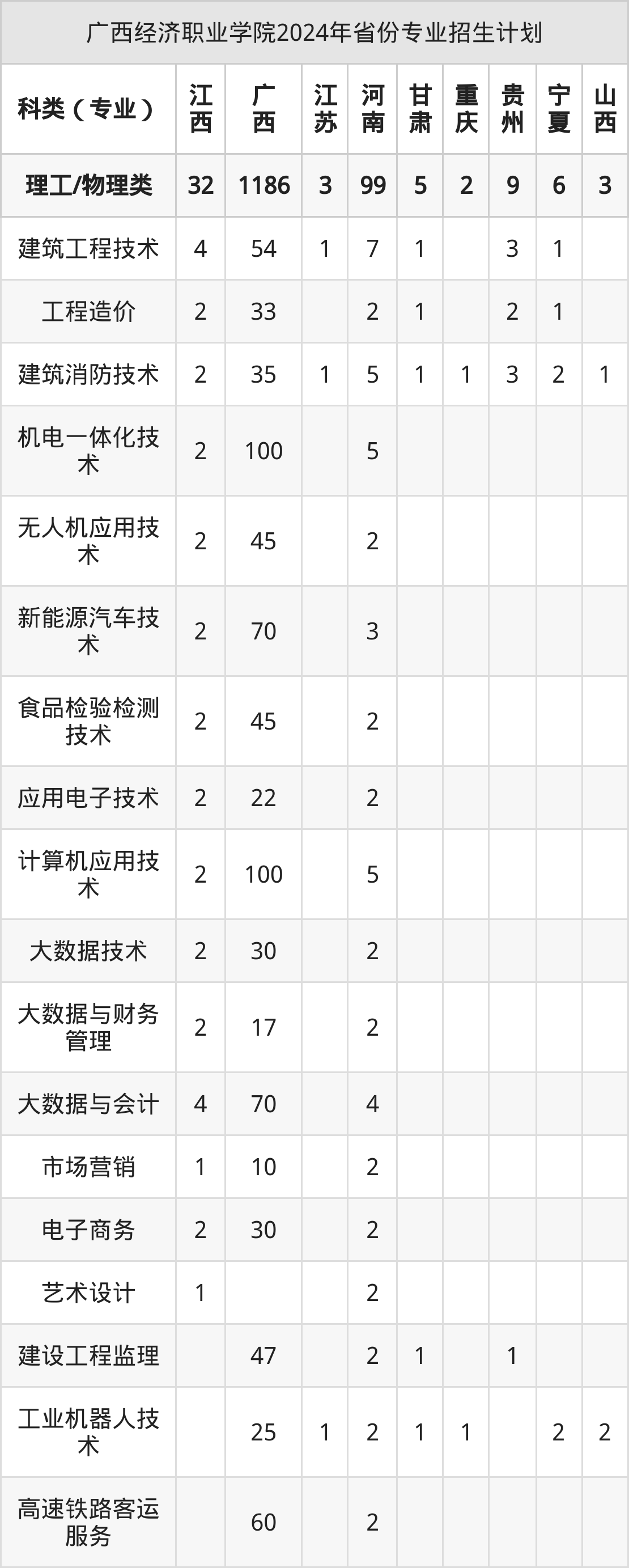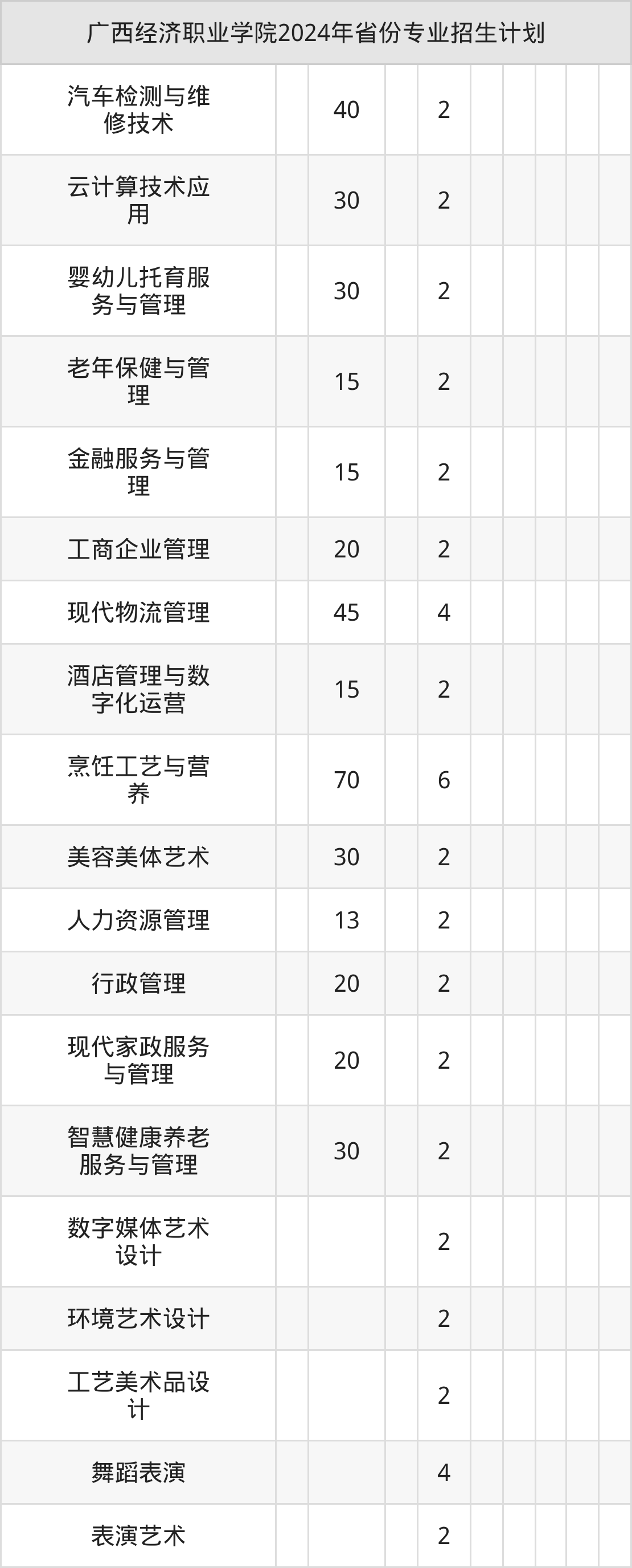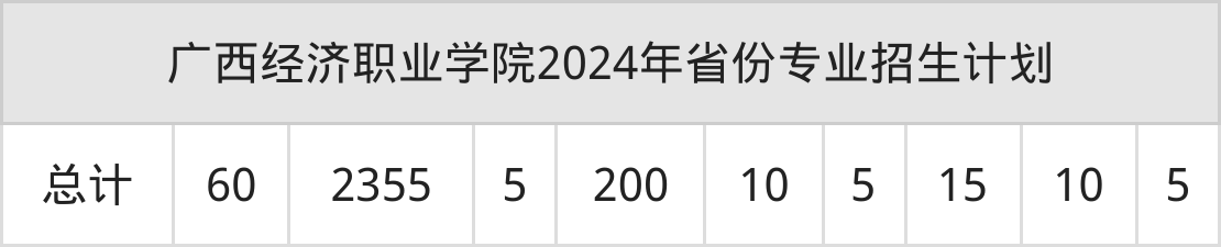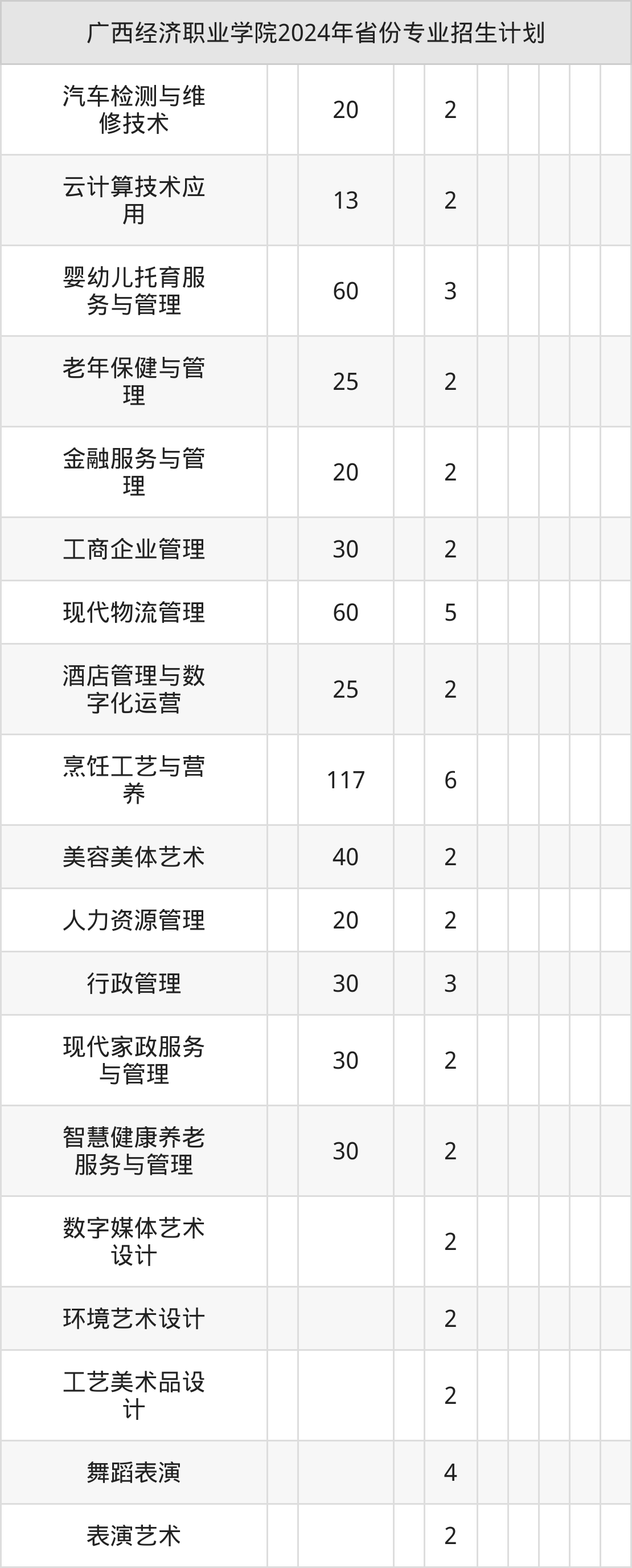 2025年广西经济职业学院专科招生计划待公布,下面附上2024年数据,暂供参考: