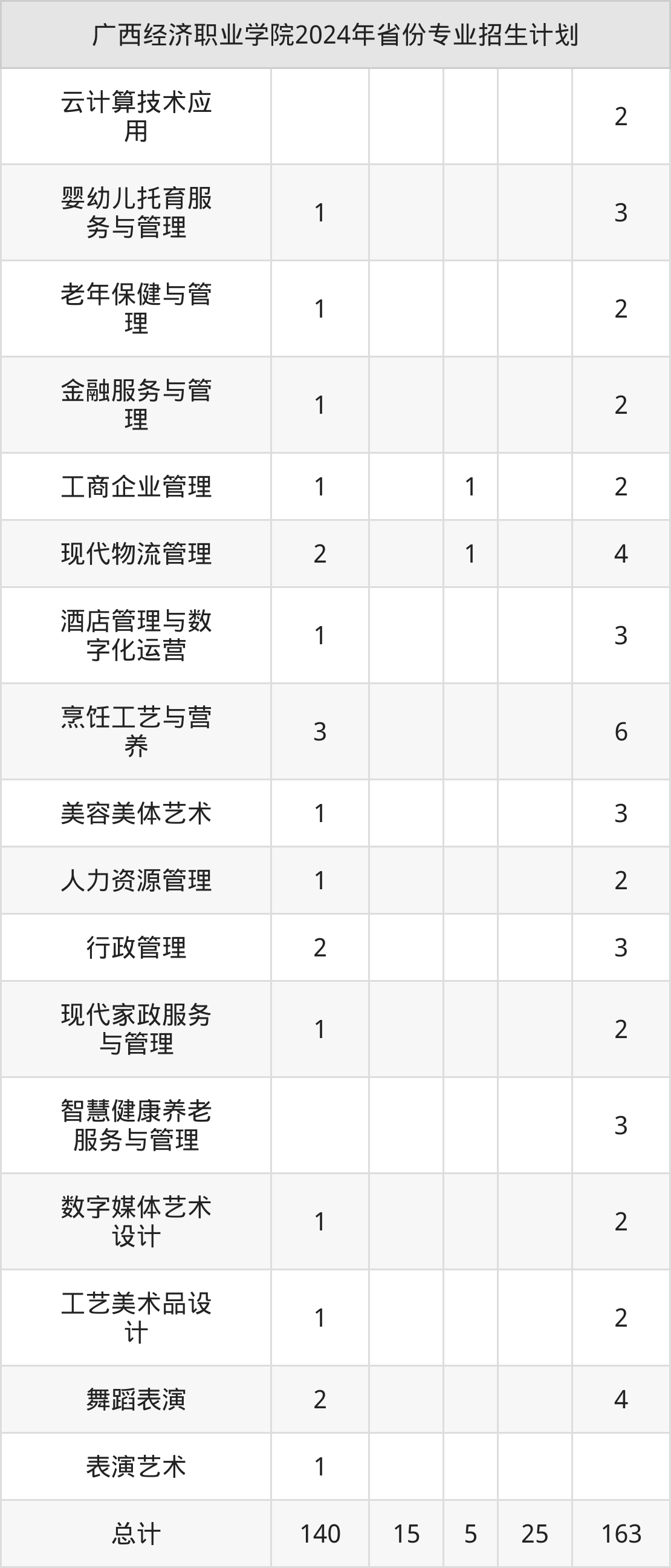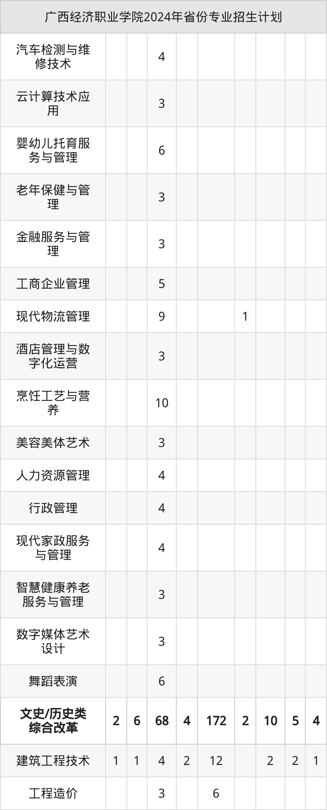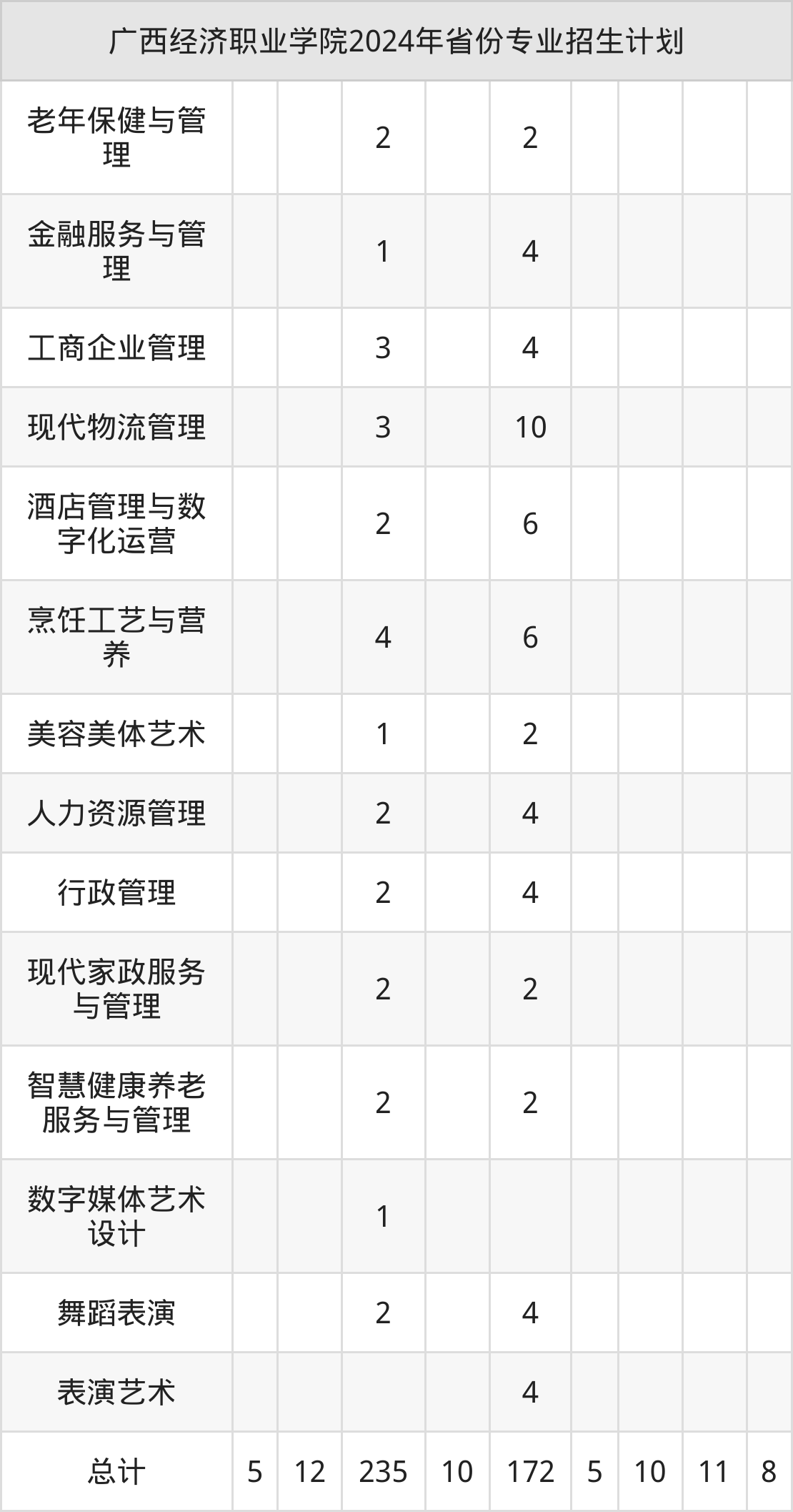 2025年广西经济职业学院专科招生计划待公布,下面附上2024年数据,暂供参考: