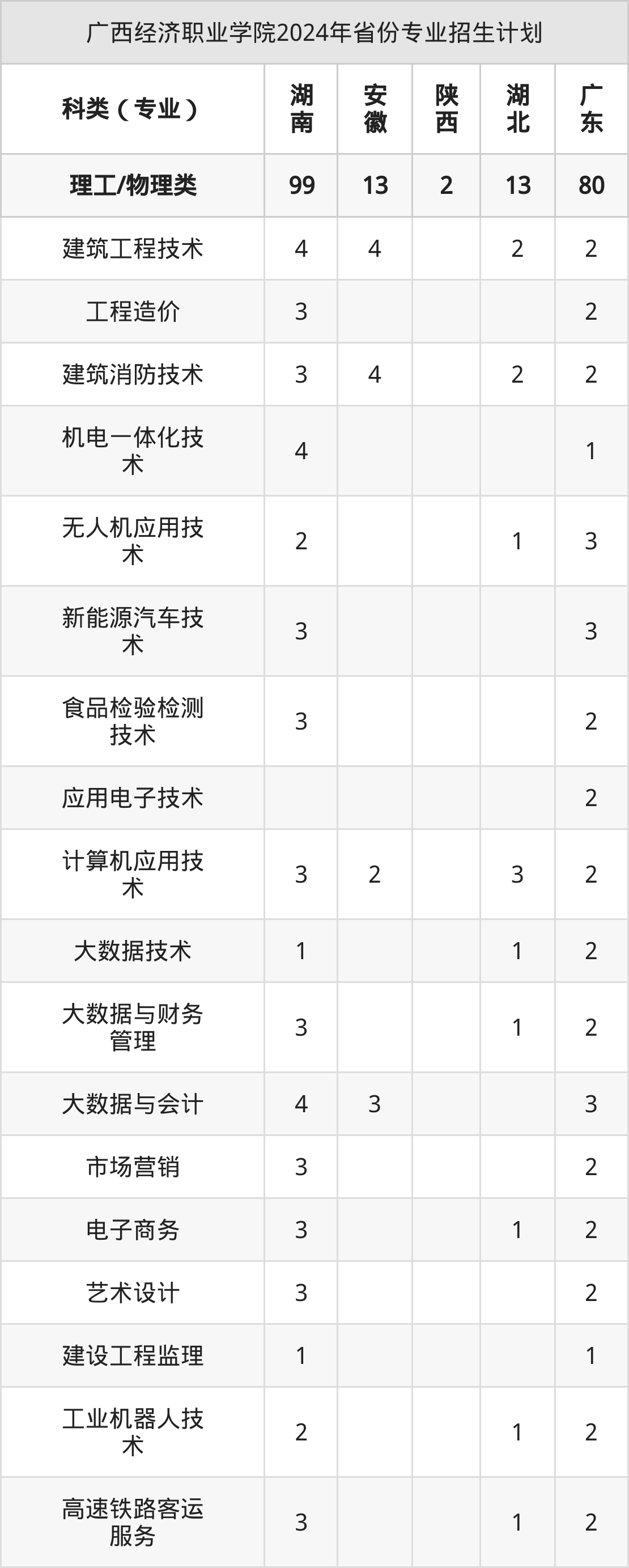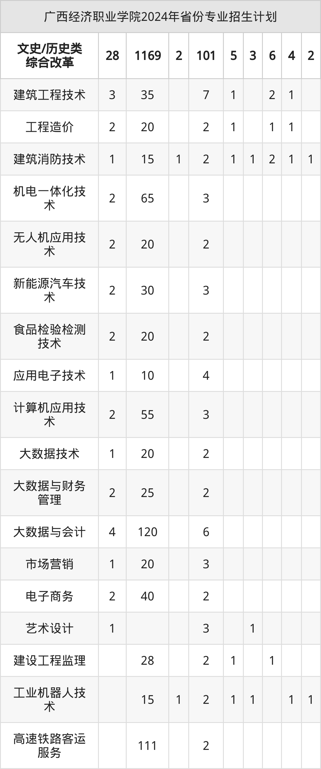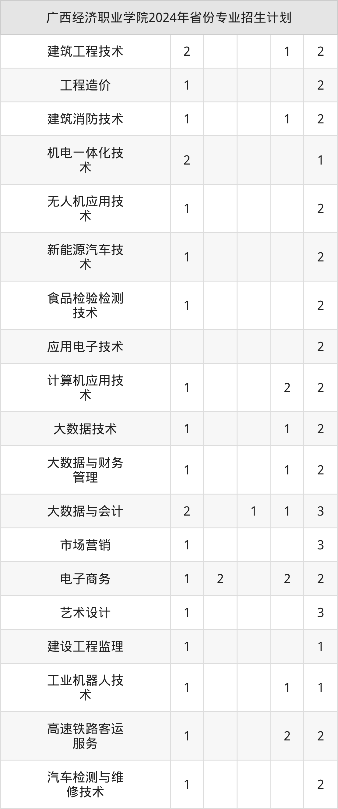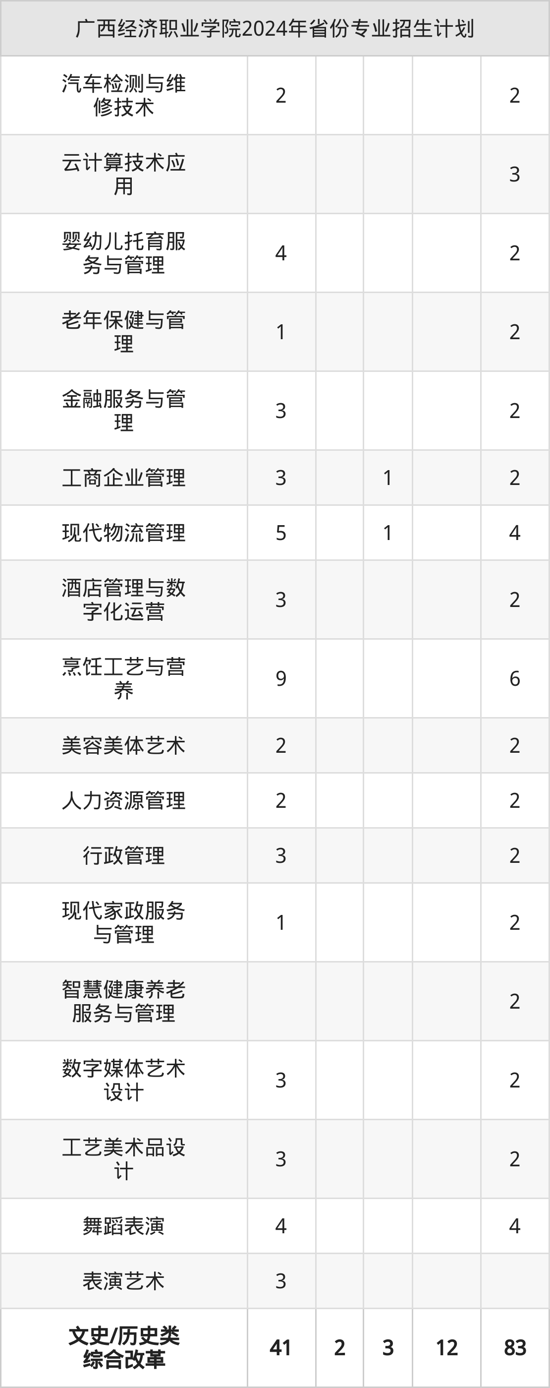 2025年广西经济职业学院专科招生计划待公布,下面附上2024年数据,暂供参考: