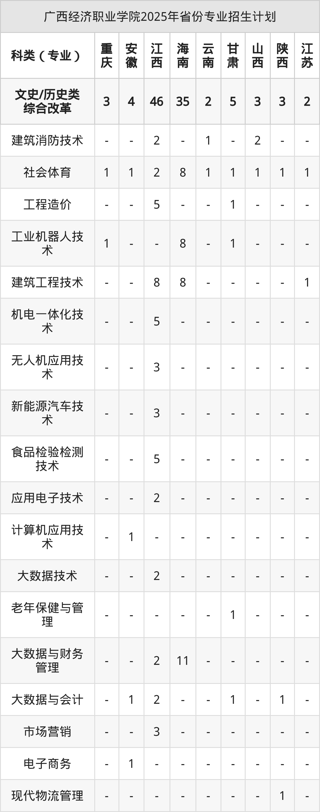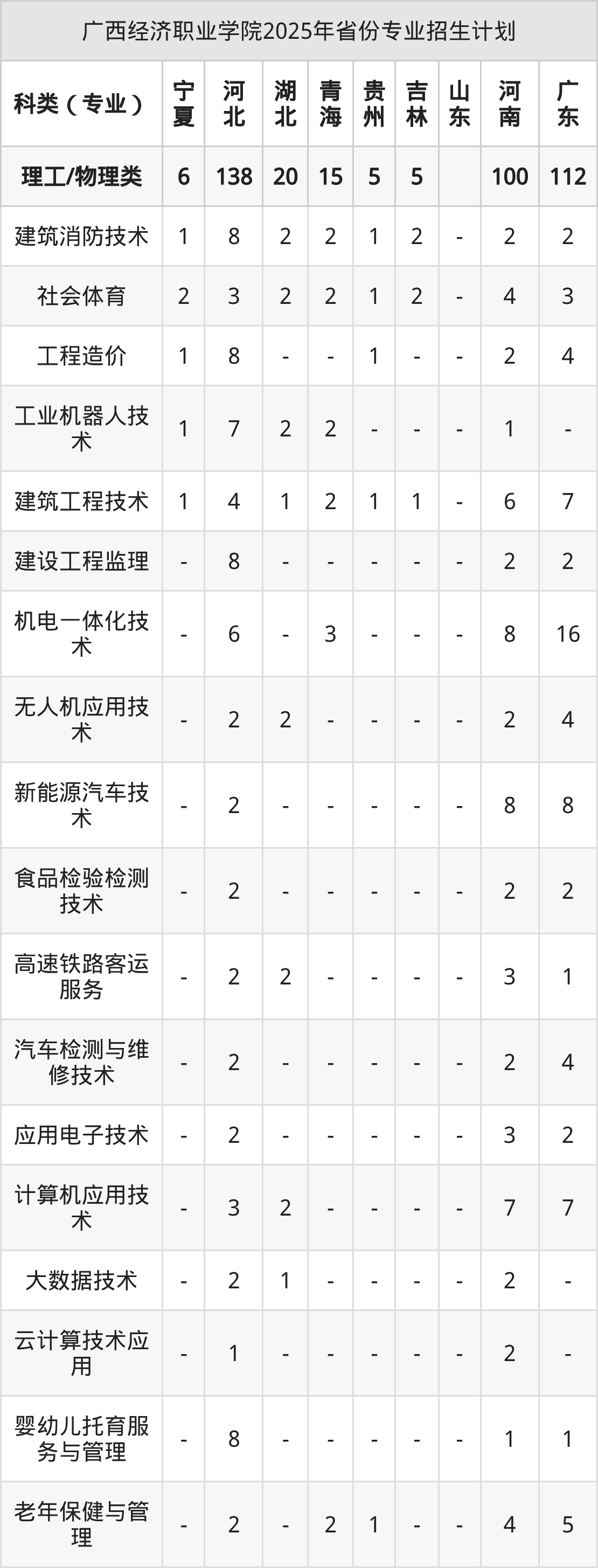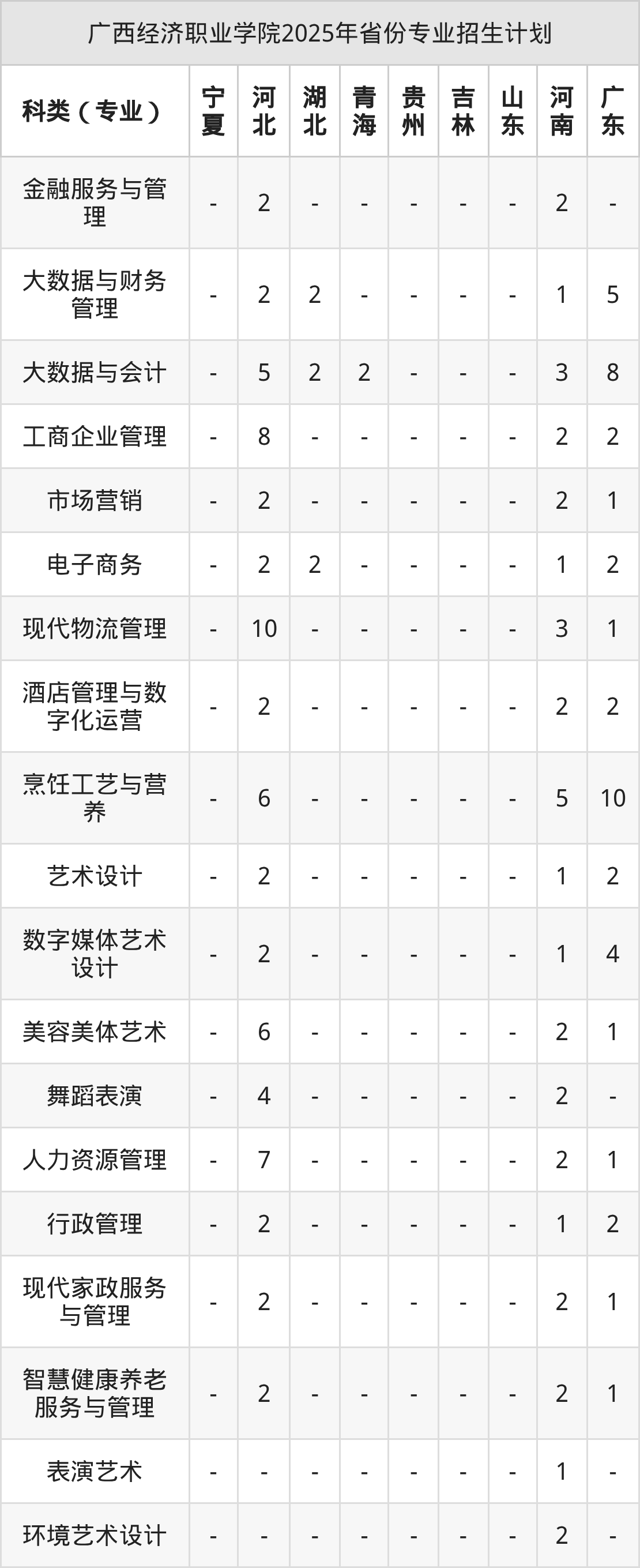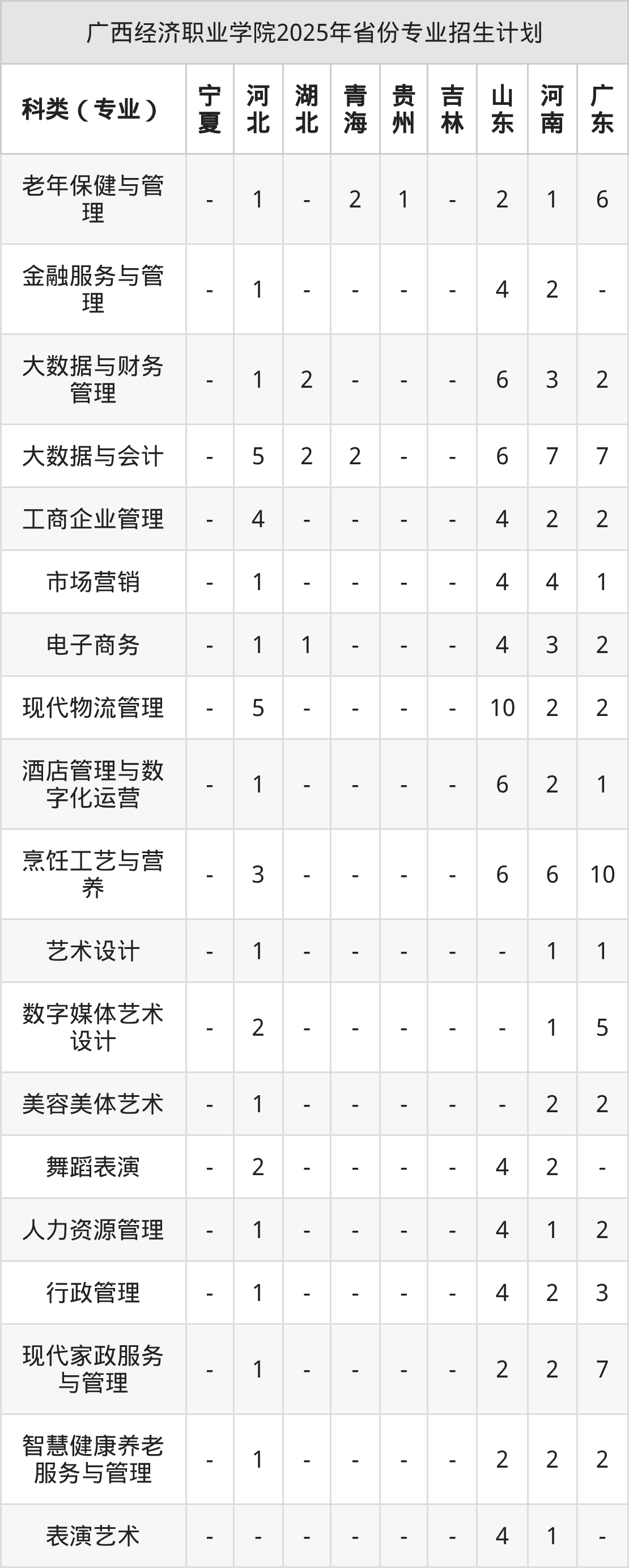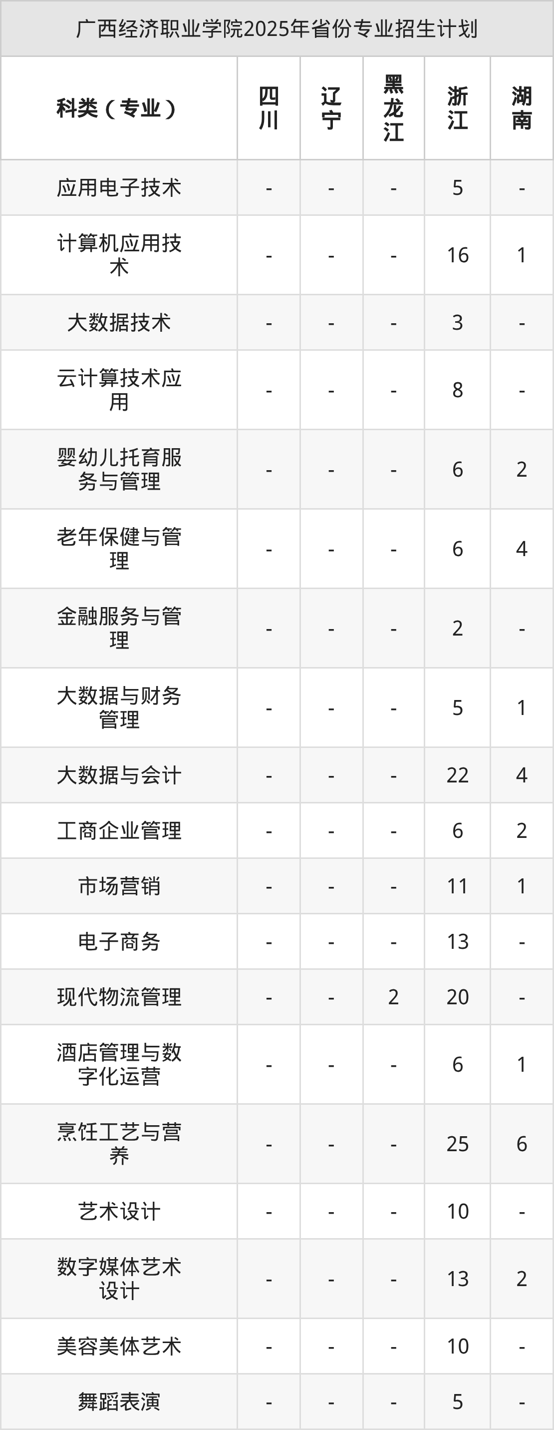 2026年广西经济职业学院专科招生计划待公布,下面附上2025年数据,暂供参考: