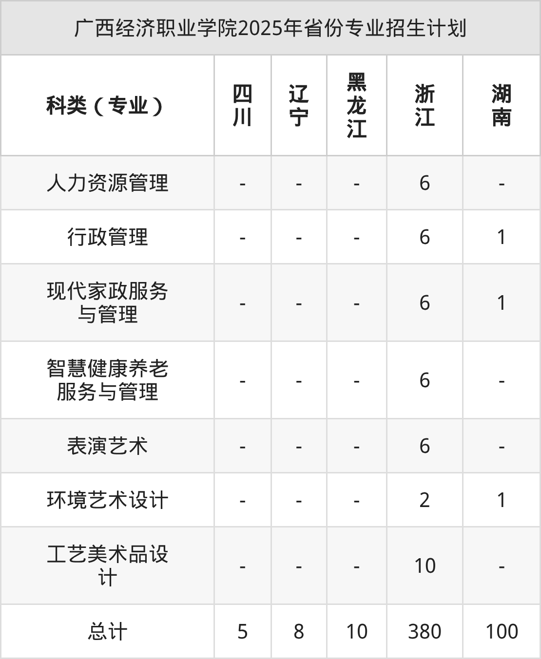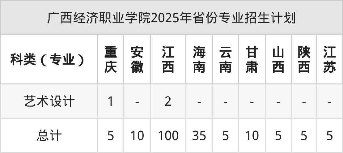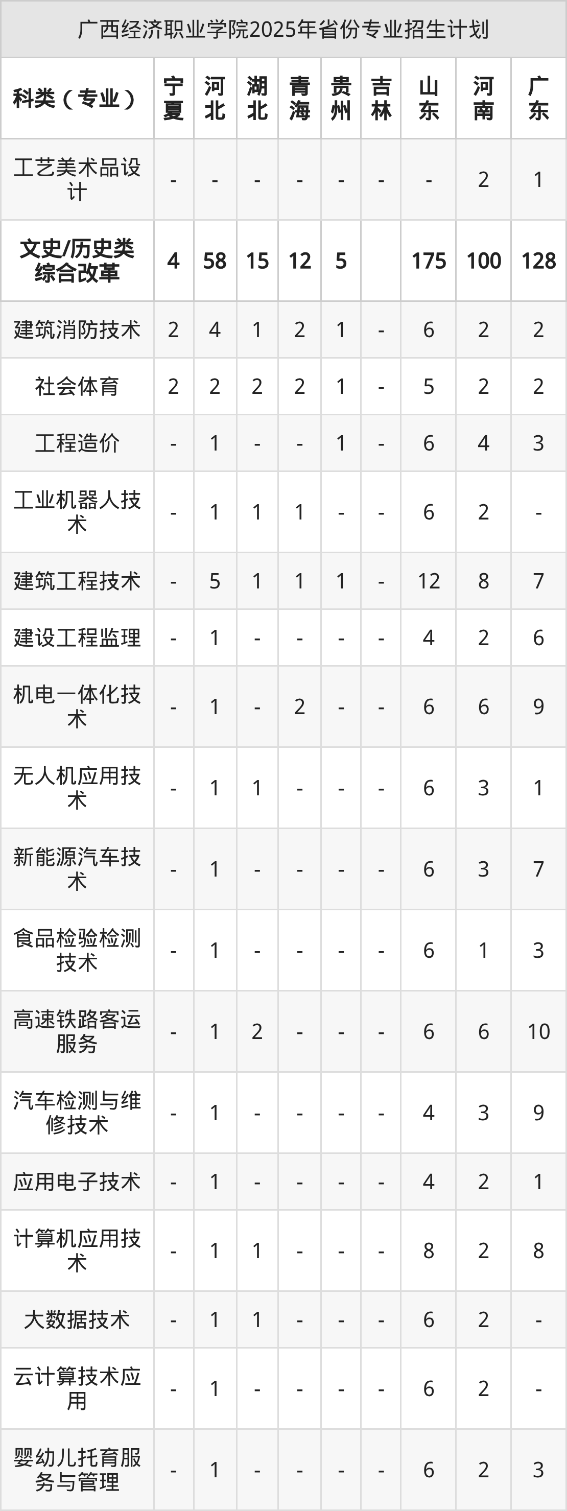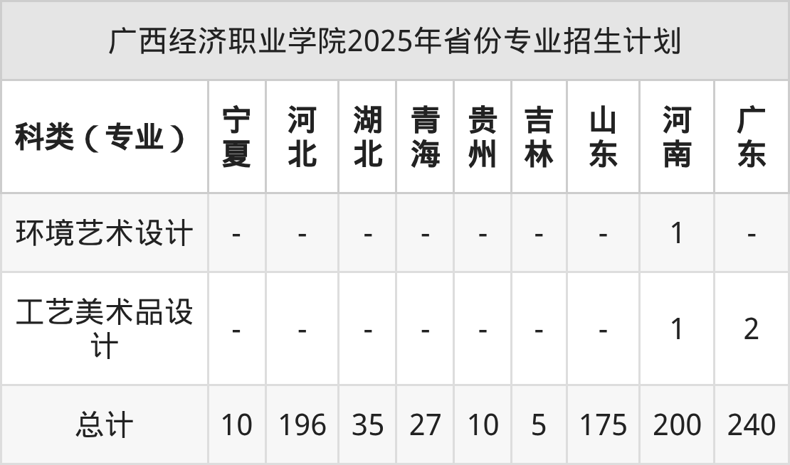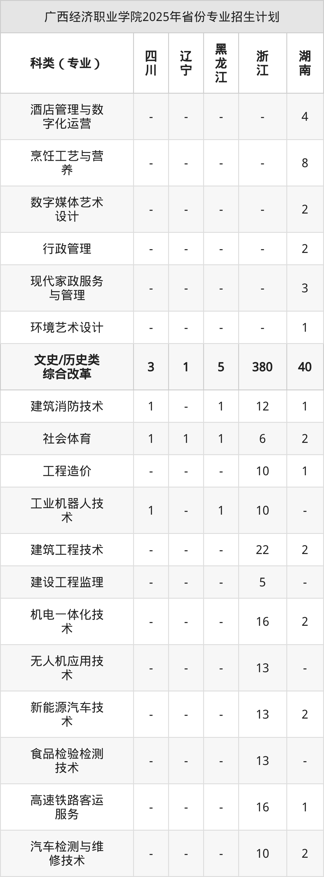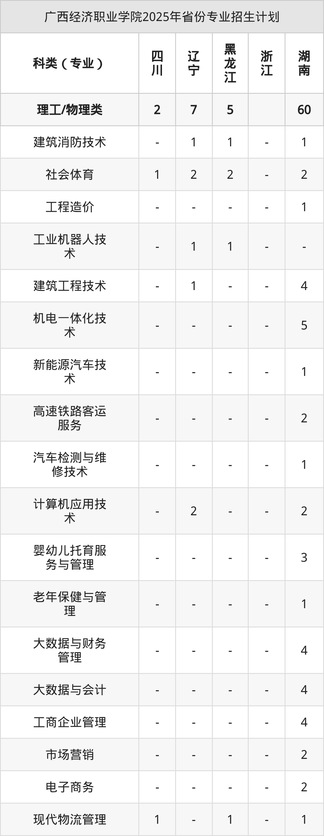 2026年广西经济职业学院专科招生计划待公布,下面附上2025年数据,暂供参考: