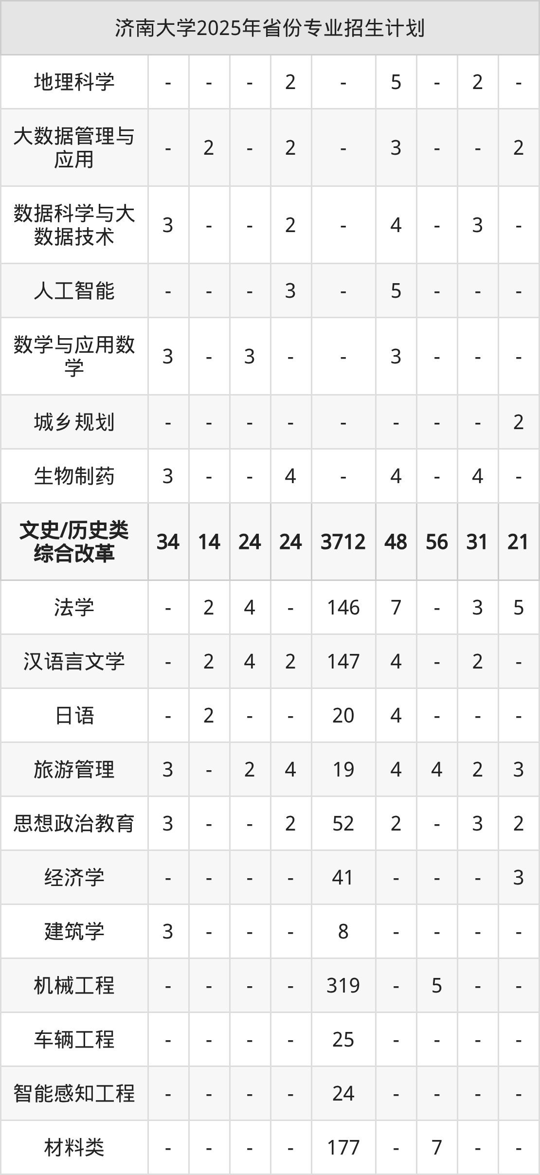 2026年济南大学本科招生计划待公布,下面附上2025年数据,暂供参考: