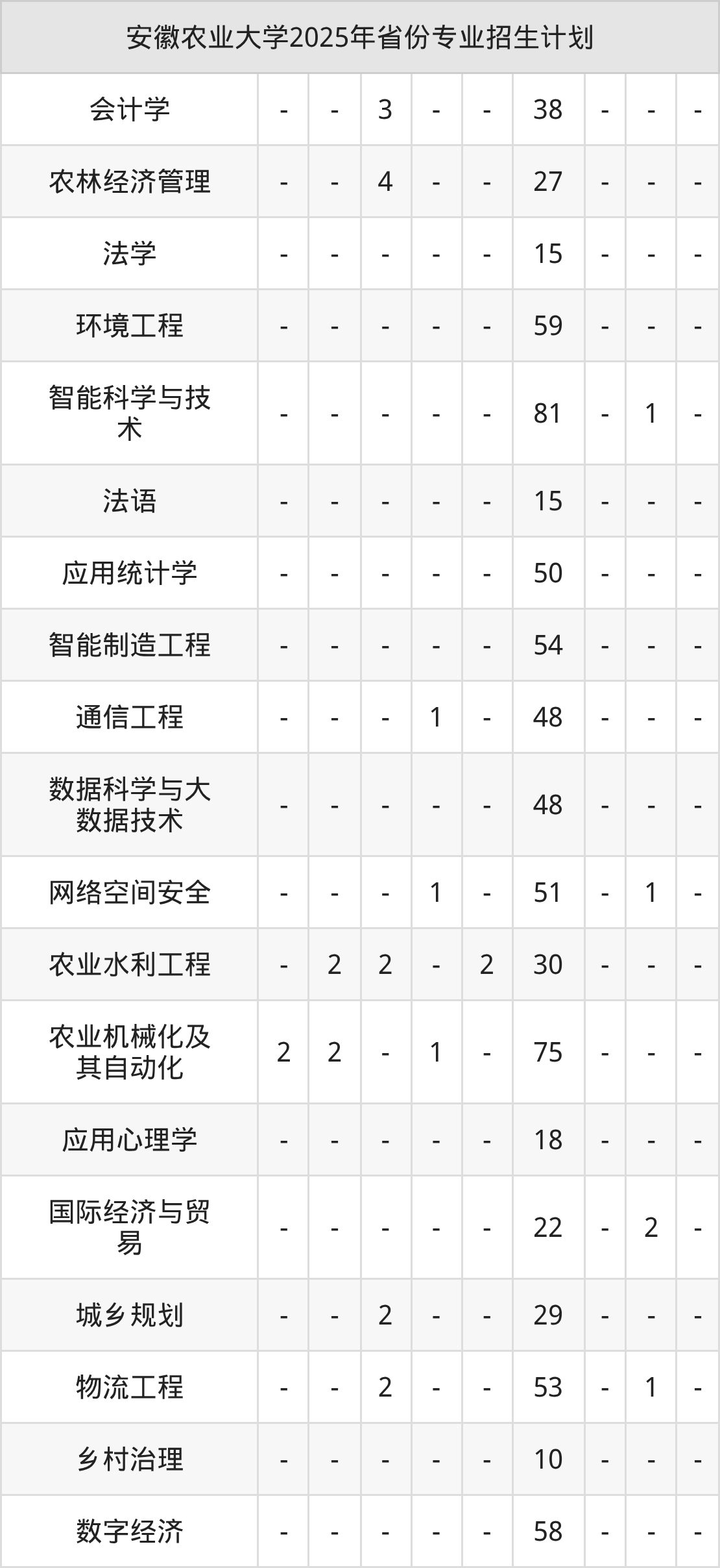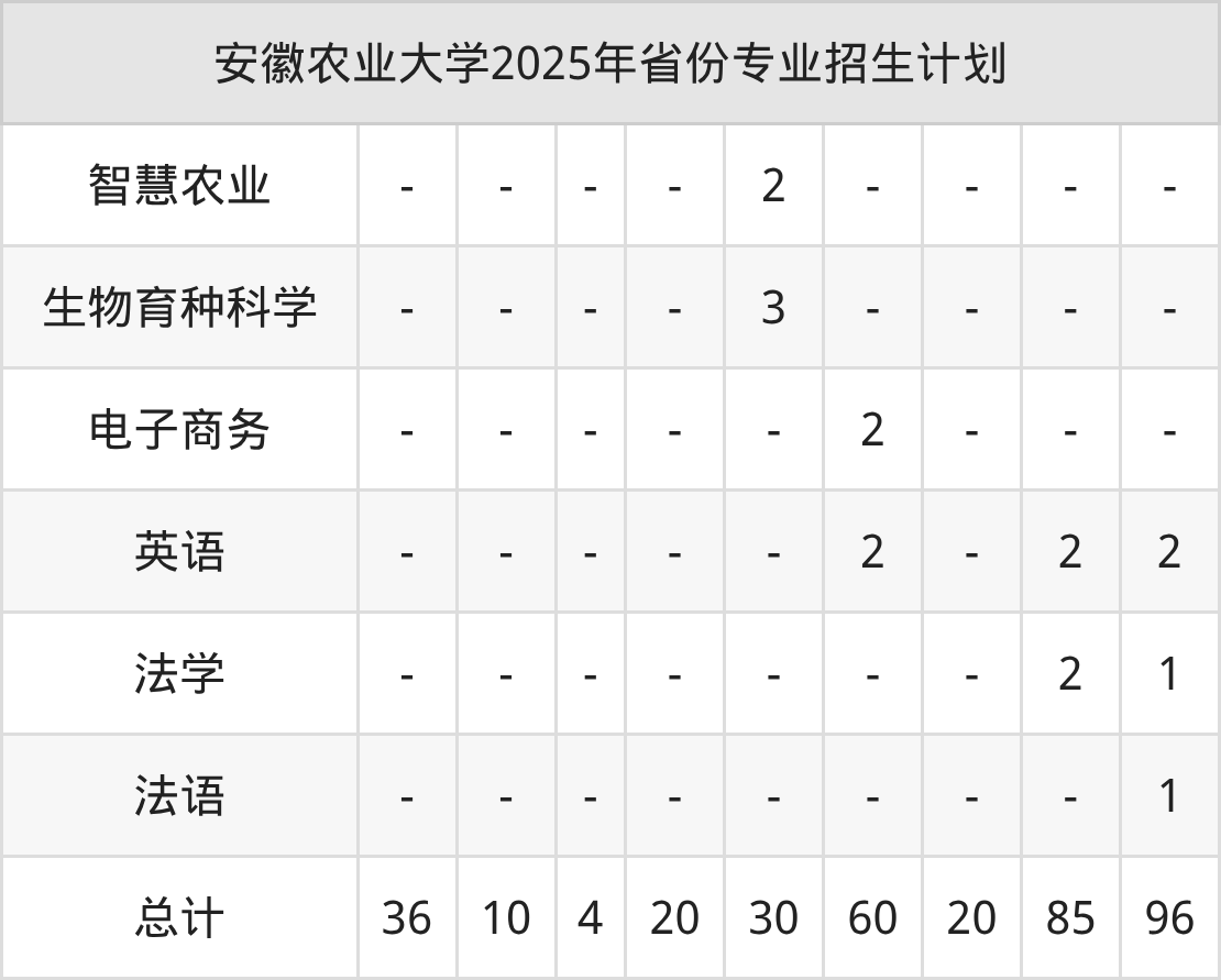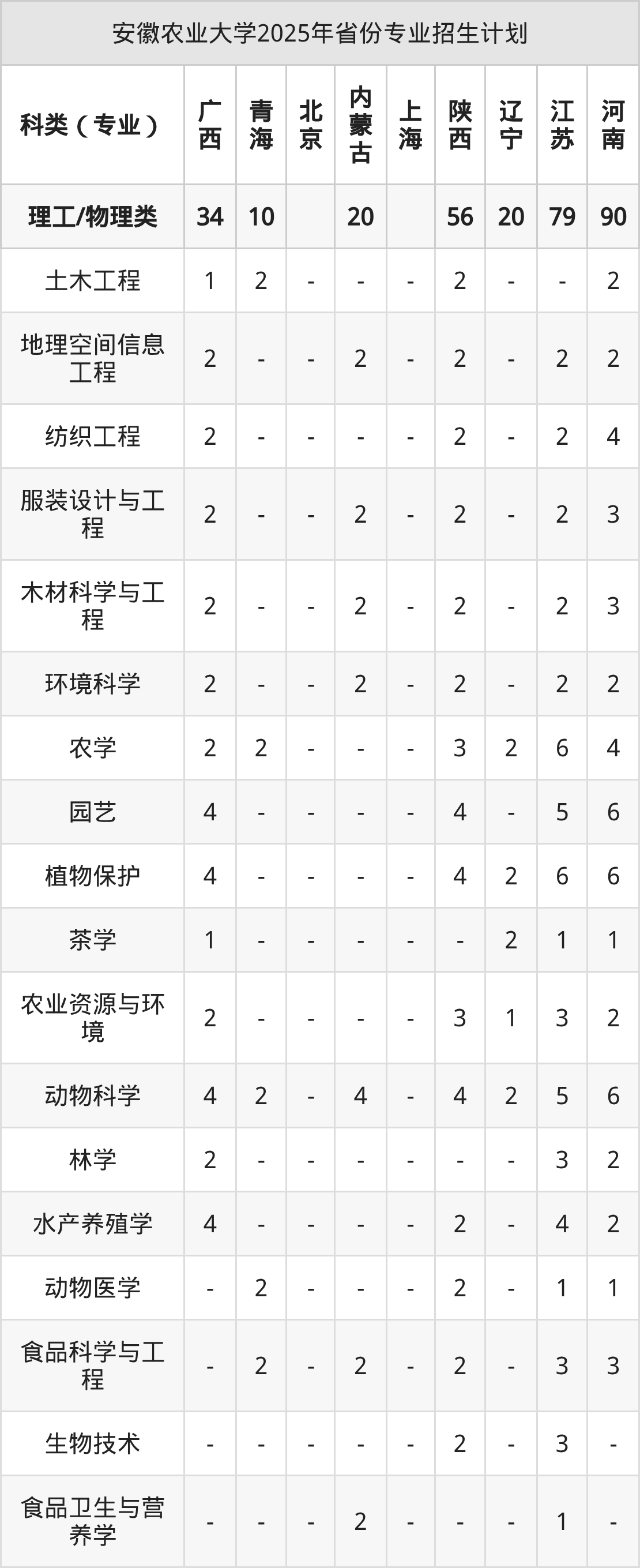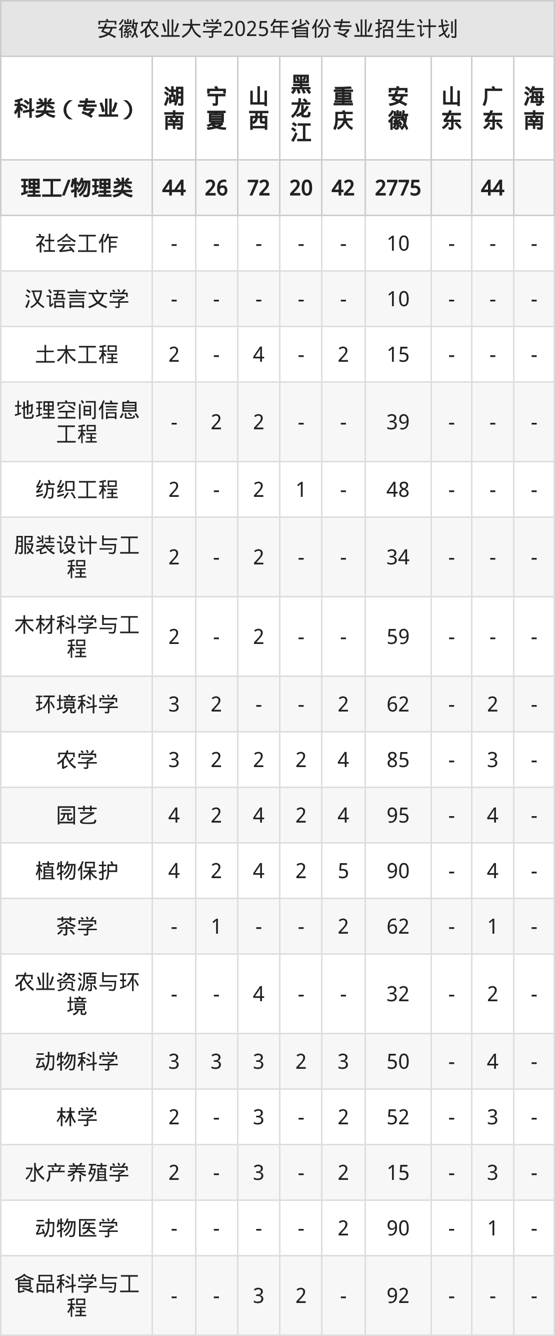 2026年安徽农业大学本科招生计划待公布,下面附上2025年数据,暂供参考: