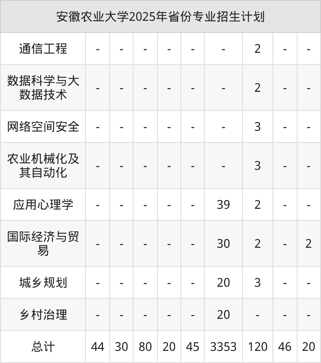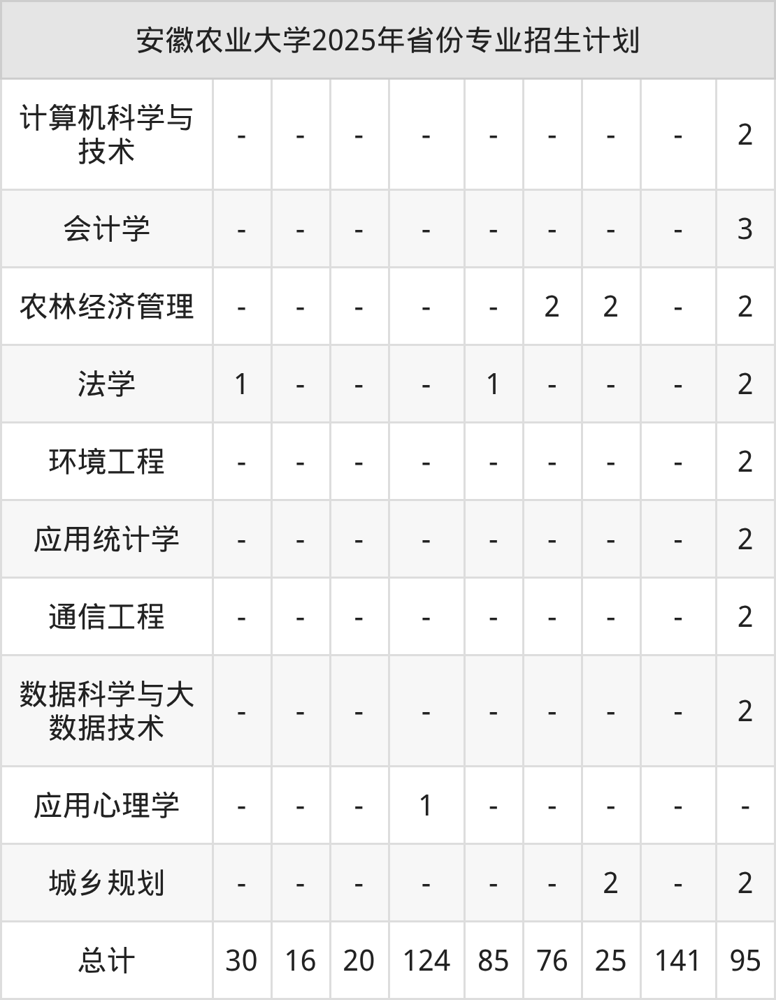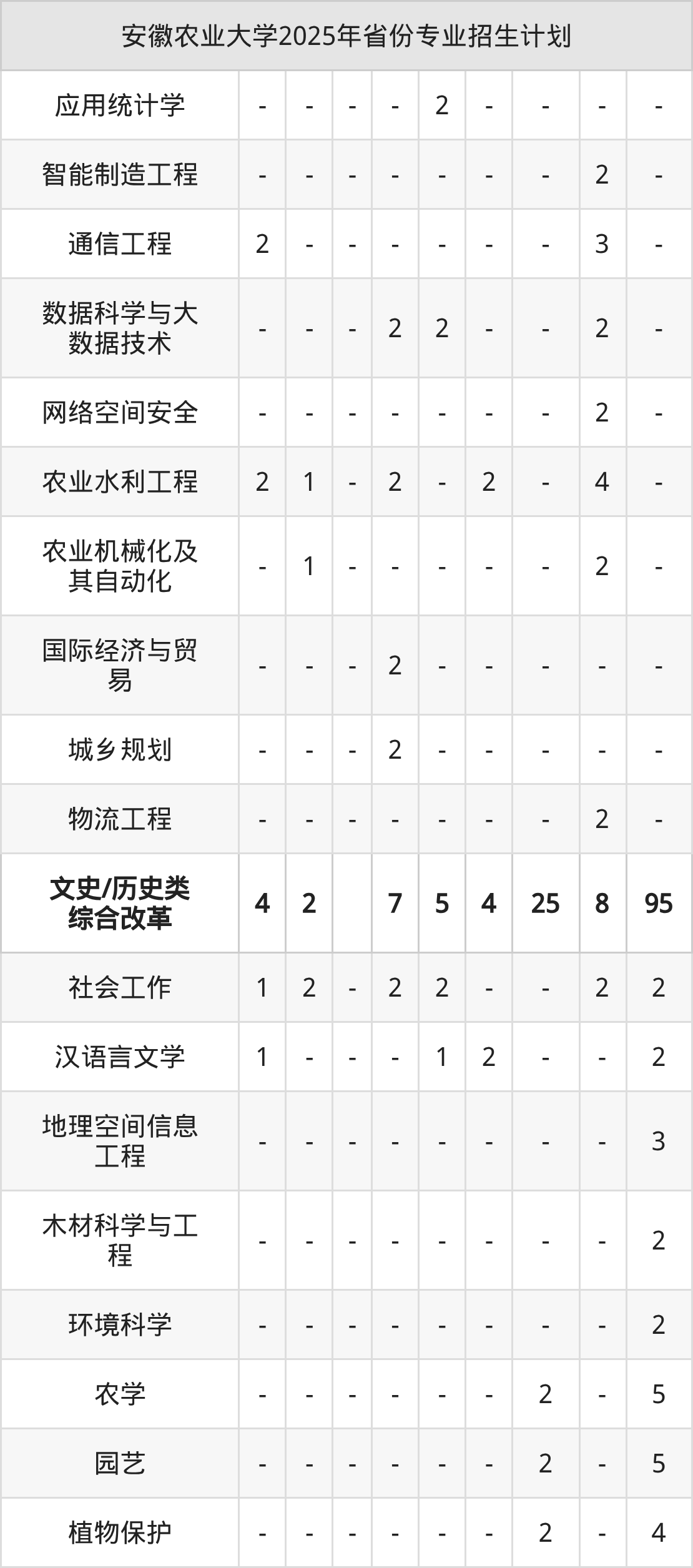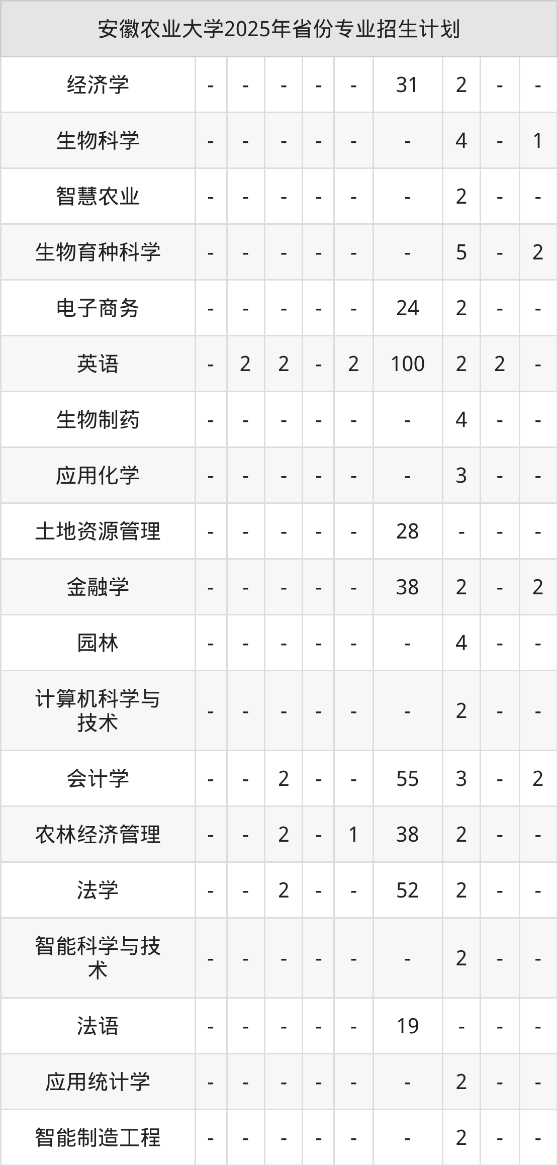 2026年安徽农业大学本科招生计划待公布,下面附上2025年数据,暂供参考: