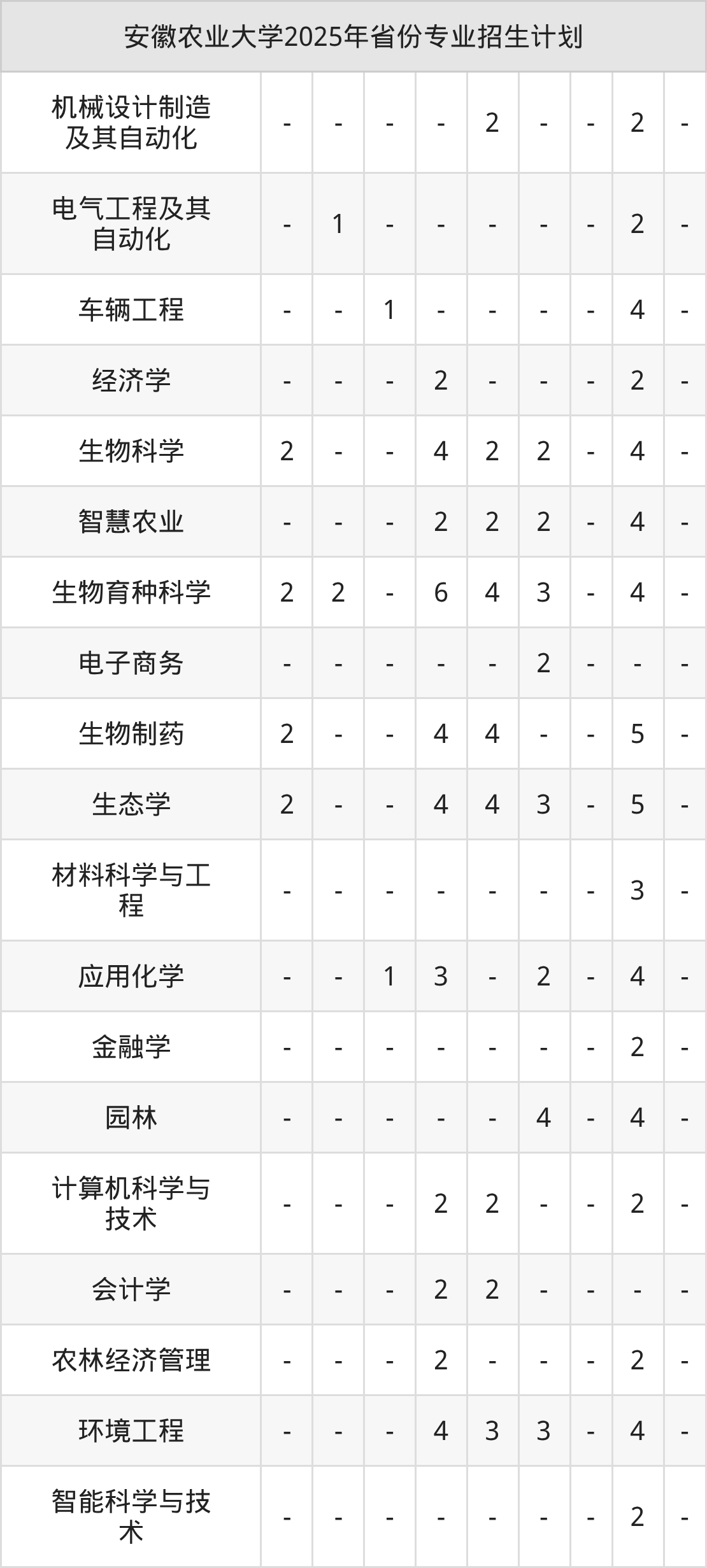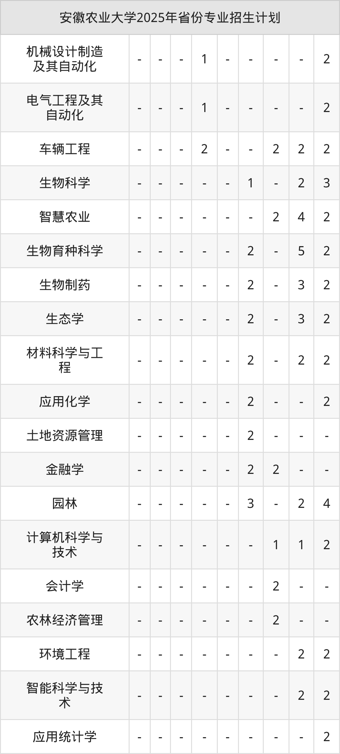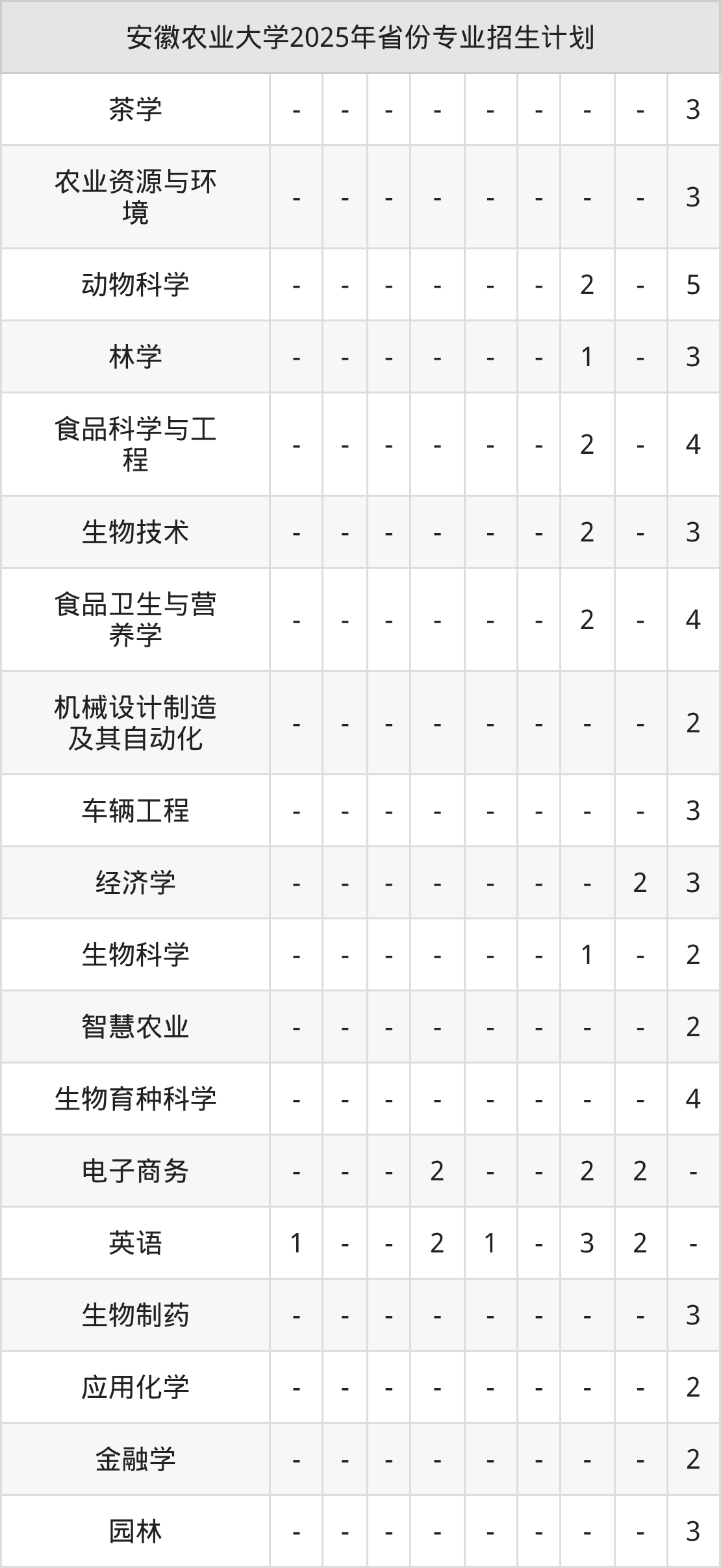 | 安徽农业大学本科招生专业 | |