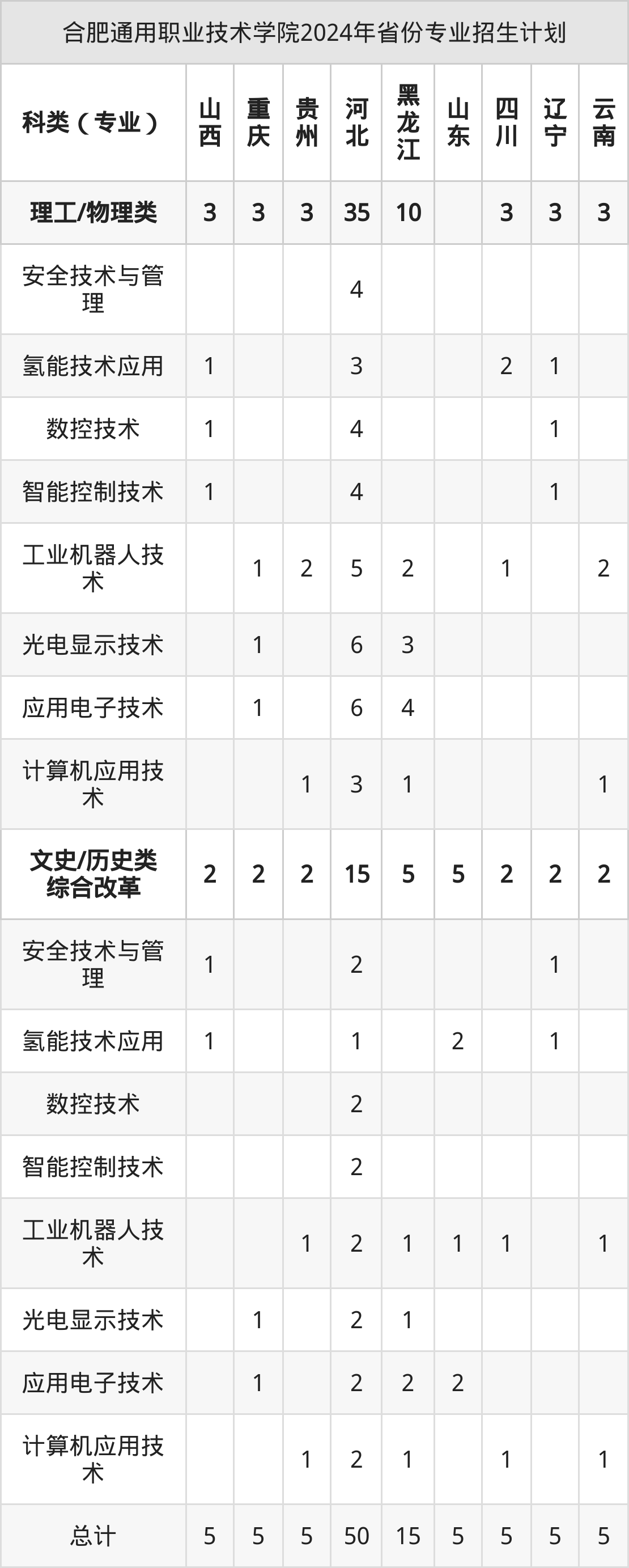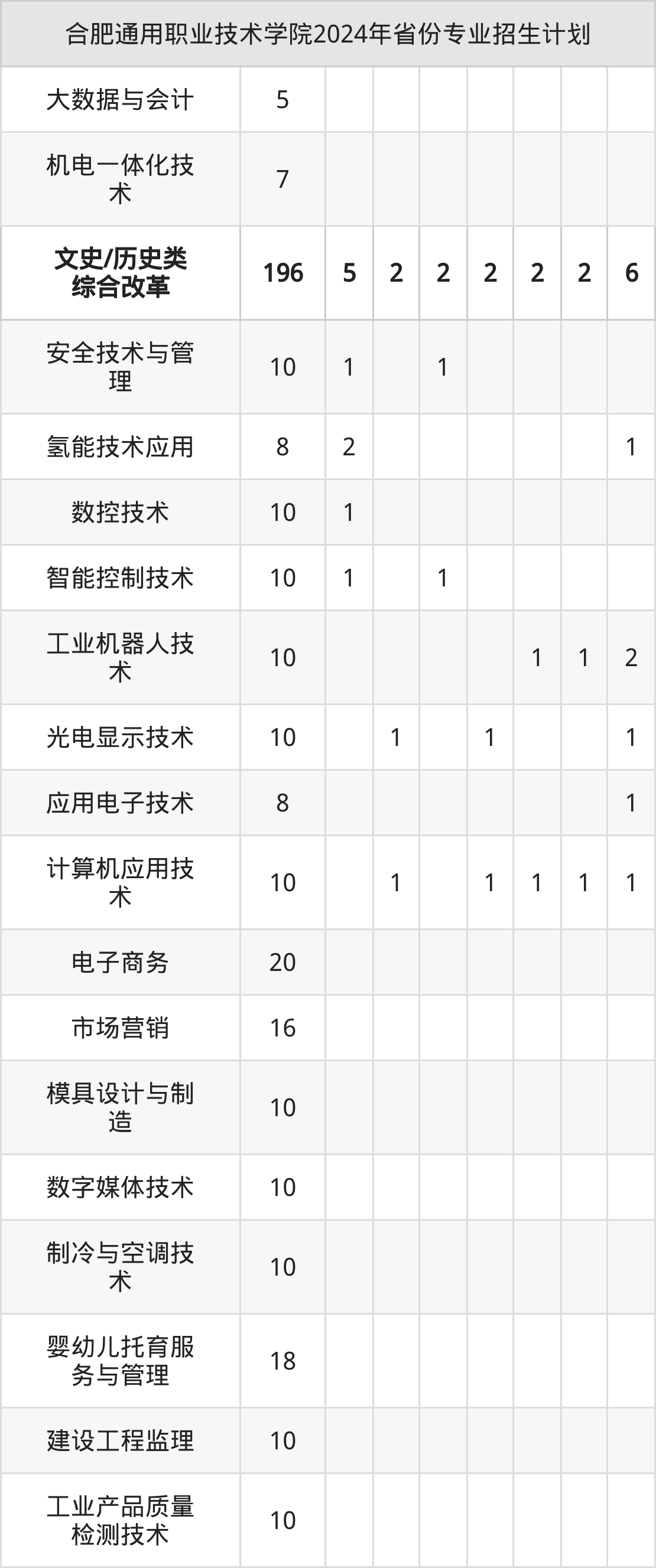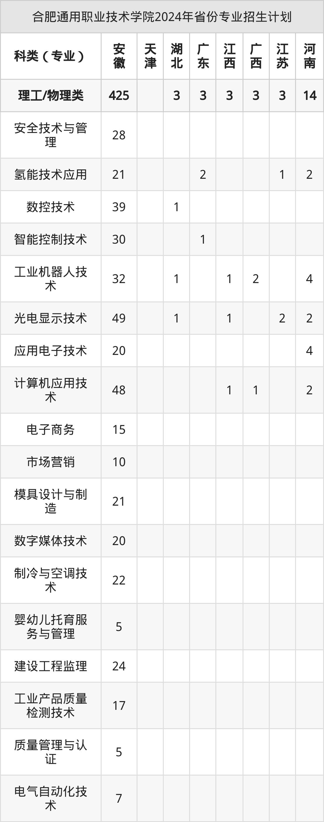 2025年合肥通用职业技术学院专科招生计划待公布,下面附上2024年数据,暂供参考: