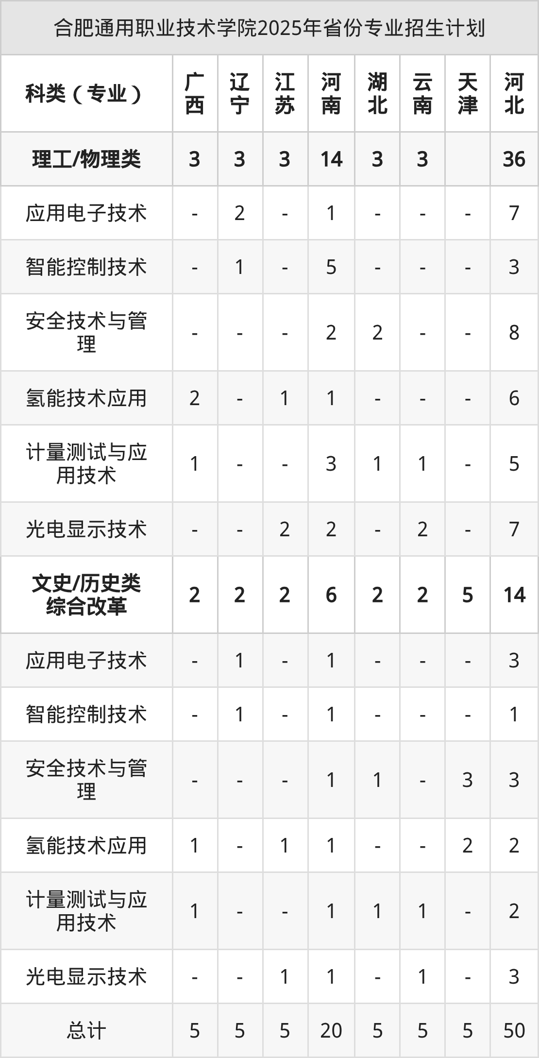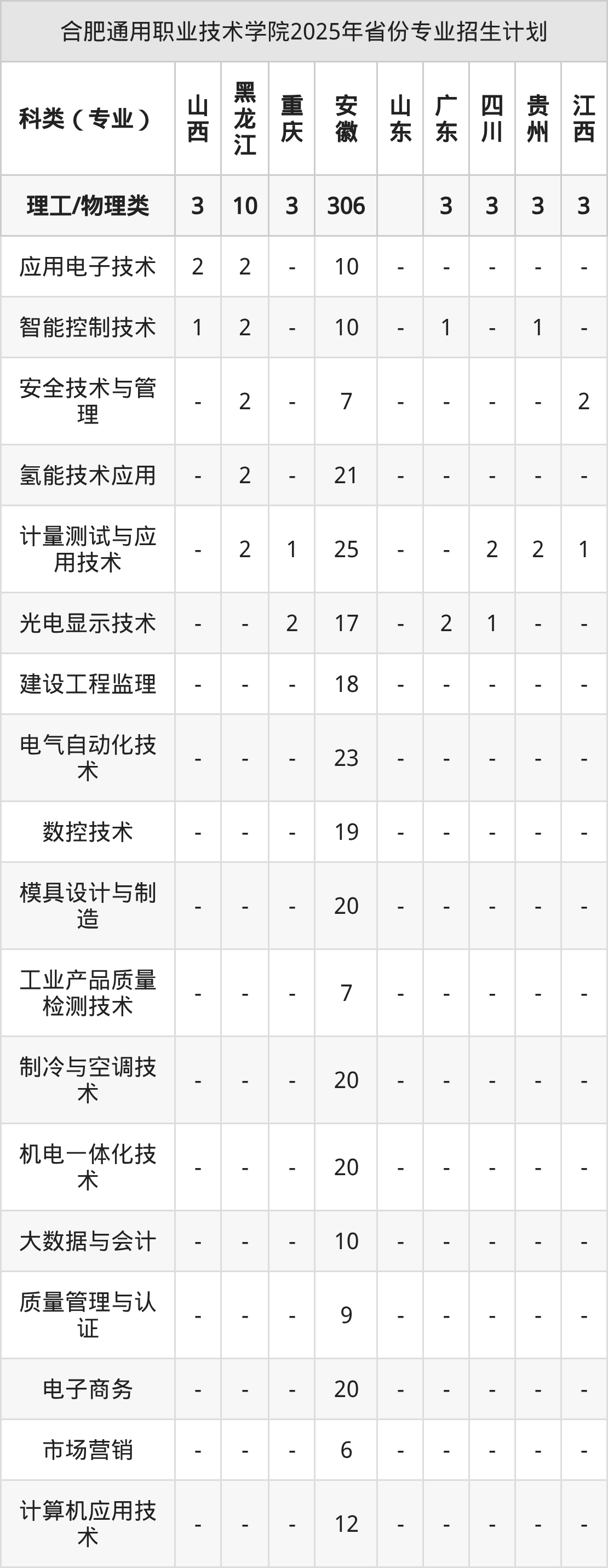 2026年合肥通用职业技术学院专科招生计划待公布,下面附上2025年数据,暂供参考: