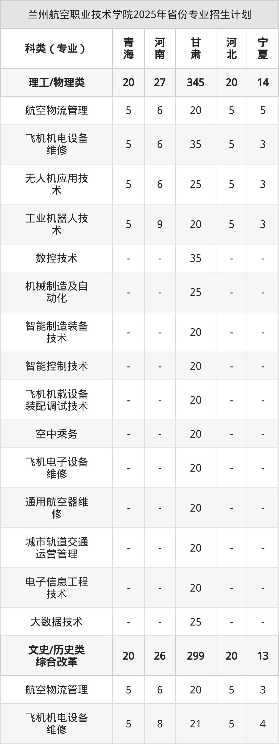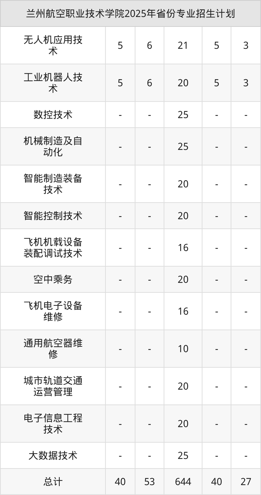 2026年兰州航空职业技术学院专科招生计划待公布,下面附上2025年数据,暂供参考: