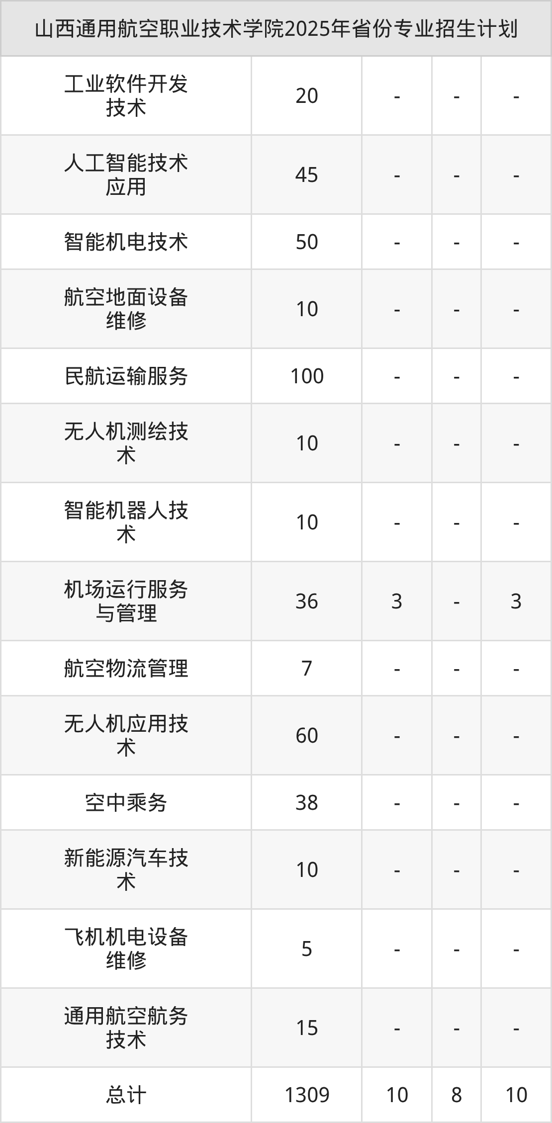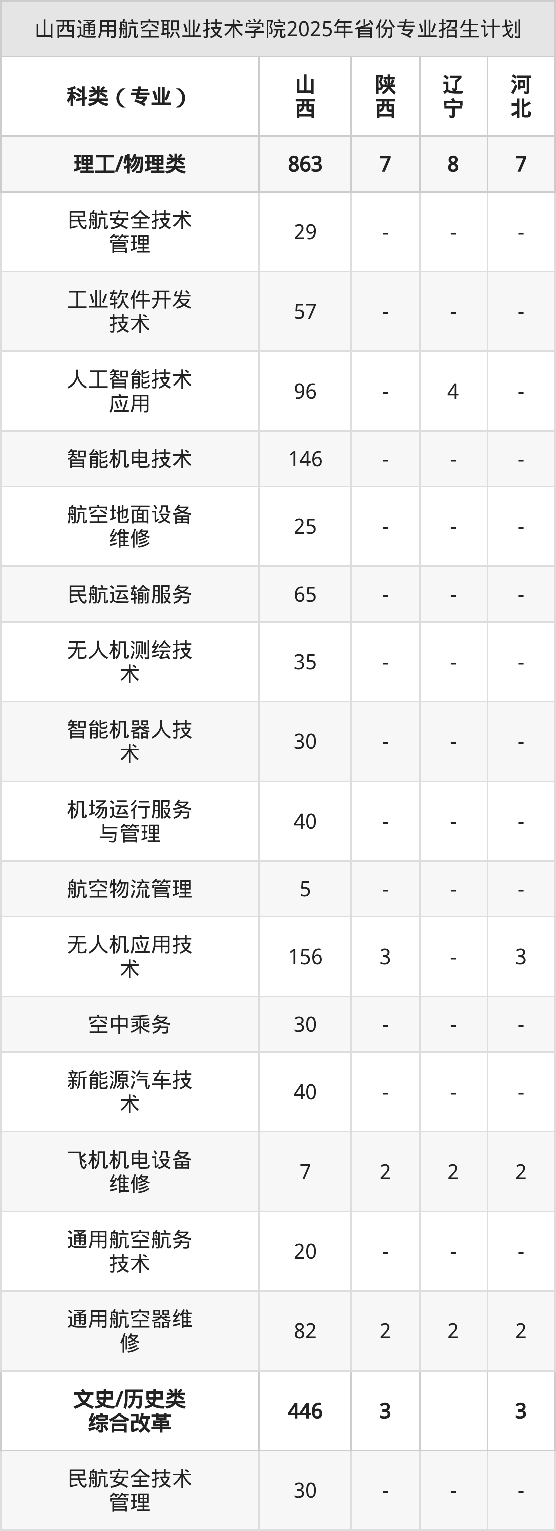 2026年山西通用航空职业技术学院专科招生计划待公布,下面附上2025年数据,暂供参考: