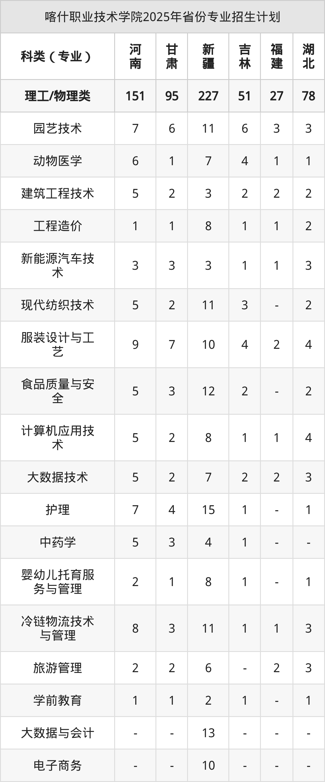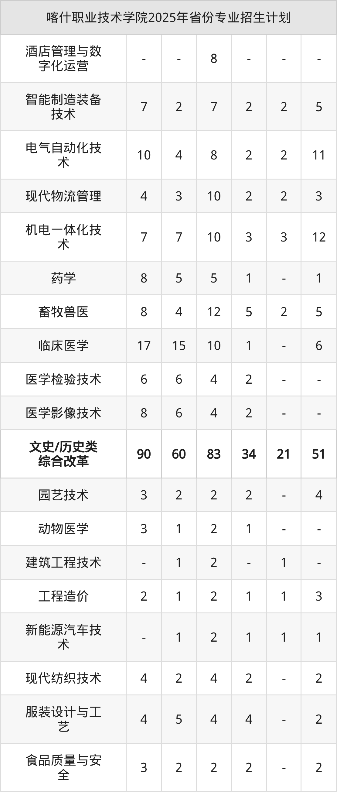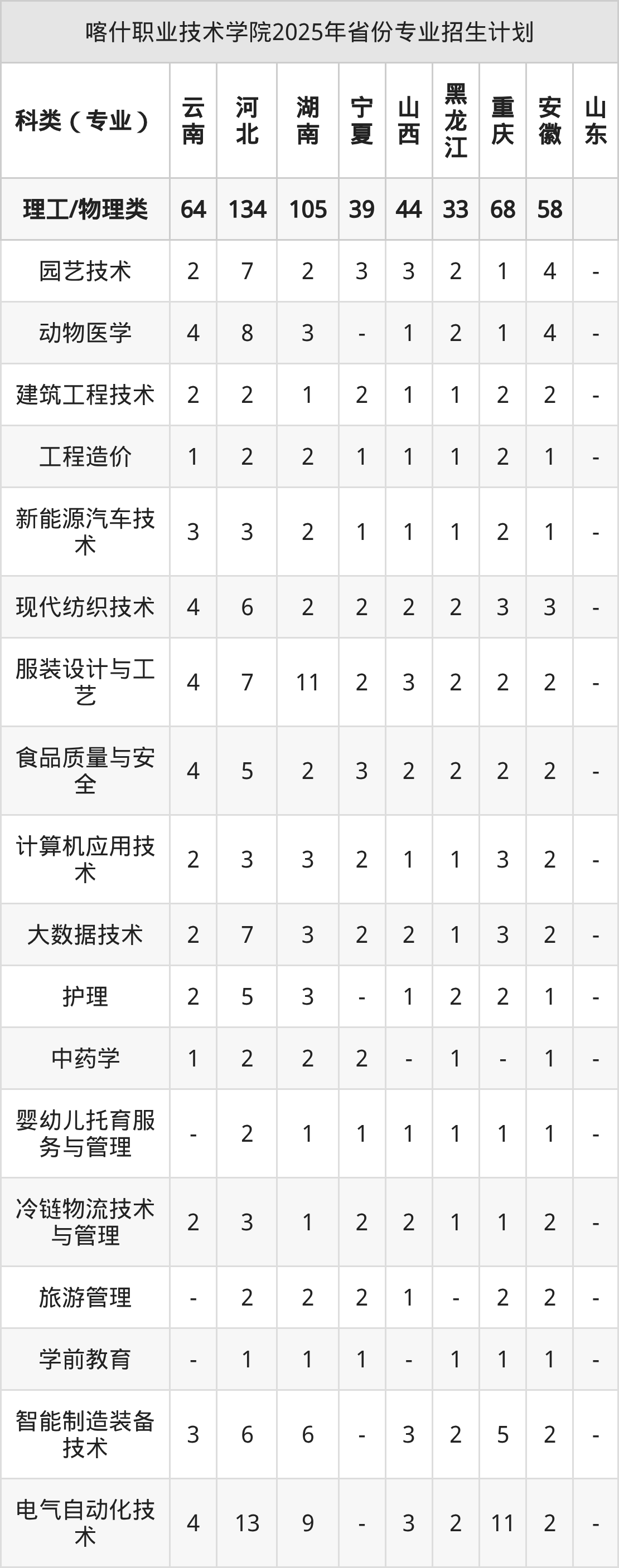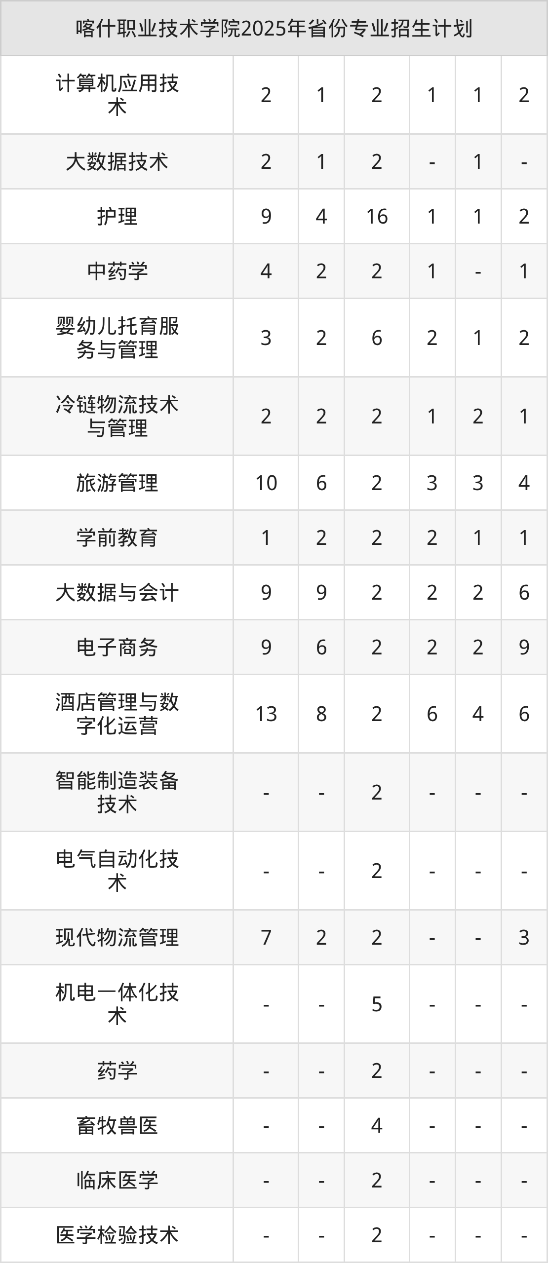 2026年喀什职业技术学院专科招生计划待公布,下面附上2025年数据,暂供参考: