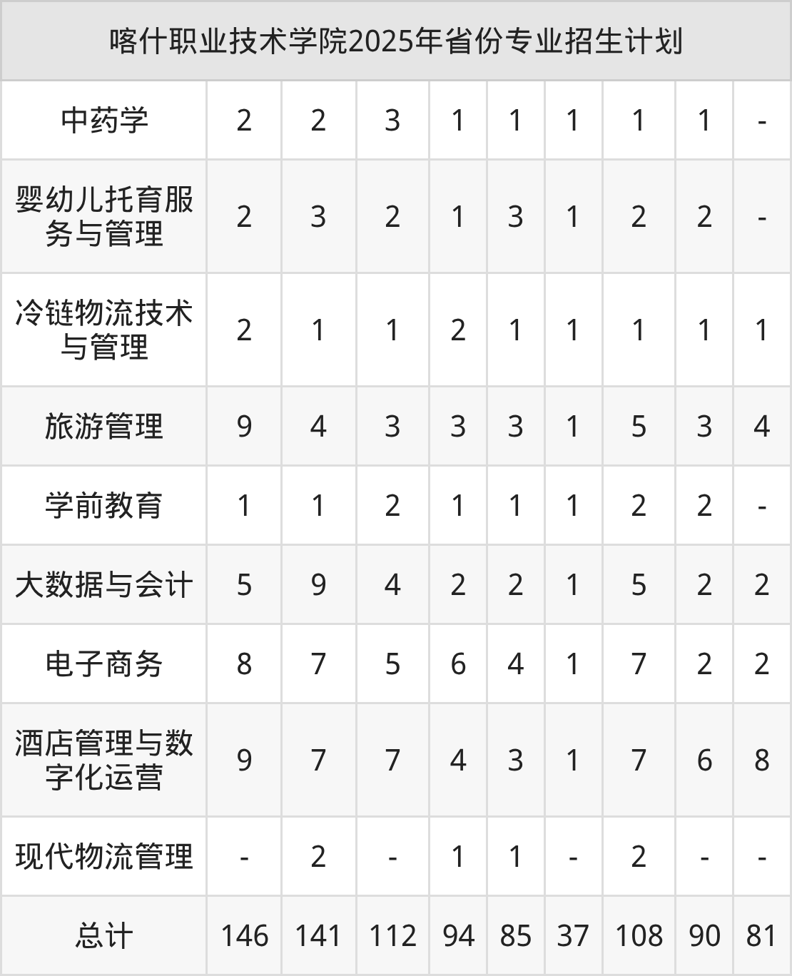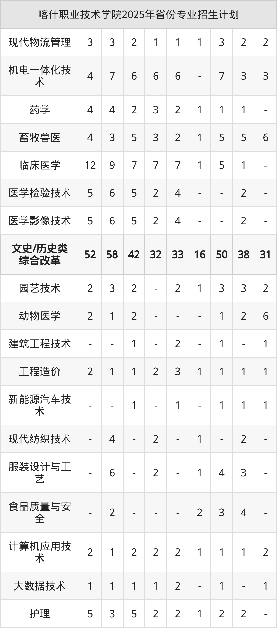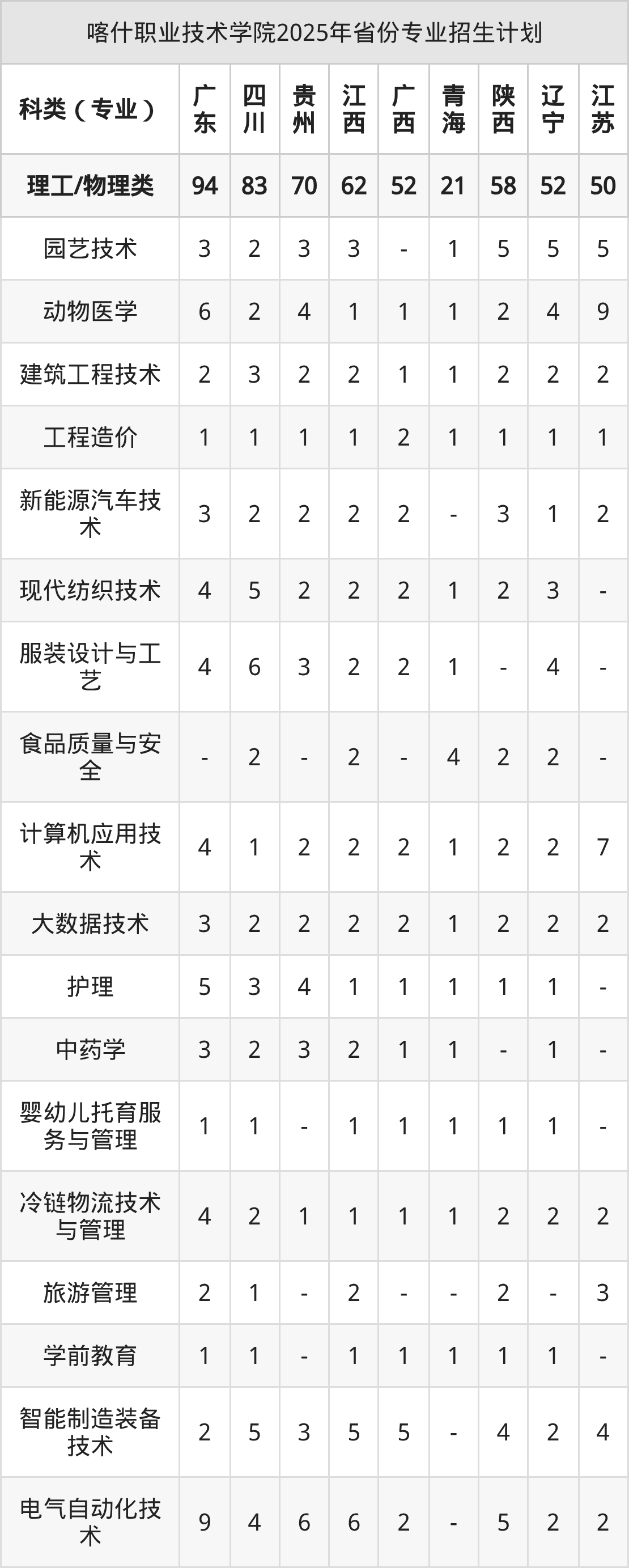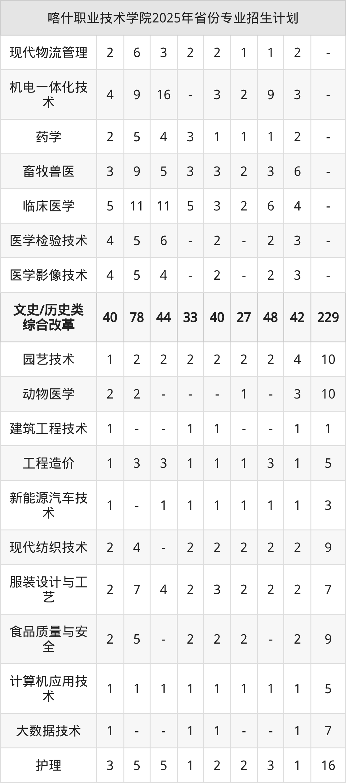 2026年喀什职业技术学院专科招生计划待公布,下面附上2025年数据,暂供参考: