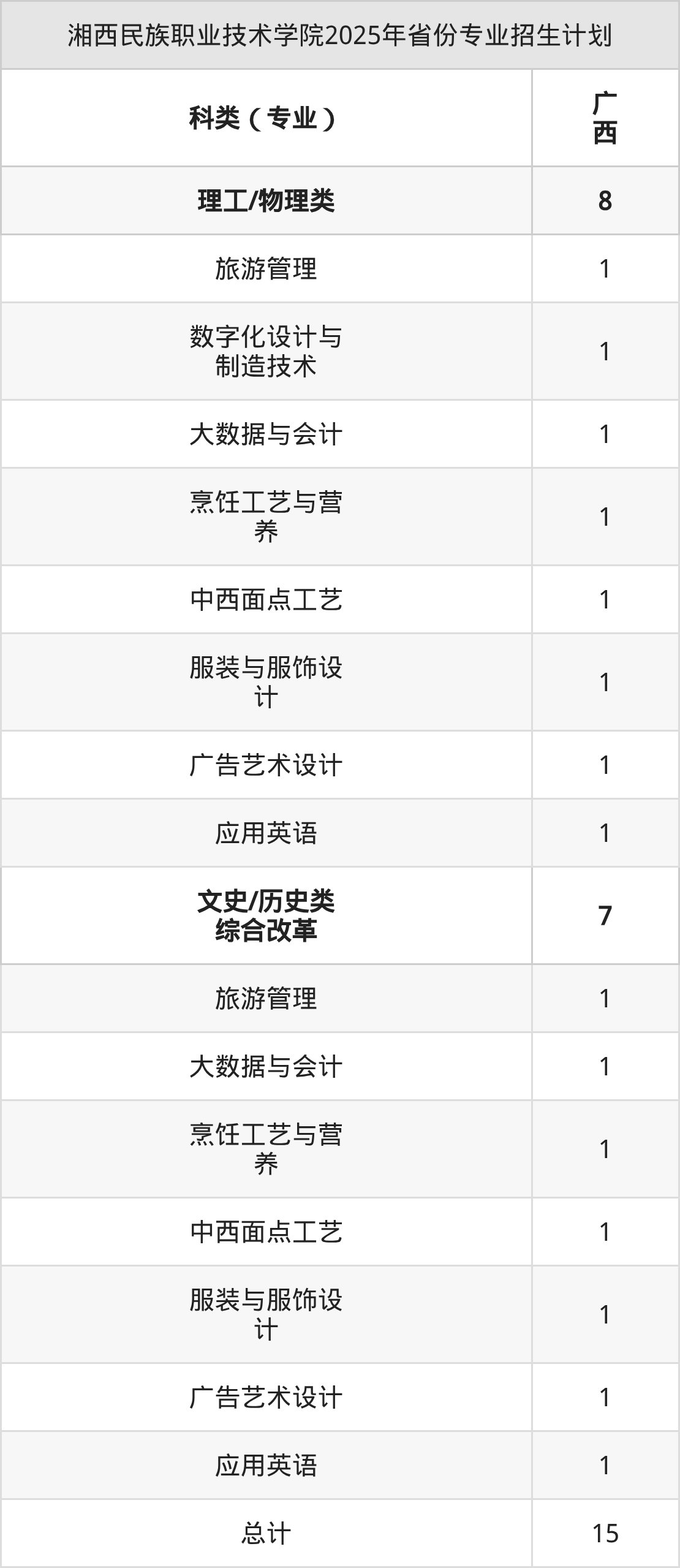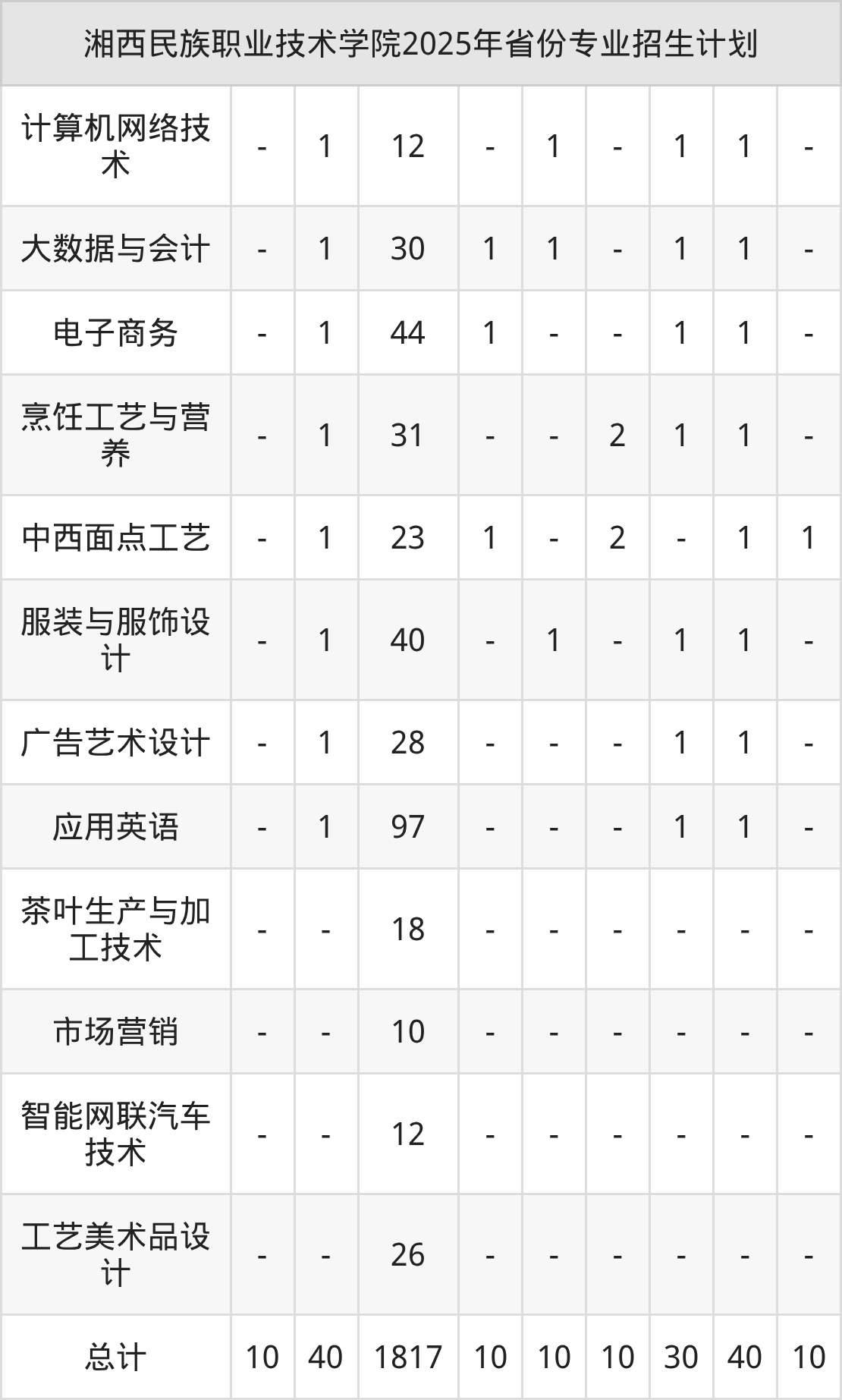 2026年湘西民族职业技术学院专科招生计划待公布,下面附上2025年数据,暂供参考: