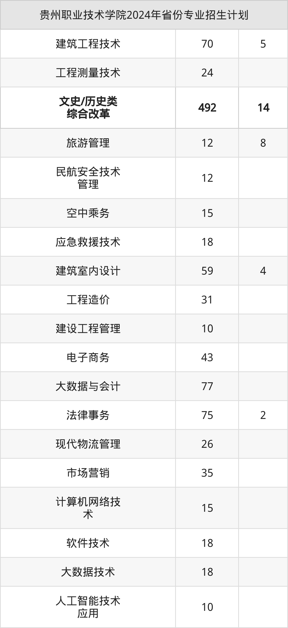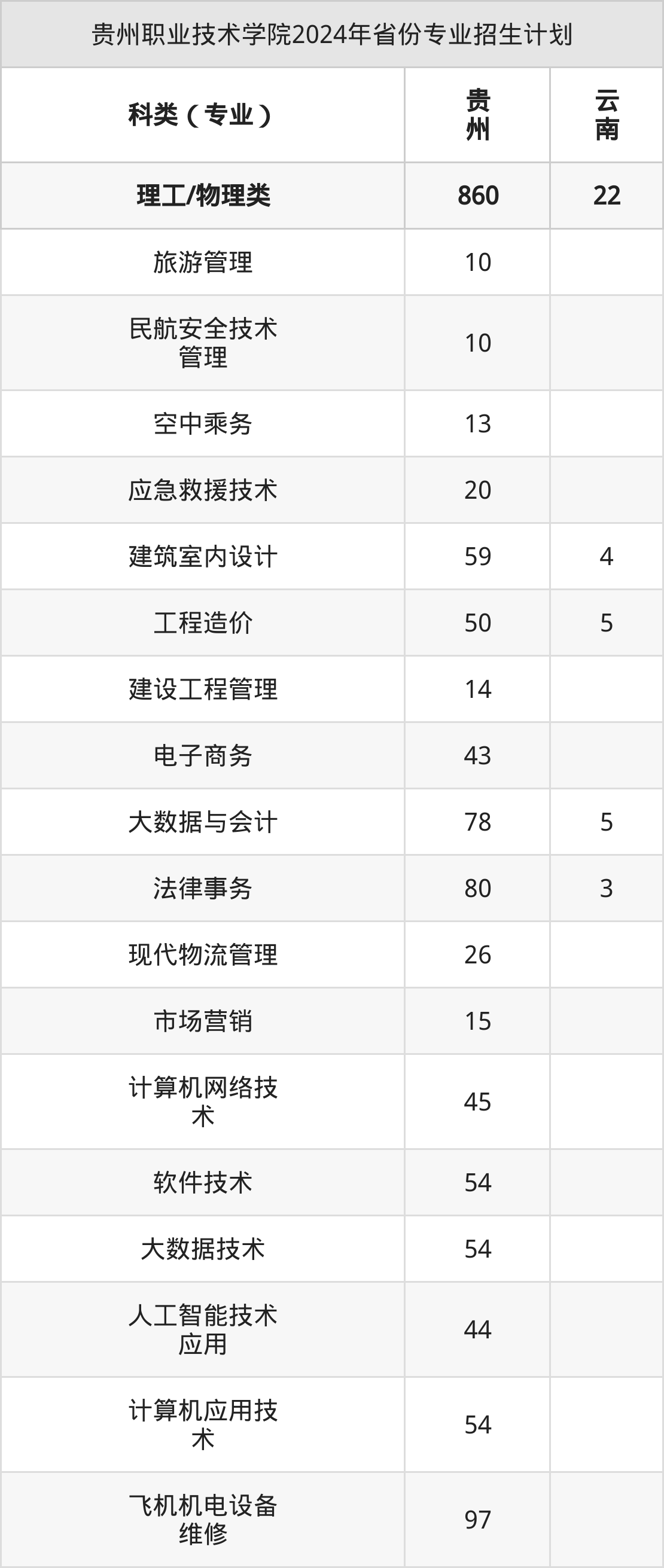 2025年贵州职业技术学院专科招生计划待公布,下面附上2024年数据,暂供参考: