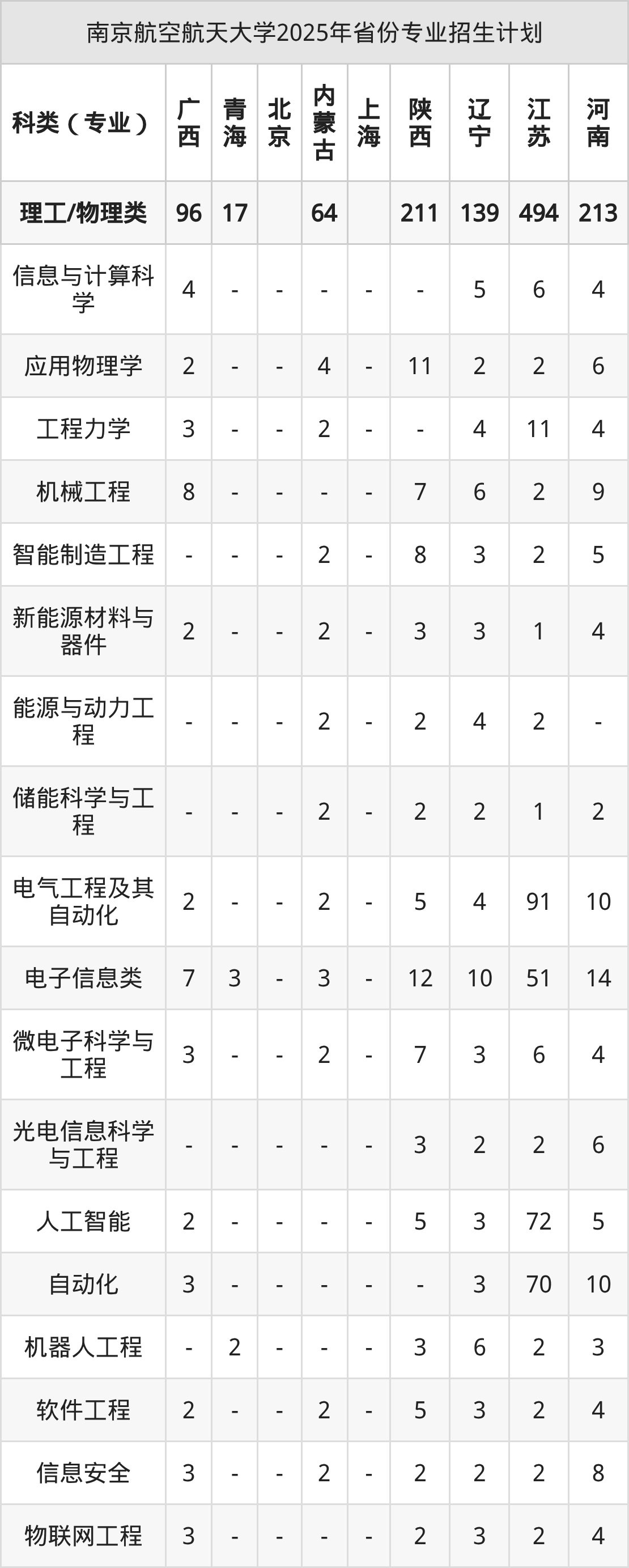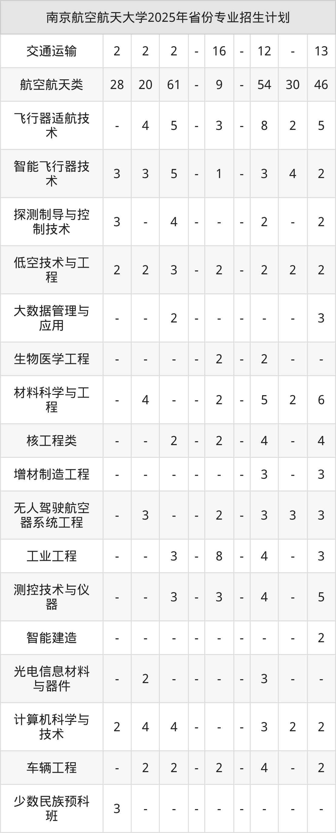 2026年南京航空航天大学本科招生计划待公布,下面附上2025年数据,暂供参考: