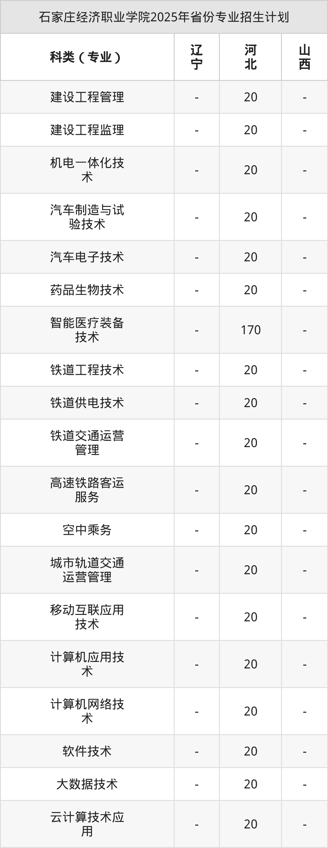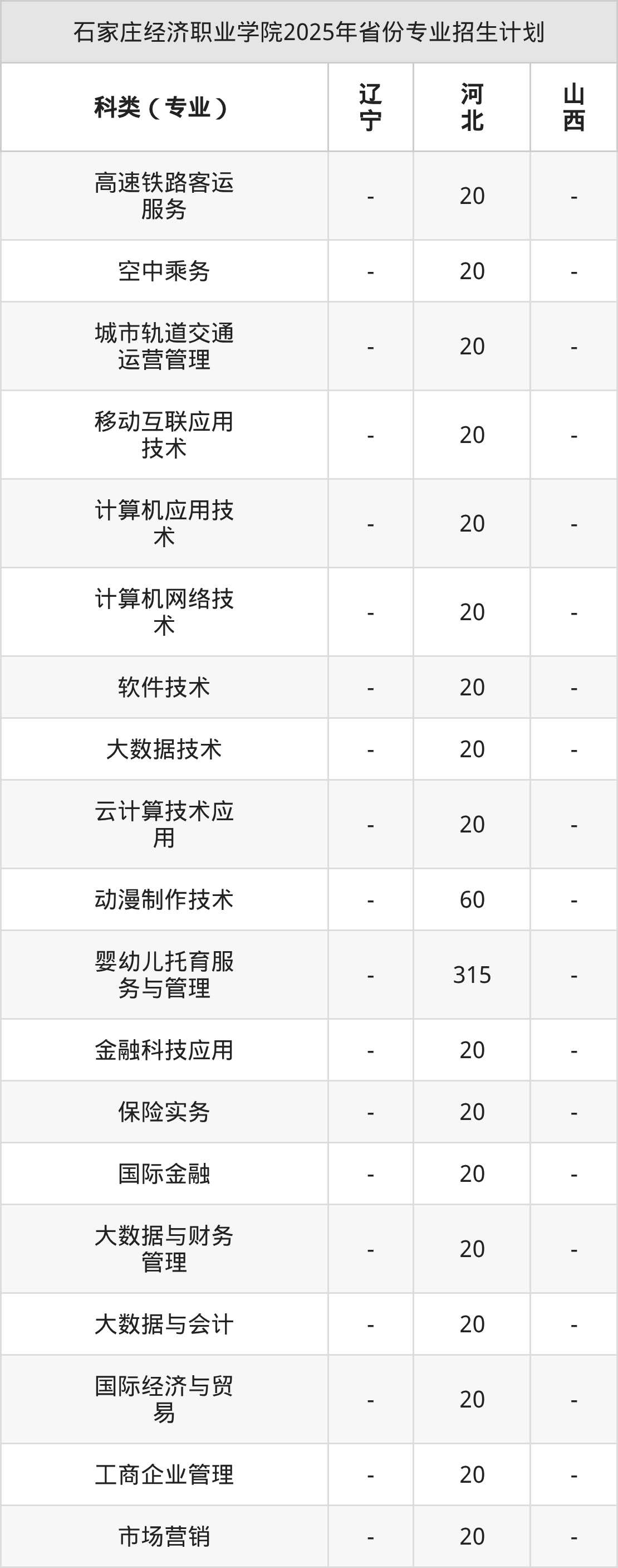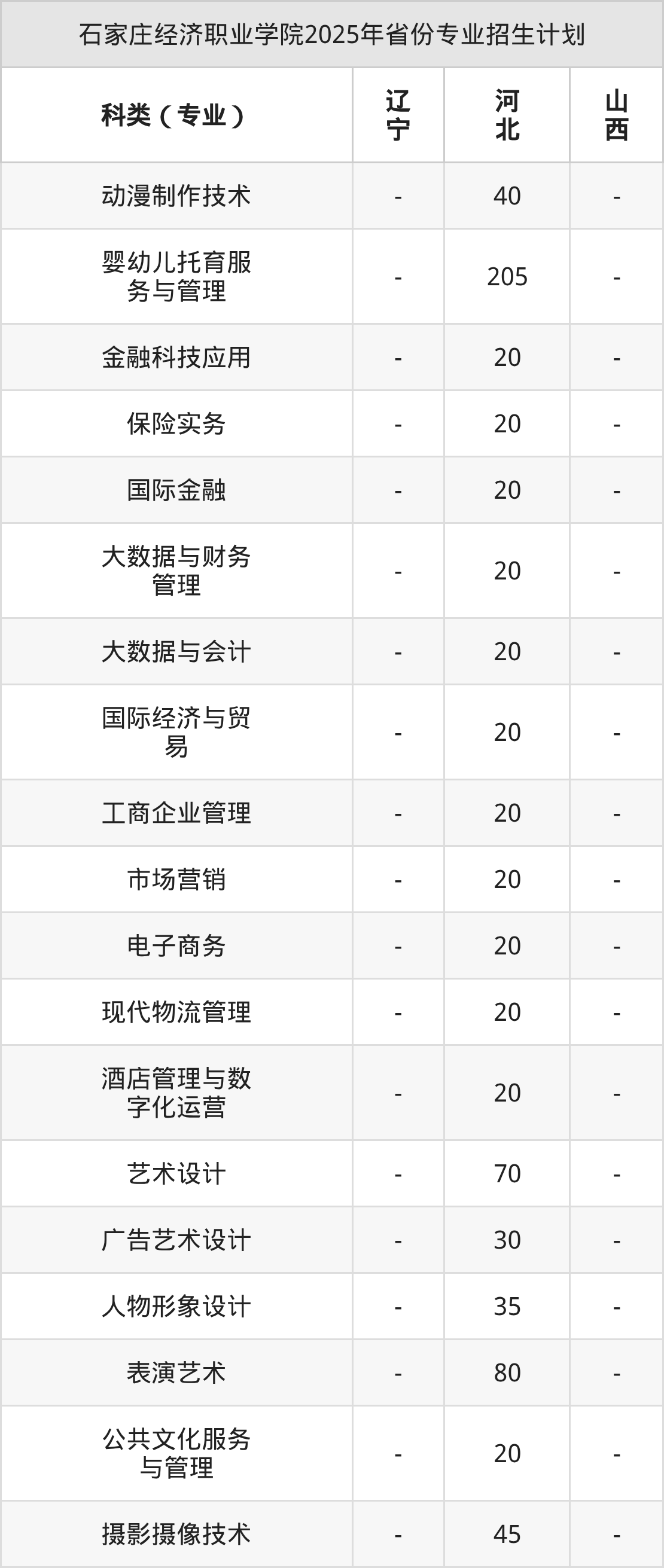 2026年石家庄经济职业学院专科招生计划待公布,下面附上2025年数据,暂供参考: