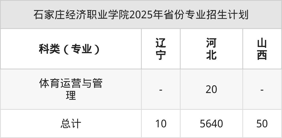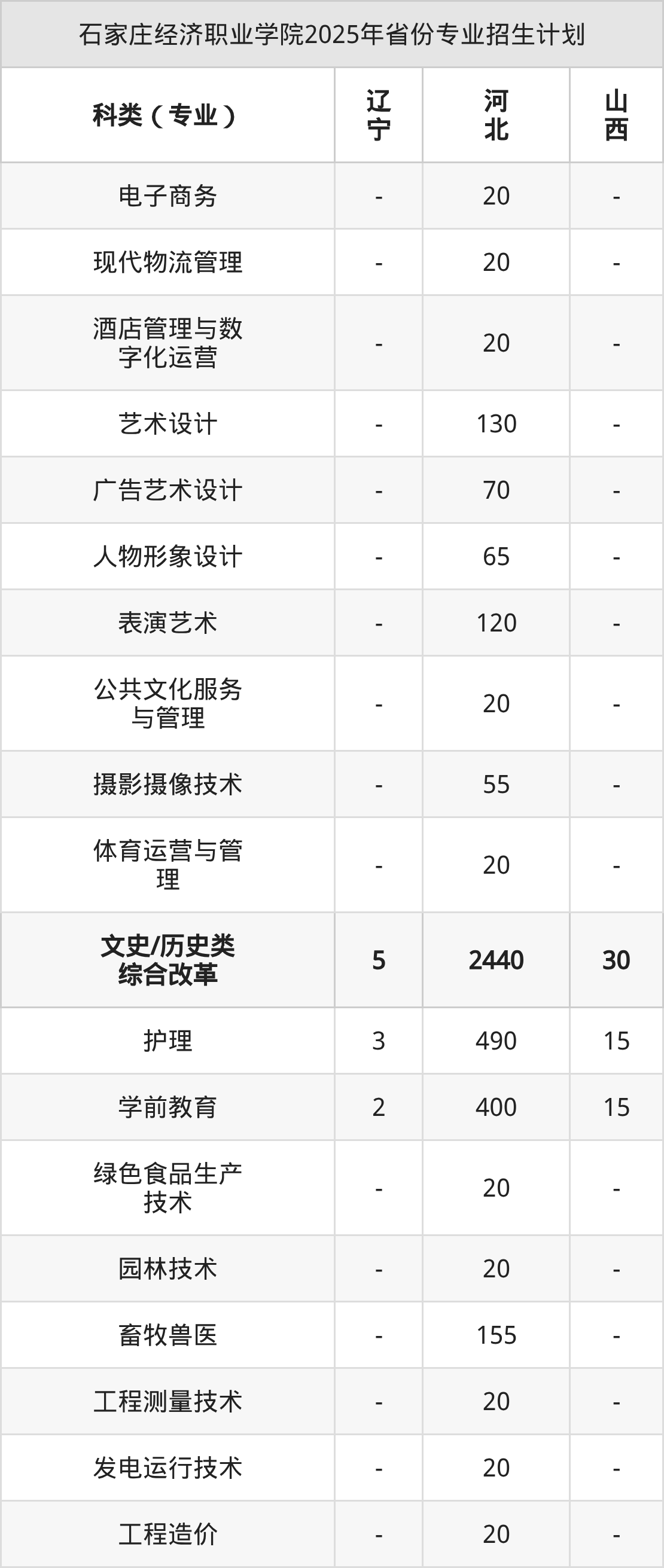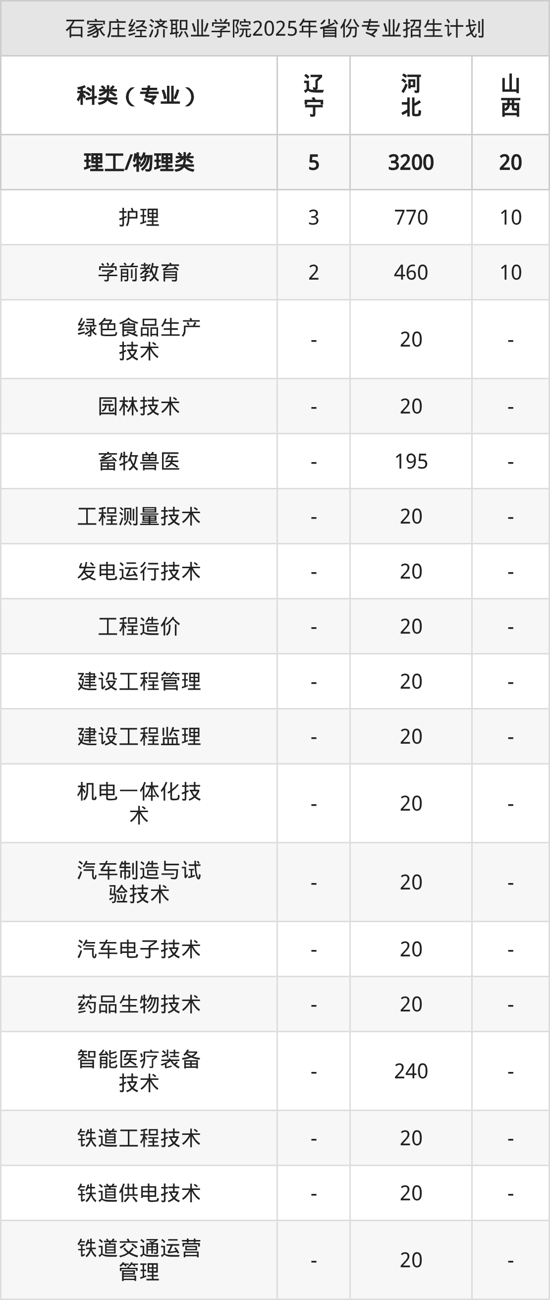 2026年石家庄经济职业学院专科招生计划待公布,下面附上2025年数据,暂供参考: