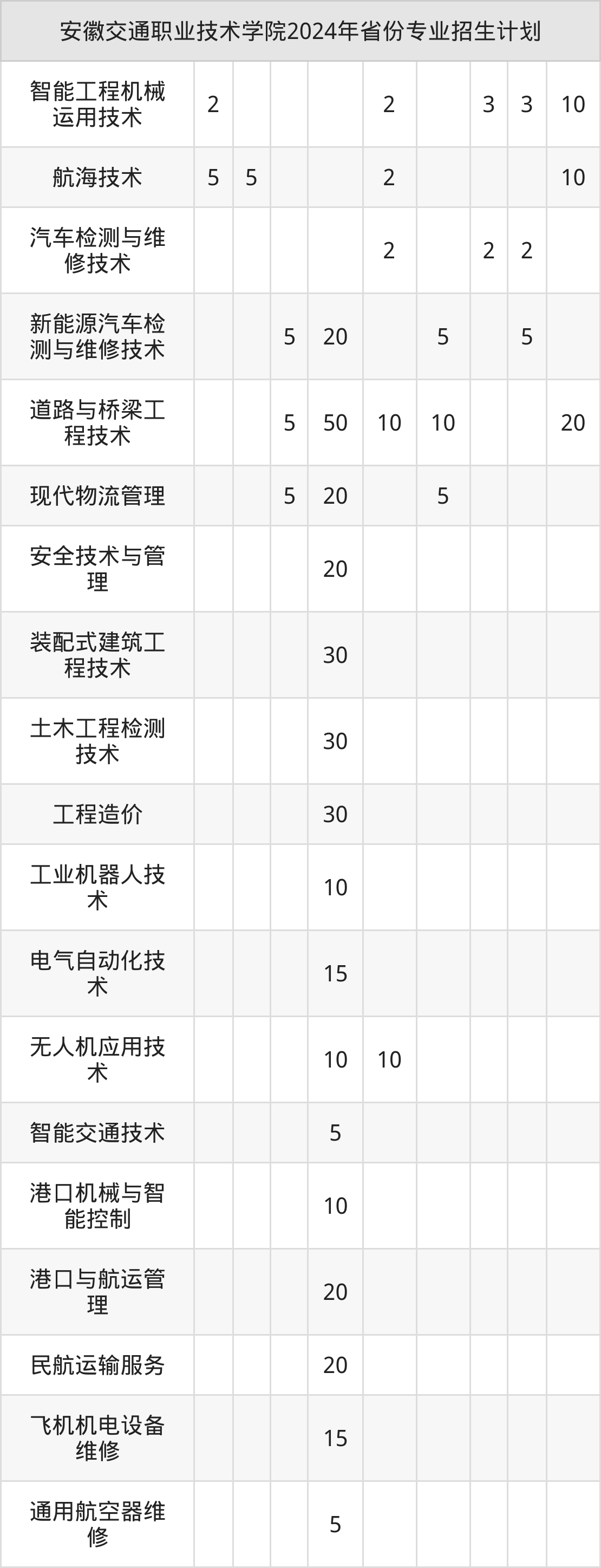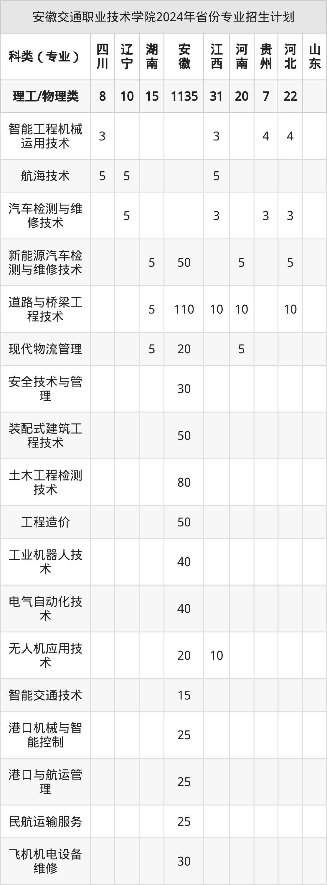 2025年安徽交通职业技术学院专科招生计划待公布,下面附上2024年数据,暂供参考: