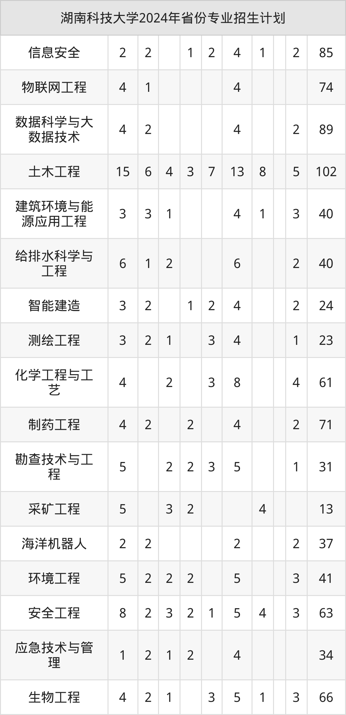 2025年湖南科技大学本科招生计划待公布,下面附上2024年数据,暂供参考: