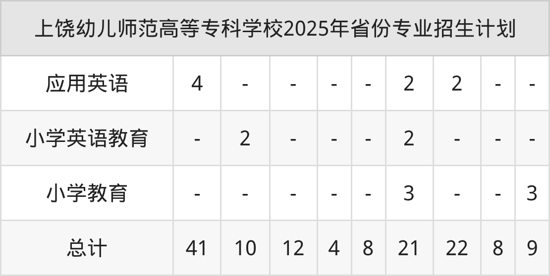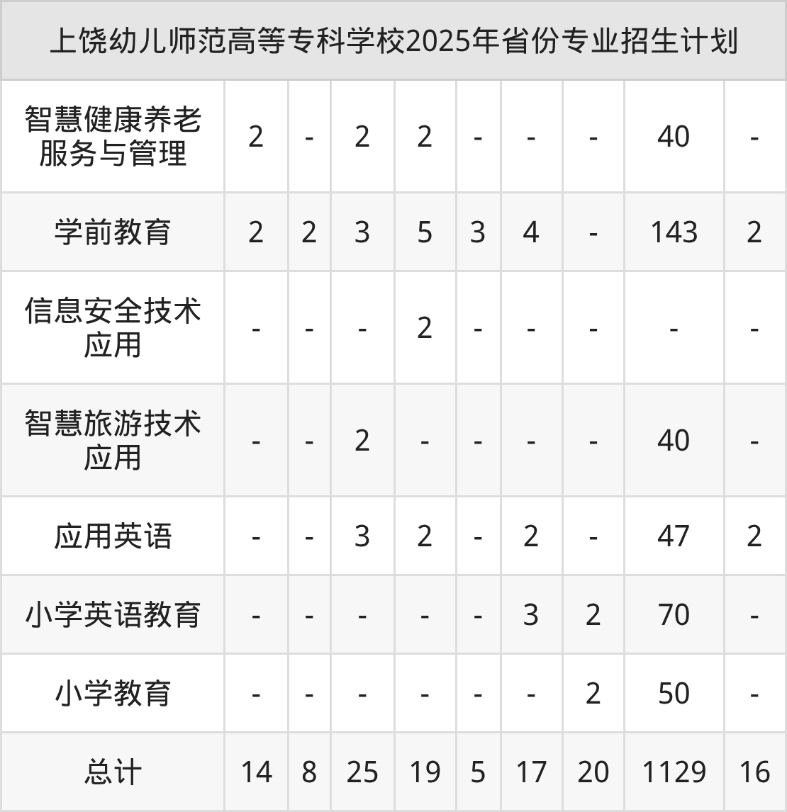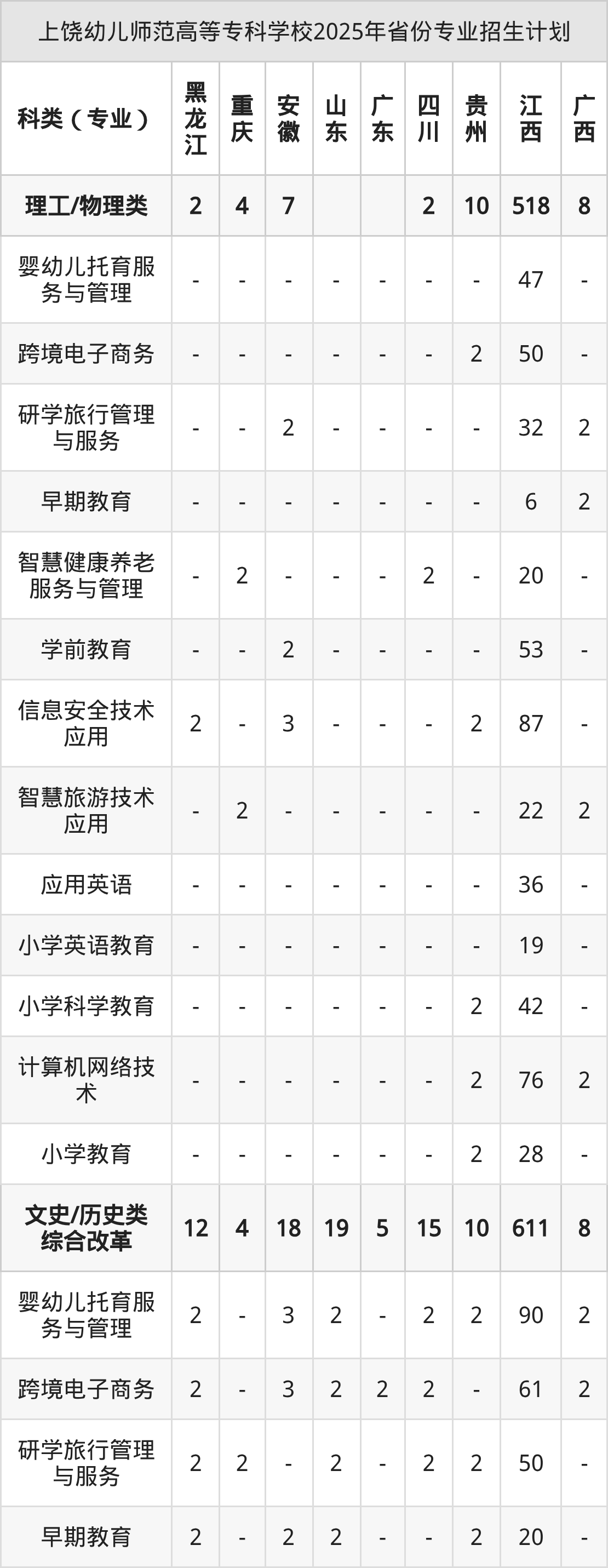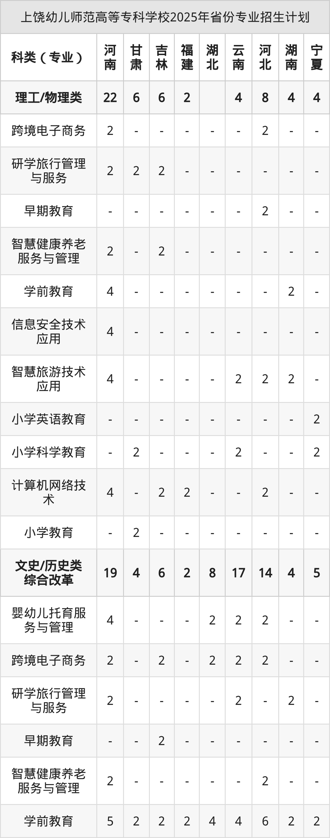 2026年上饶幼儿师范高等专科学校专科招生计划待公布,下面附上2025年数据,暂供参考: