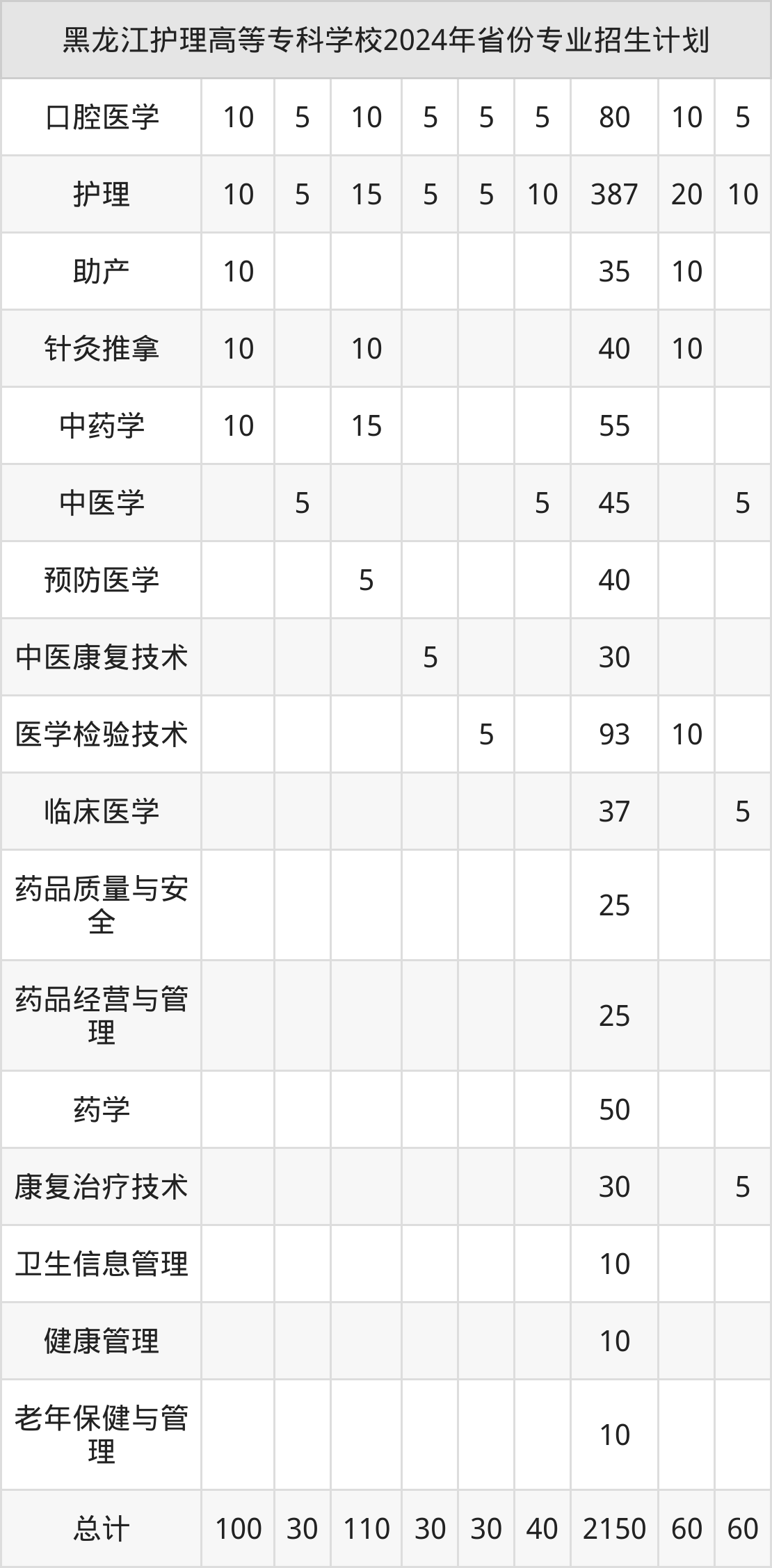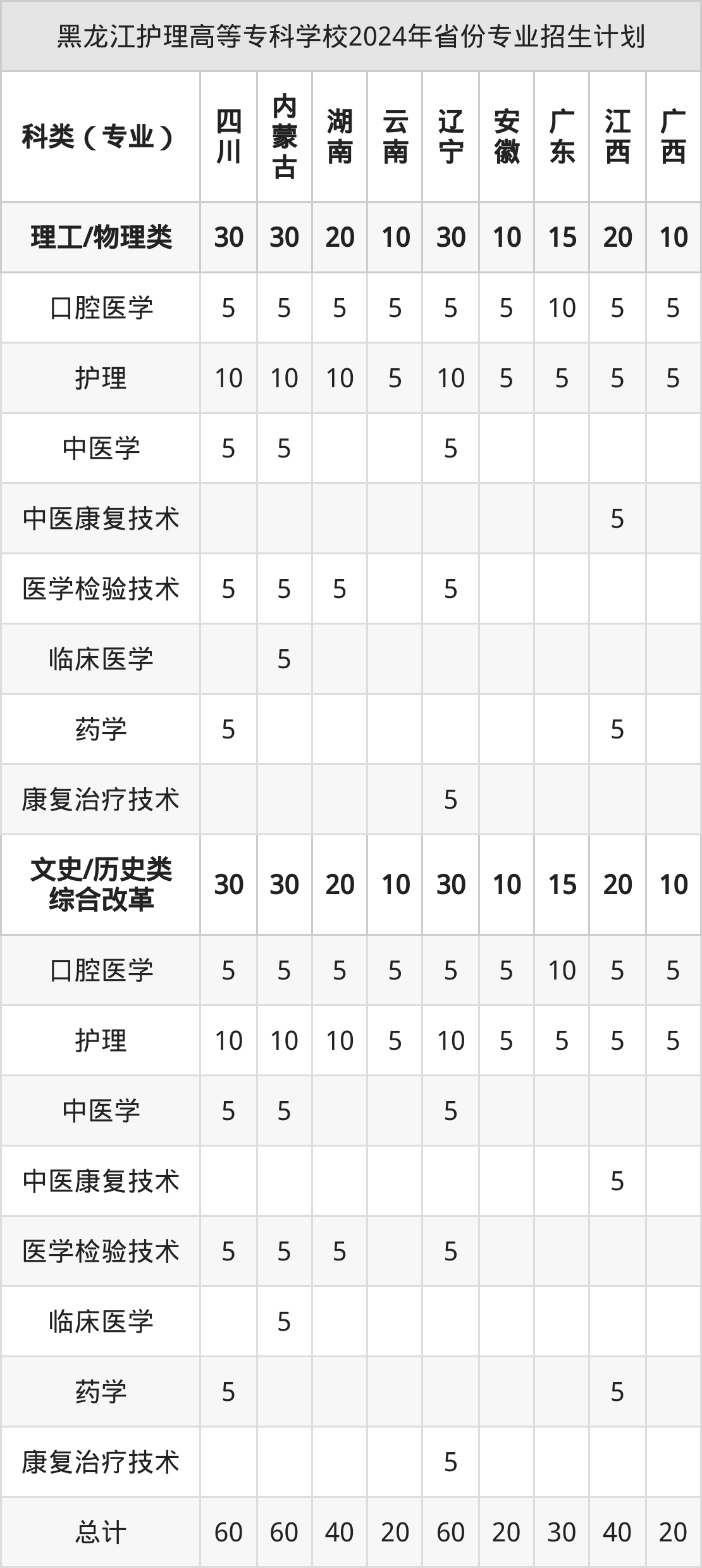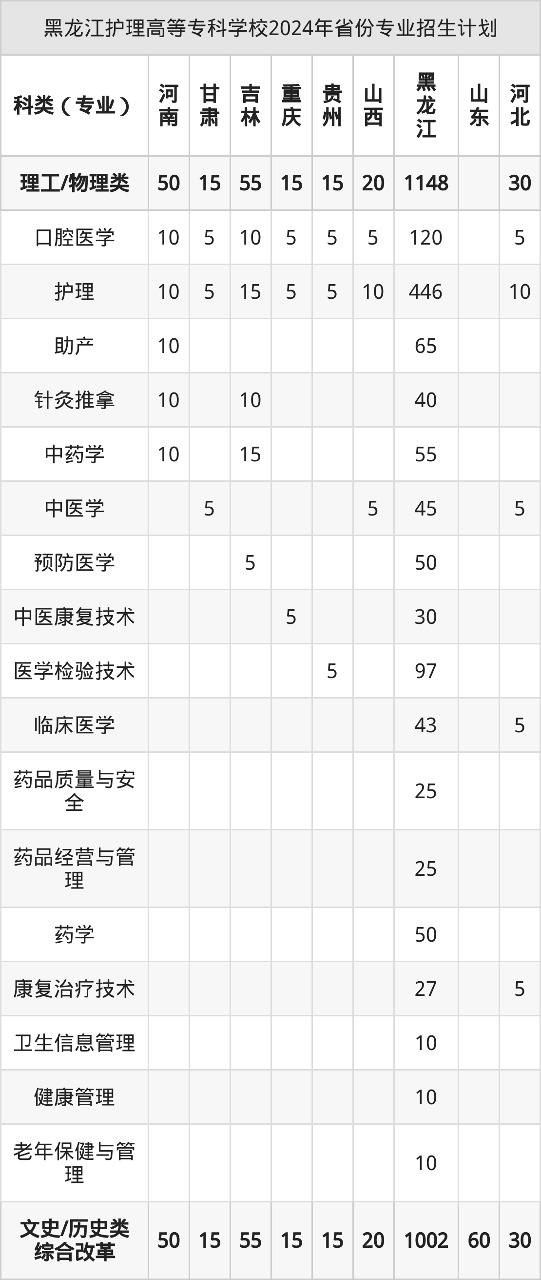 2025年黑龙江护理高等专科学校专科招生计划待公布,下面附上2024年数据,暂供参考: