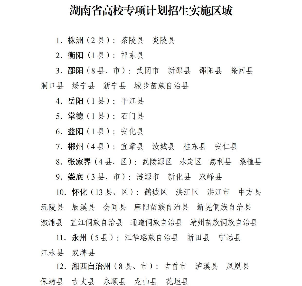 按照相关规定,湖南省实施高校专项计划的区域为51 个县(市、区)。
