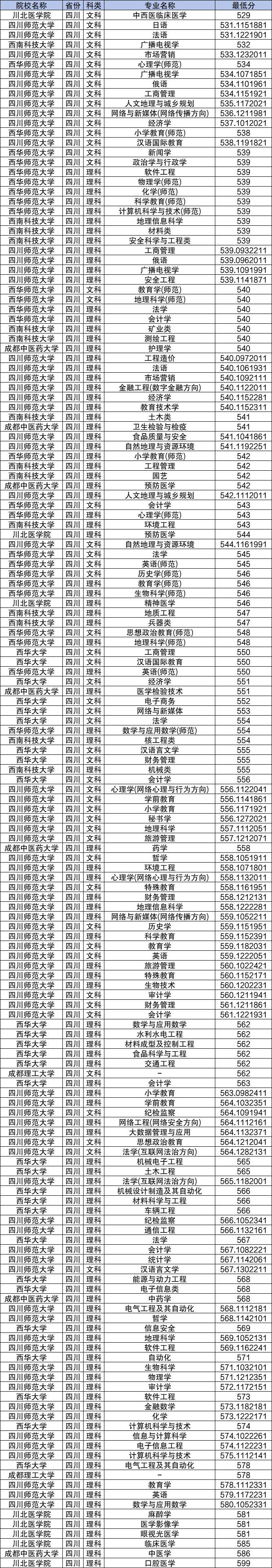下面是2024年四川地方专项计划录取分数线一览表: