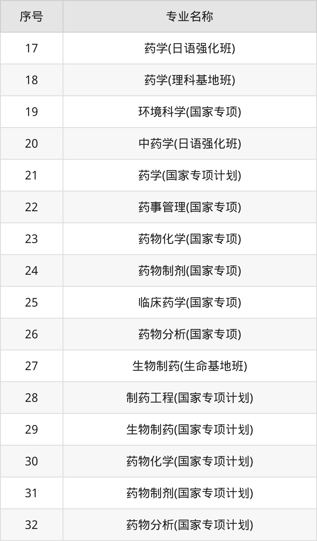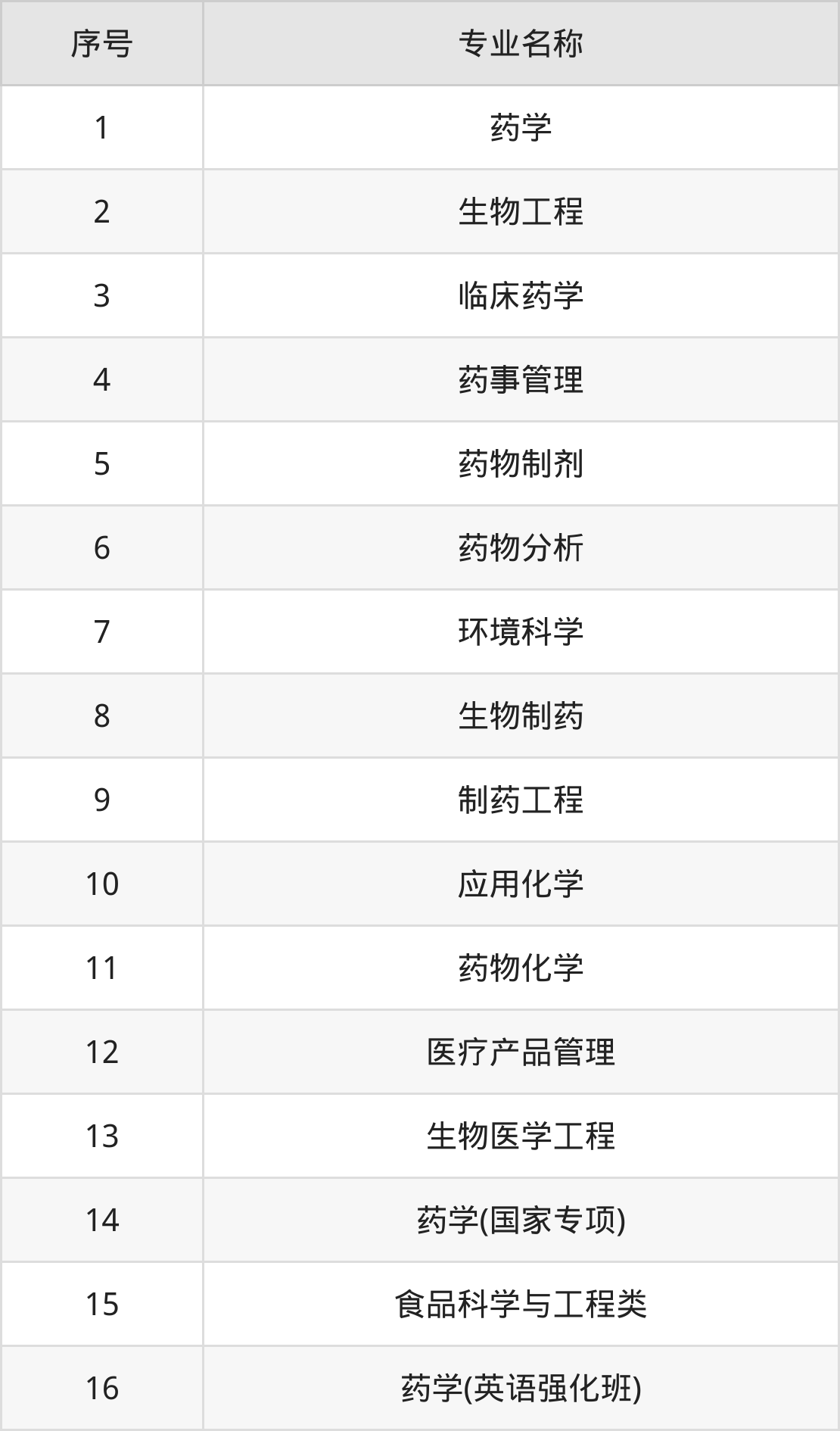 物理类(理科)本科招生专业:药学、临床药学、药物制剂、药物分析、药事管理、制药工程、应用化学、药物化学、生物工程、环境科学等。