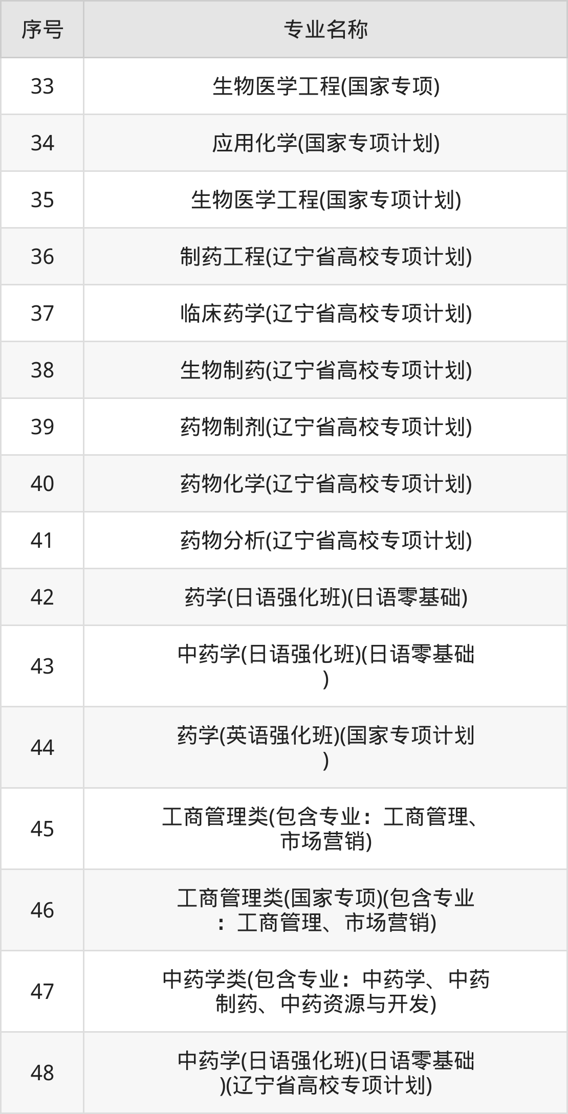 目前,沈阳药科大学公布了2024年本科招生专业,共52个。