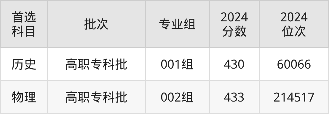 2024年合肥职业技术学院在安徽省内专科批的录取分数线都在430分以上,在历史类的录取分数线为430分;物理类的录取分数线为433分。
