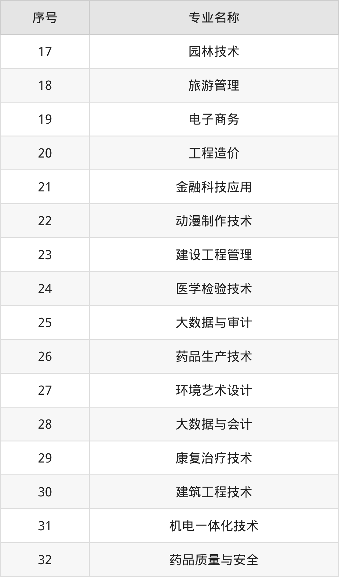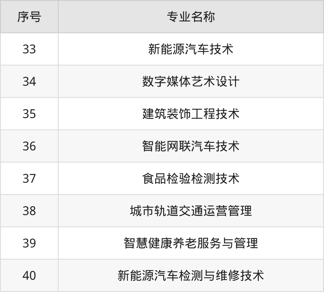 目前,合肥职业技术学院公布了2024年专科招生专业,共40个。
