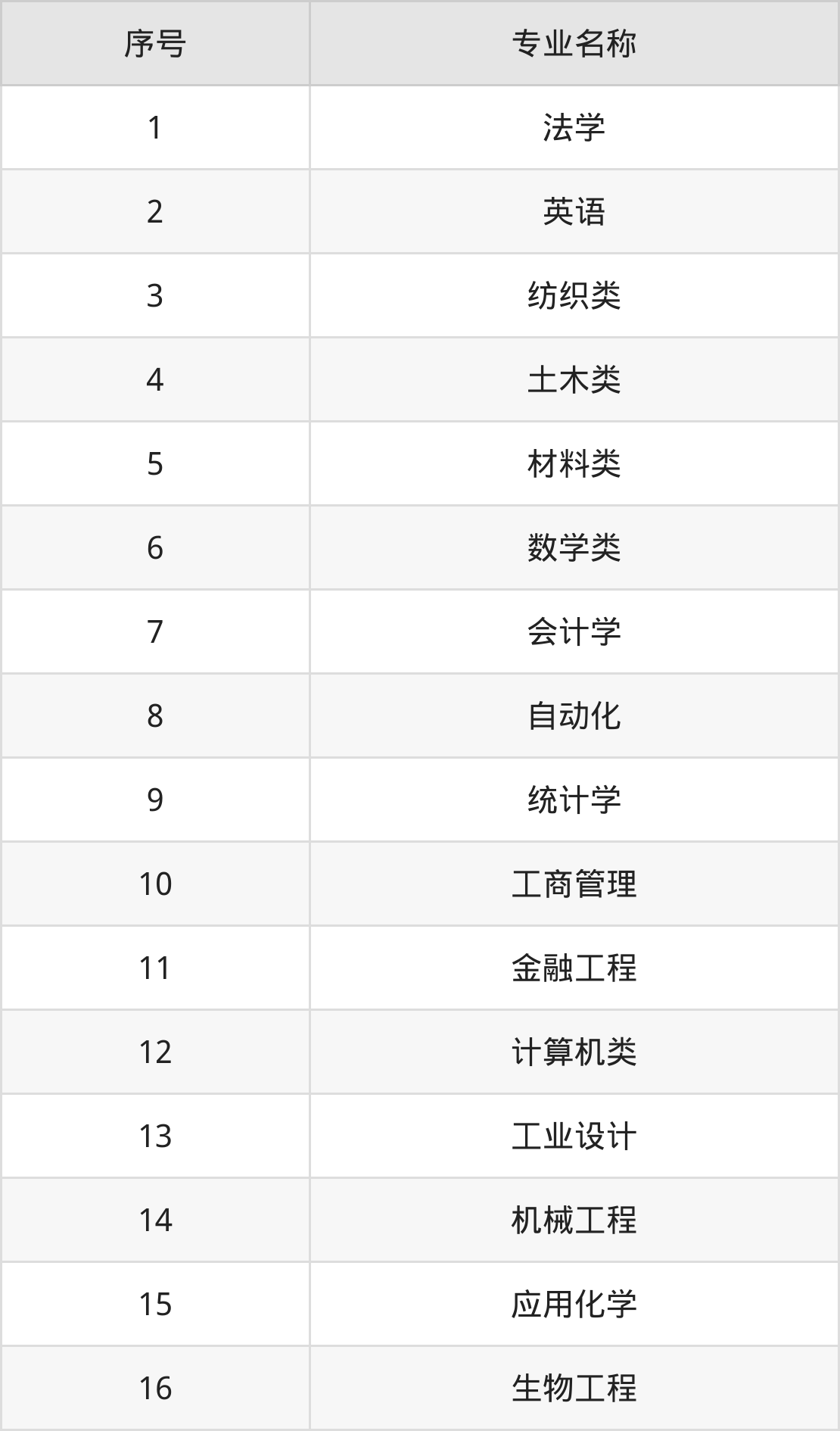 物理类(理科)本科招生专业:材料类、自动化、纺织类、统计学、会计学、数学类、土木类、工业设计、轻化工程、机械工程等。