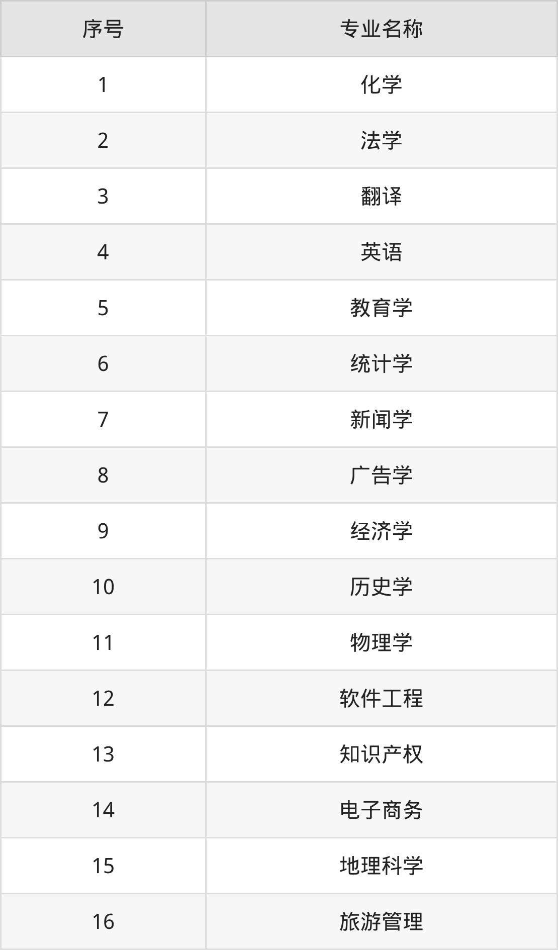 物理类(理科)本科招生专业:翻译、法学、物理学、广告学、新闻学、统计学、经济学、教育学、软件工程、商务英语等。