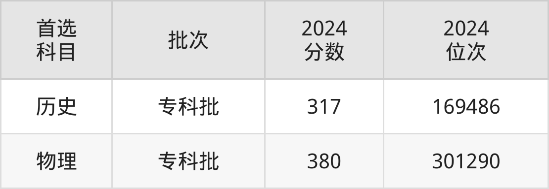 2024年沧州幼儿师范高等专科学校在河北省内专科批的录取分数线都在310分以上,在历史类的录取分数线为317分;物理类的录取分数线为380分。