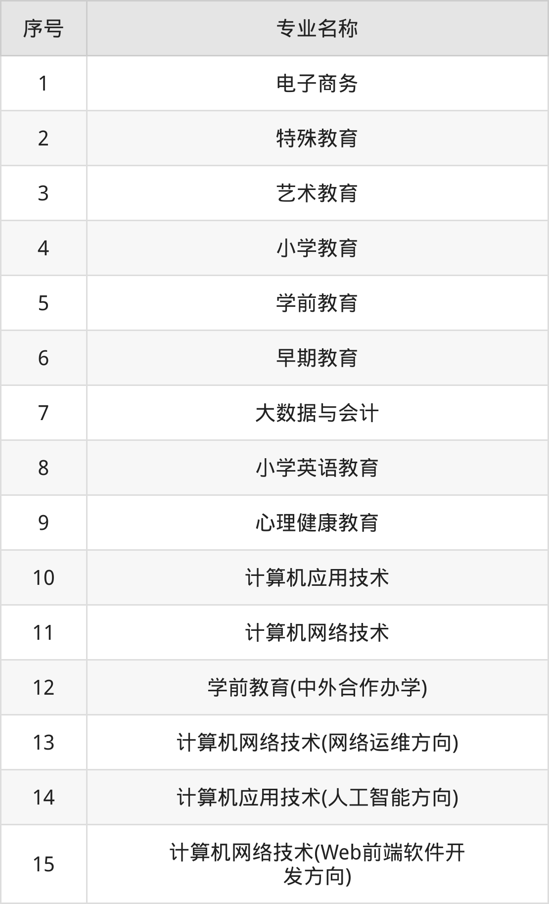 目前,沧州幼儿师范高等专科学校公布了2024年专科招生专业,共15个。