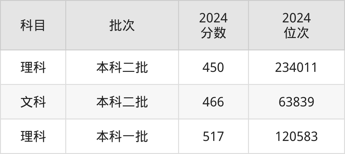 从2024年黄河科技学院在河南省内的录取分数线来看,本科批录取分数线都在450分以上,录取分数线最高的是理科,2024年最低分为517分;录取分数线最低的是理科,2024年最低分为450分。