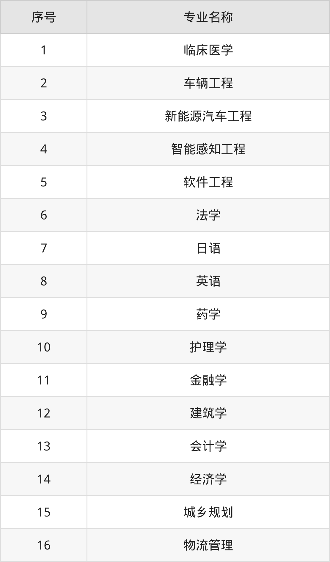 物理类(理科)本科招生专业:临床医学、车辆工程、新能源汽车工程、智能感知工程、软件工程、英语、药学、日语、法学、建筑学等。
