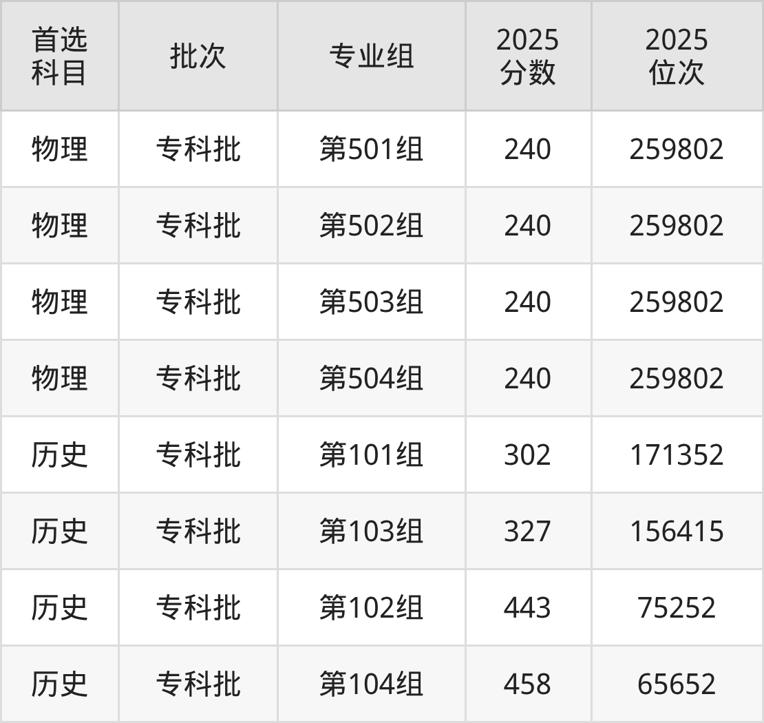 2025年株洲科技职业学院在江西省内专科批录取分数线都在240分以上,物理类整体录取分数线要低于历史类,具体详情见下文。