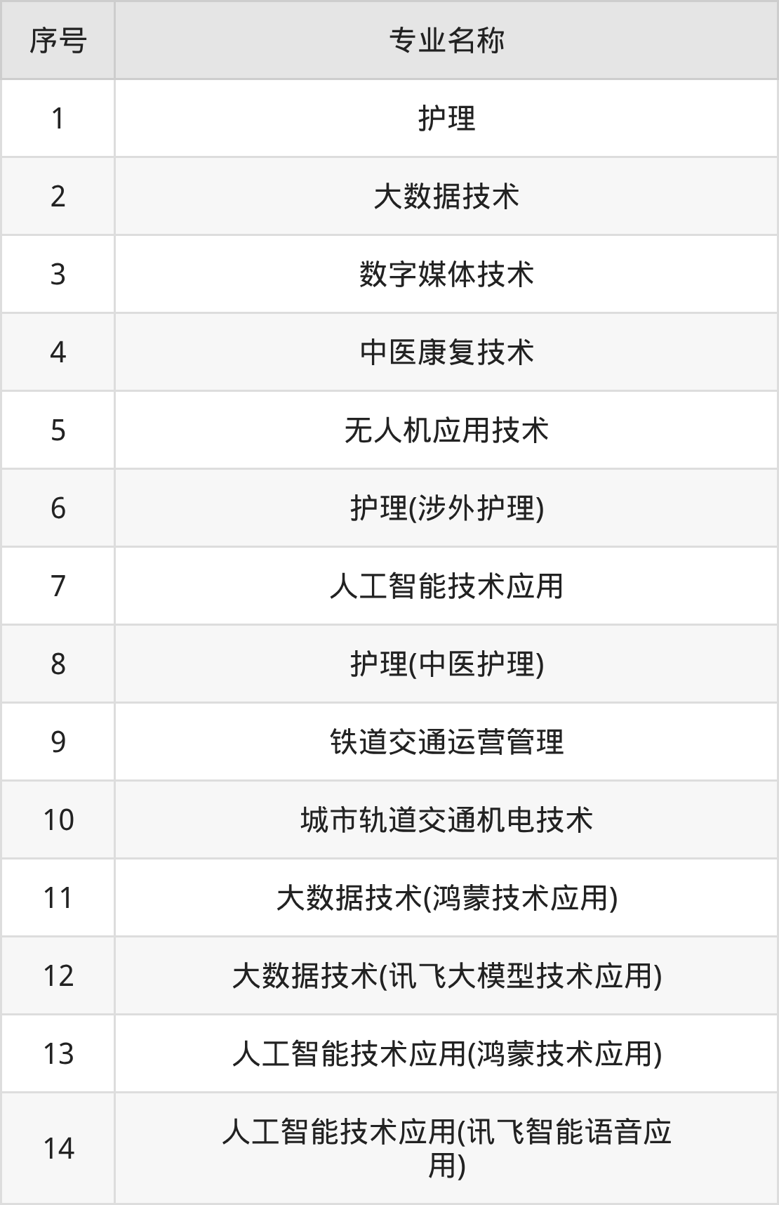 目前,株洲科技职业学院公布了2025年专科招生专业,共14个。