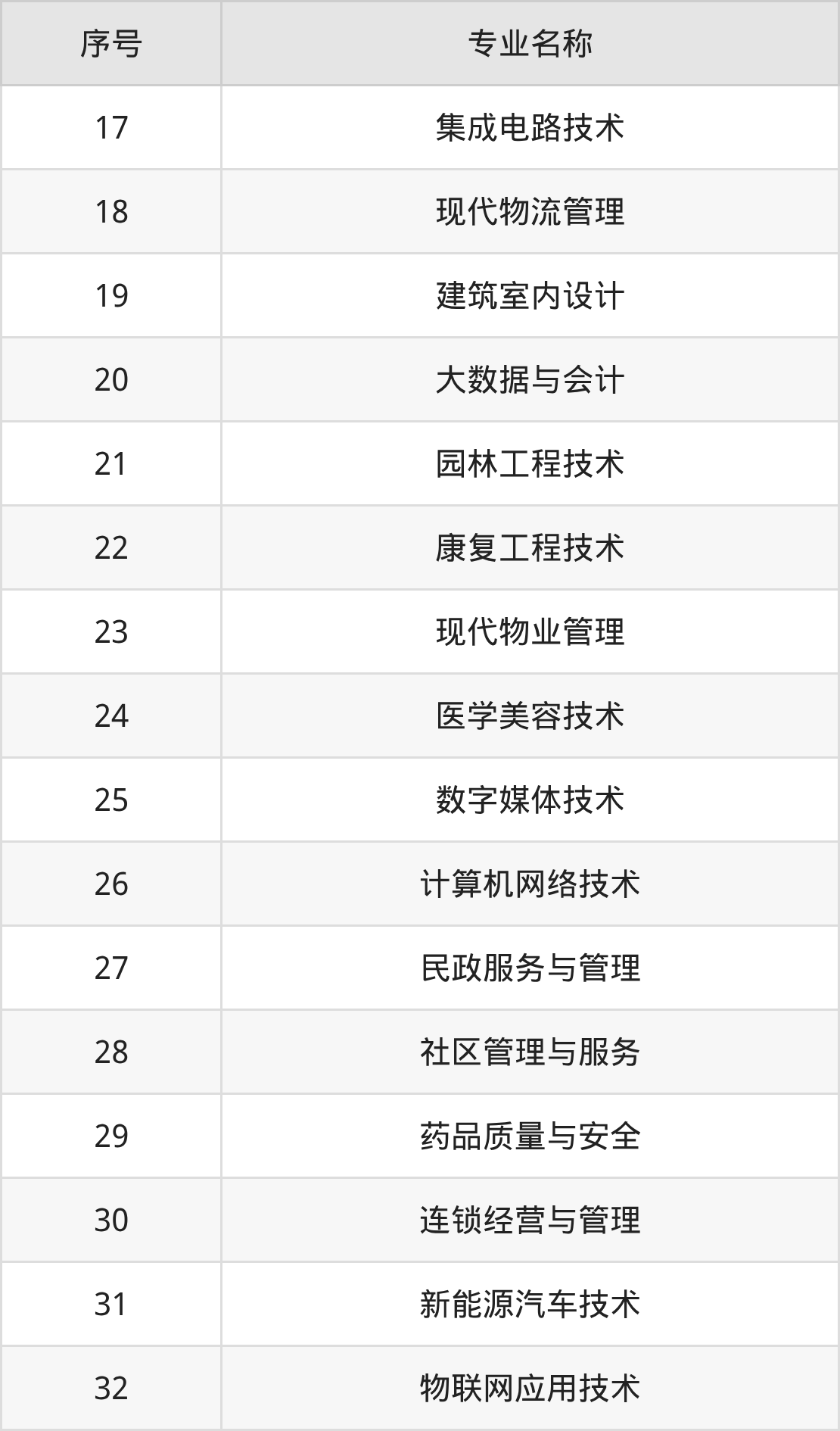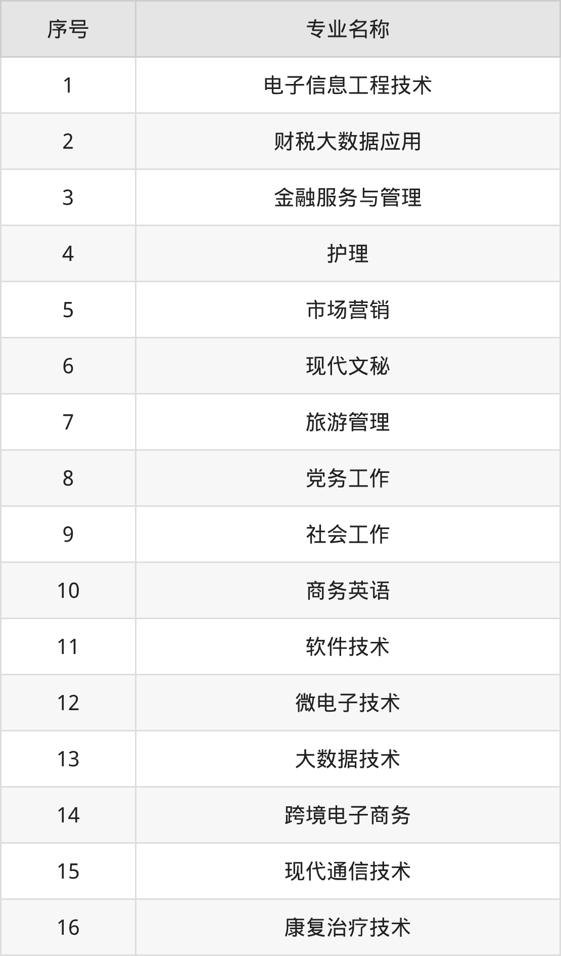专科招生专业: